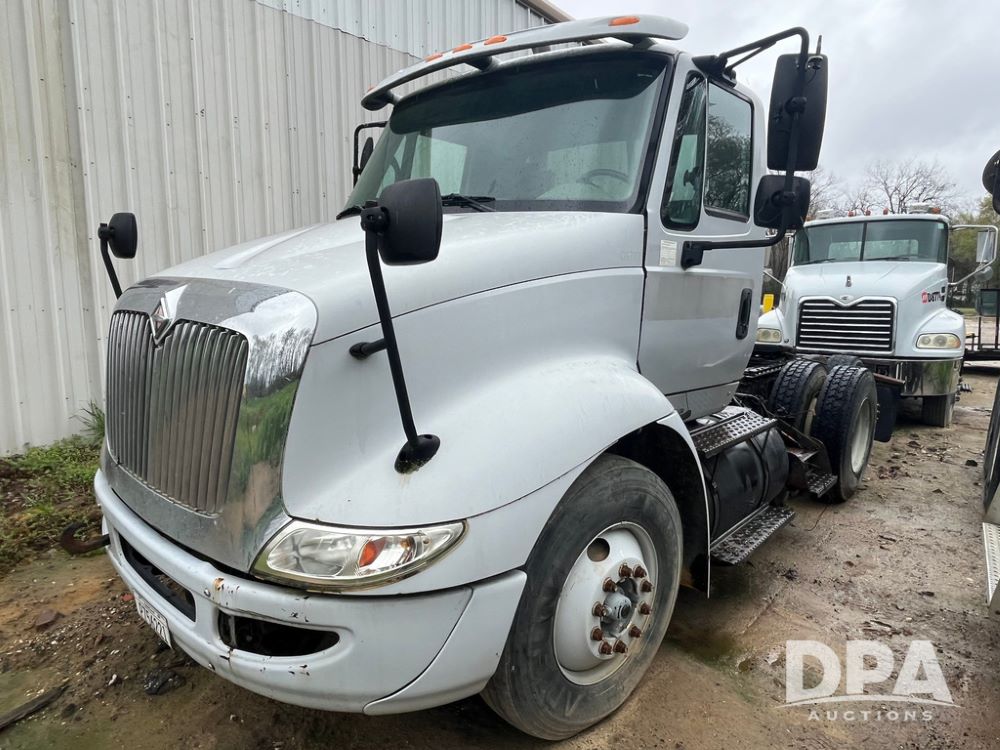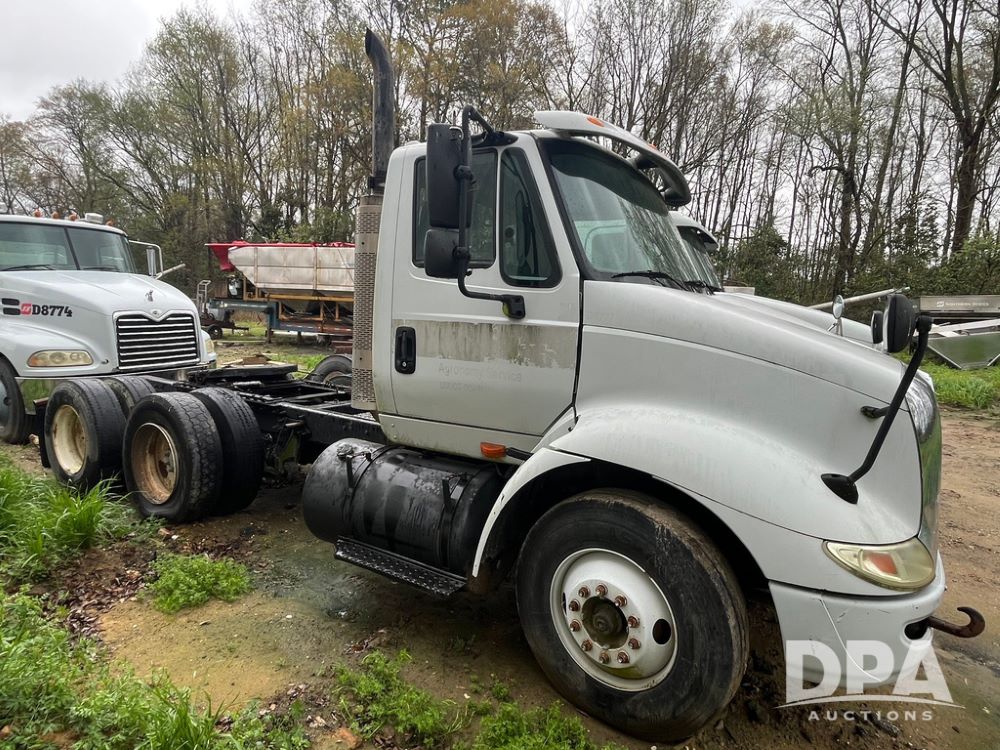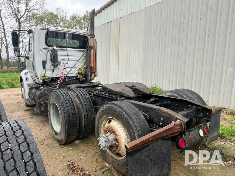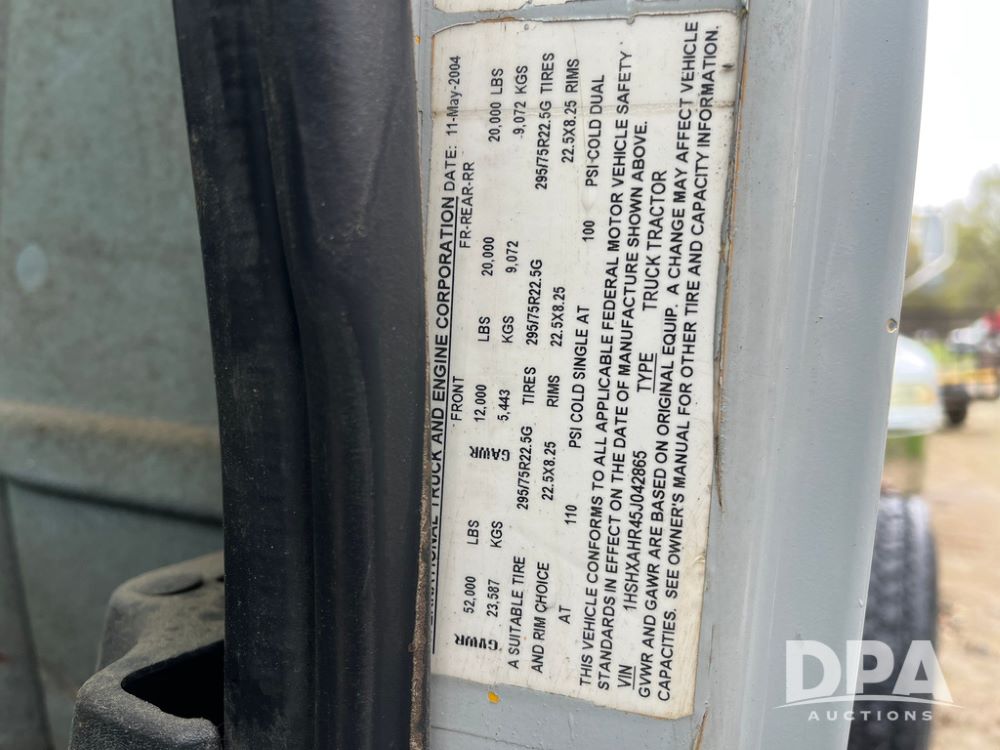 2005 International Day Cab Truck (JN4207 , Unit D8777), diesel engine, manual transmission, heat, Am/Fm radio, tandem axle, air ride suspension, 5th wheel plate, dual fuel tanks, single exhaust, 11R22.5 tires, GVWR 52,000 pounds.