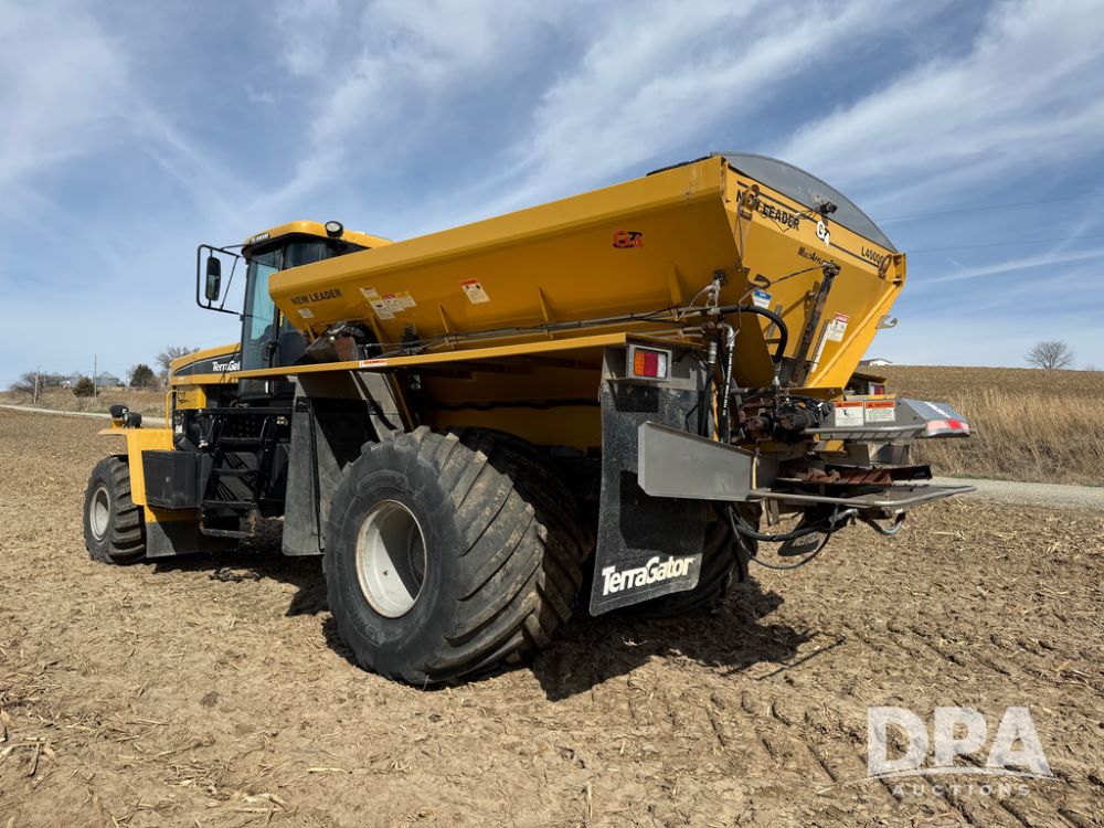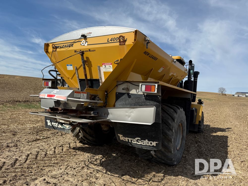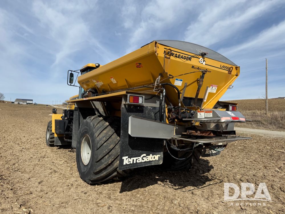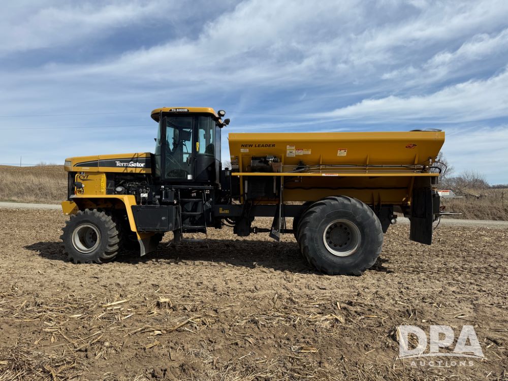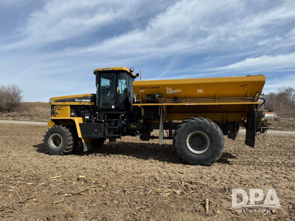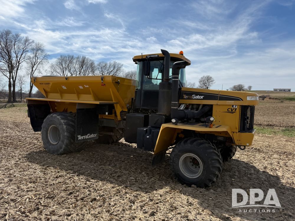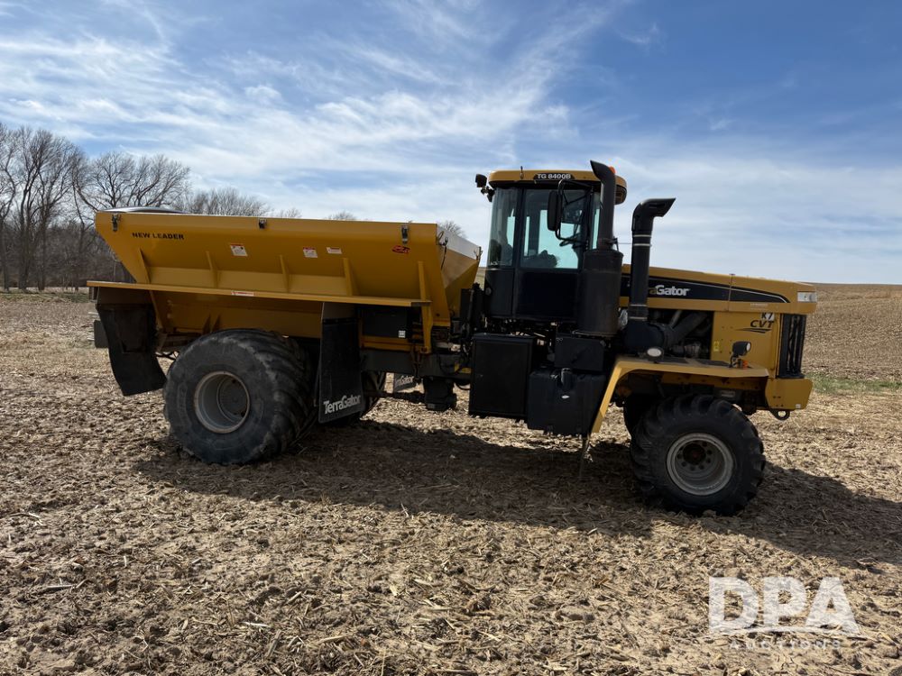 2016 Terra Gator TG8400B Dry Floater (NP6582), diesel engine, CVT transmission, heat, air conditioning, Am/Fm radio, buddy seat, air ride cab, New Leader L4000 G4 stainless steel dry spreader box (Model 579500D1 - 14', S/N 484206), MultApplier Ready, dual spinners, hydraulic, slatted chain, Primex 48x31.00-20 front tires, Michelin MegaXBib 2 1000/50R26 rear tires, Voyager backup camera, Raven GPS, Raven Viper 4 monitor, shows 5,804 hours.