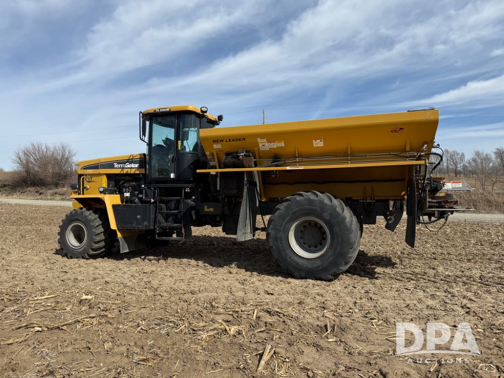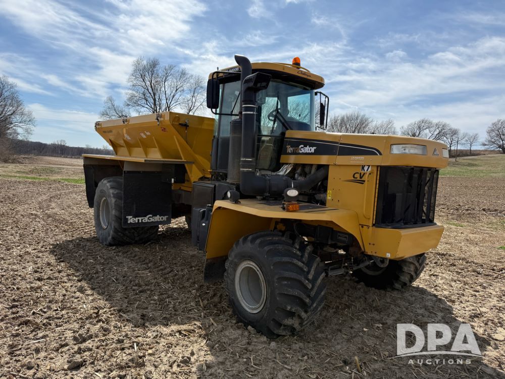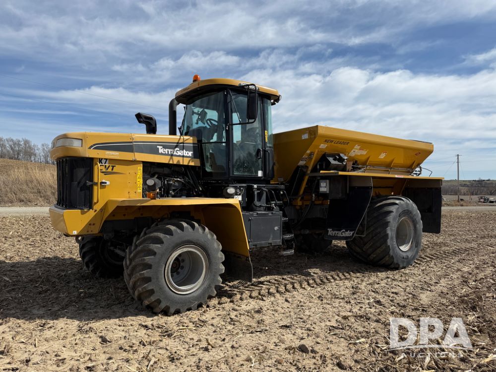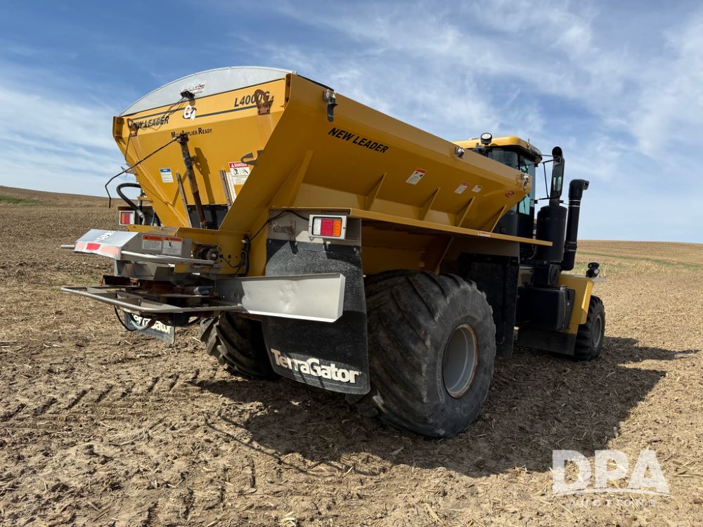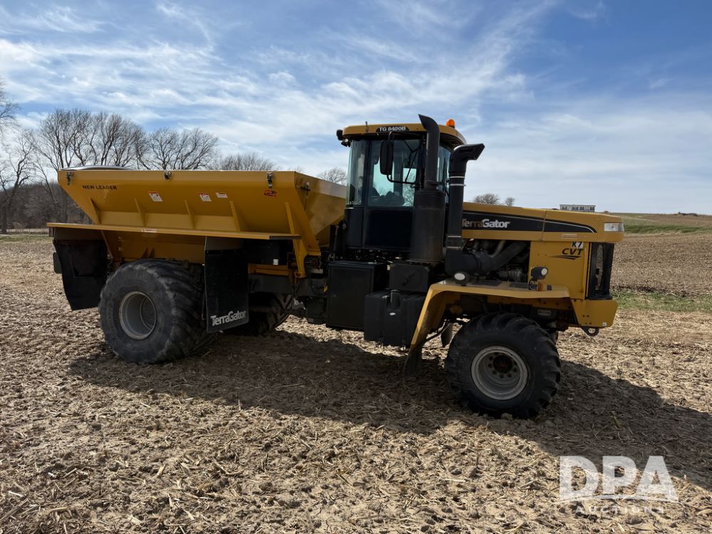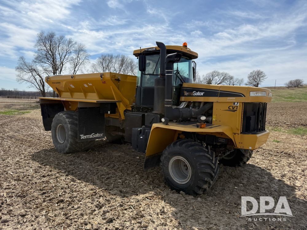 2016 Terra Gator TG8400B Dry Floater (NP6582), diesel engine, CVT transmission, heat, air conditioning, Am/Fm radio, buddy seat, air ride cab, New Leader L4000 G4 stainless steel dry spreader box (Model 579500D1 - 14', S/N 484206), MultApplier Ready, dual spinners, hydraulic, slatted chain, Primex 48x31.00-20 front tires, Michelin MegaXBib 2 1000/50R26 rear tires, Voyager backup camera, Raven GPS, Raven Viper 4 monitor, shows 5,804 hours.
