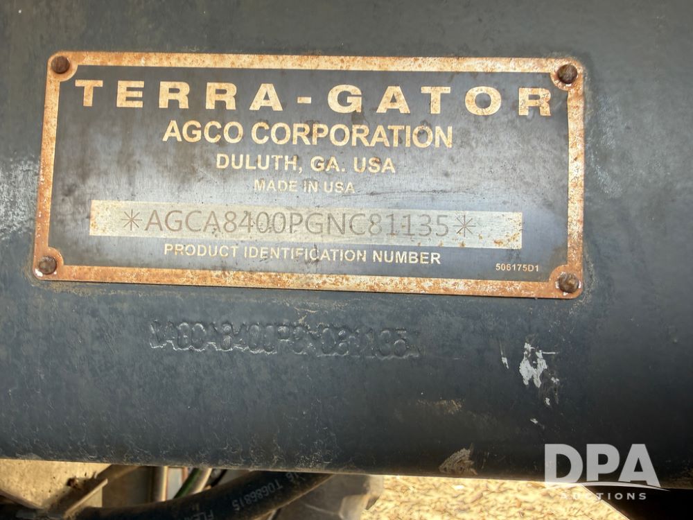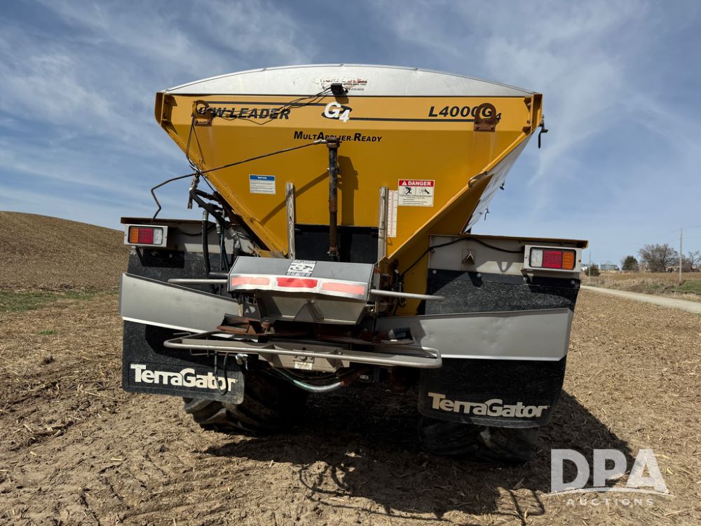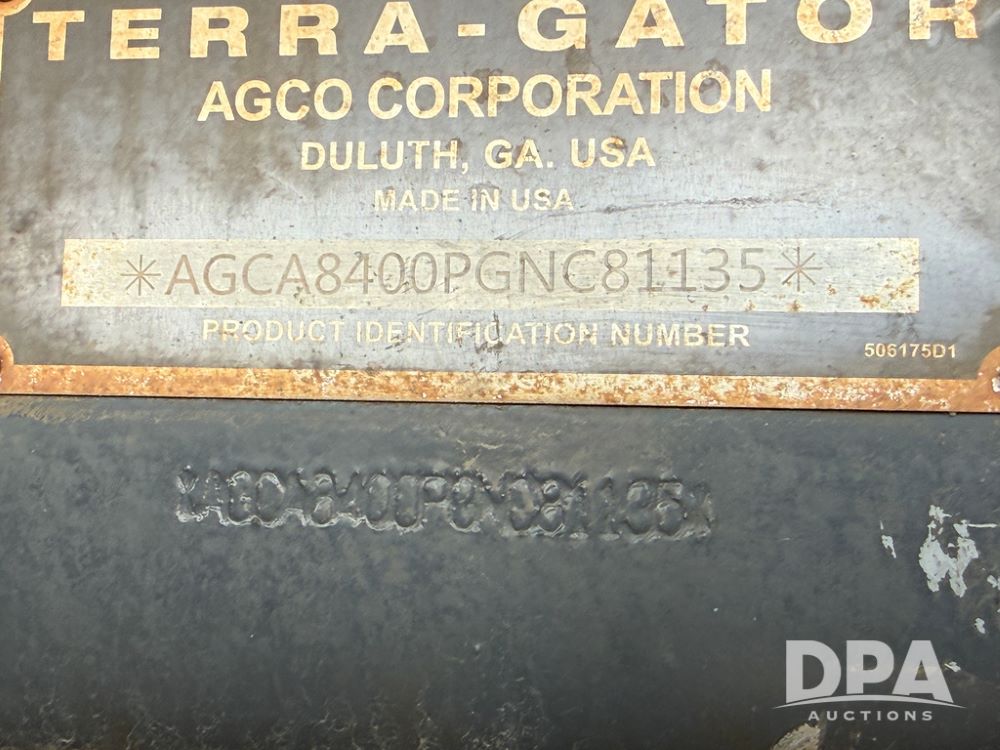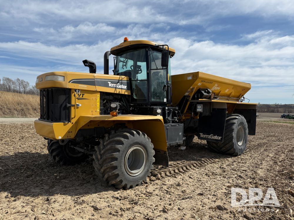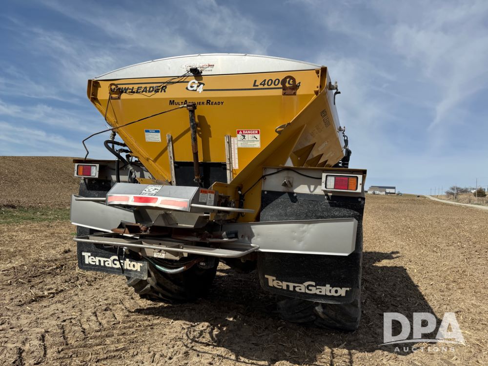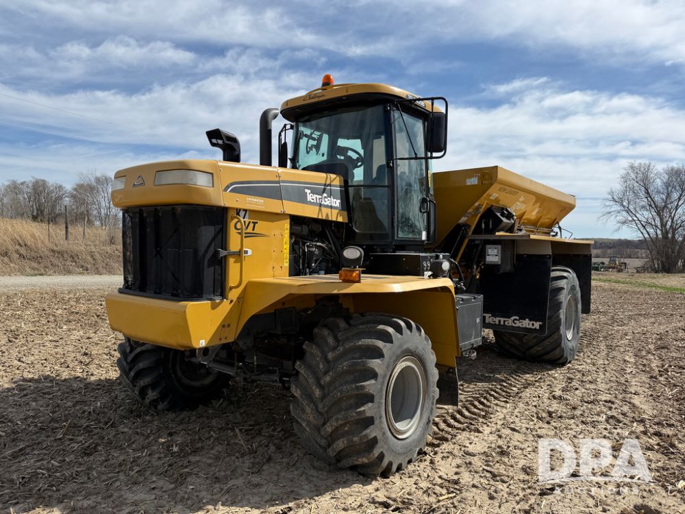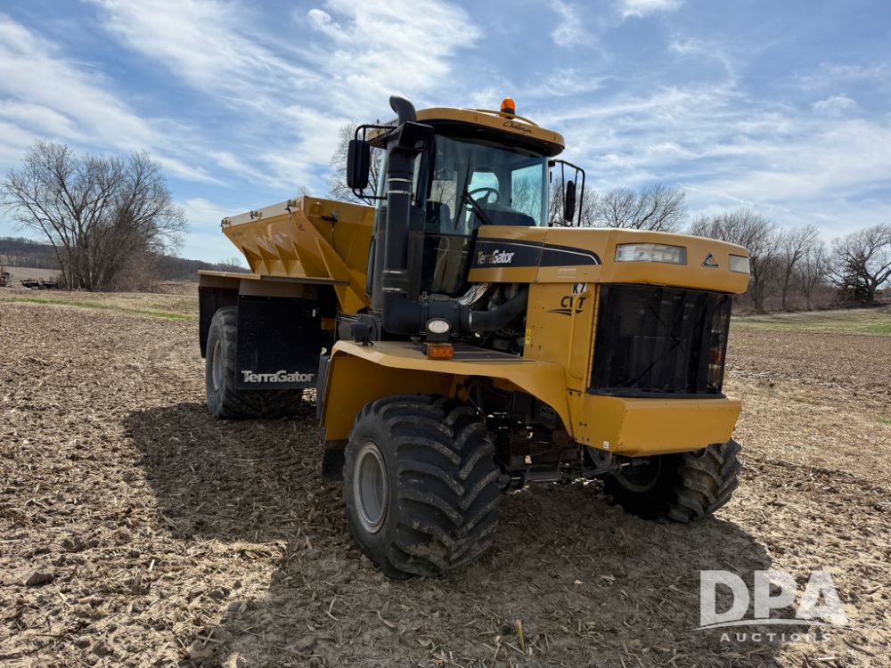 2016 Terra Gator TG8400B Dry Floater (NP6582), diesel engine, CVT transmission, heat, air conditioning, Am/Fm radio, buddy seat, air ride cab, New Leader L4000 G4 stainless steel dry spreader box (Model 579500D1 - 14', S/N 484206), MultApplier Ready, dual spinners, hydraulic, slatted chain, Primex 48x31.00-20 front tires, Michelin MegaXBib 2 1000/50R26 rear tires, Voyager backup camera, Raven GPS, Raven Viper 4 monitor, shows 5,804 hours.