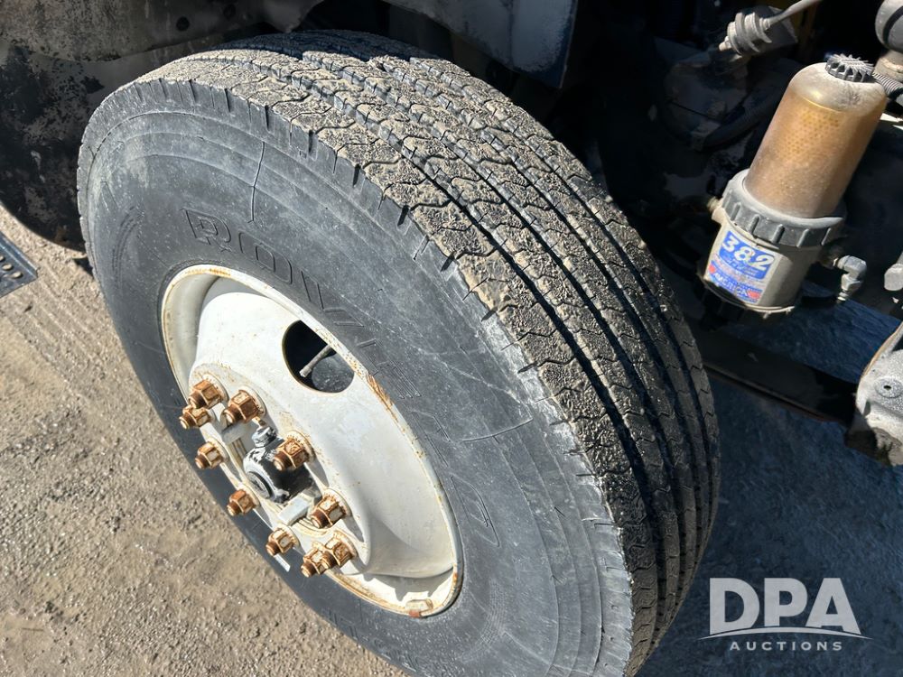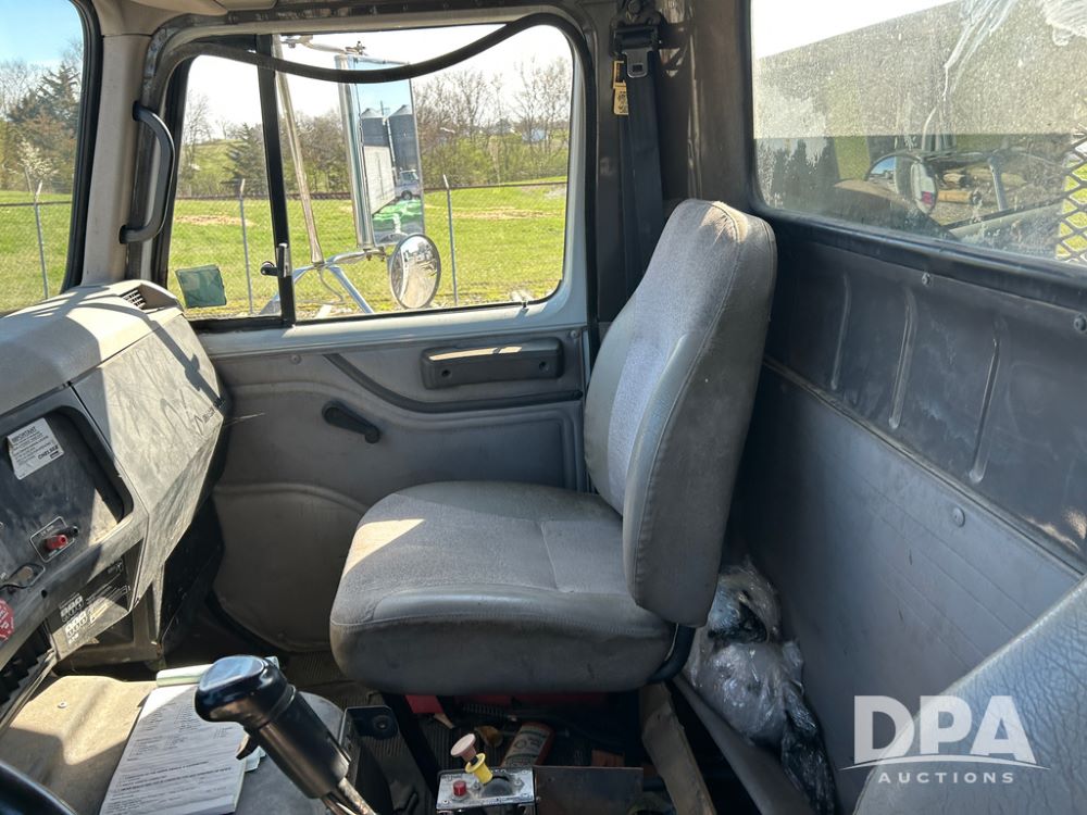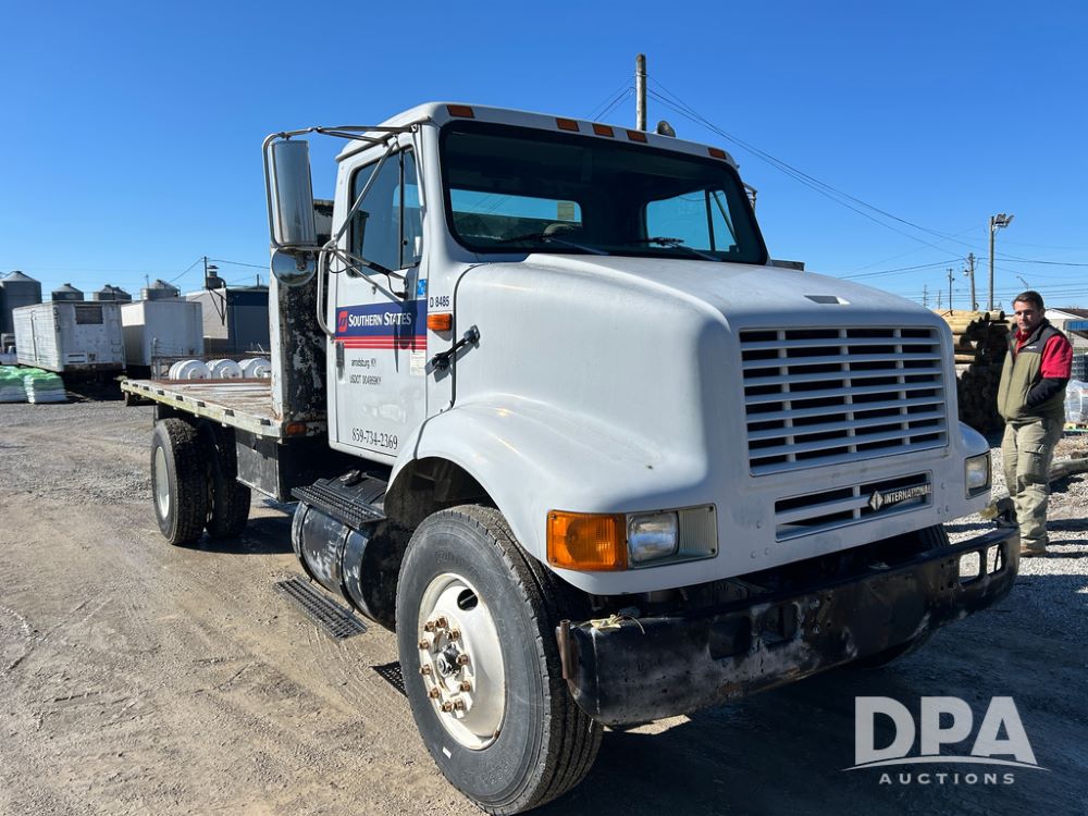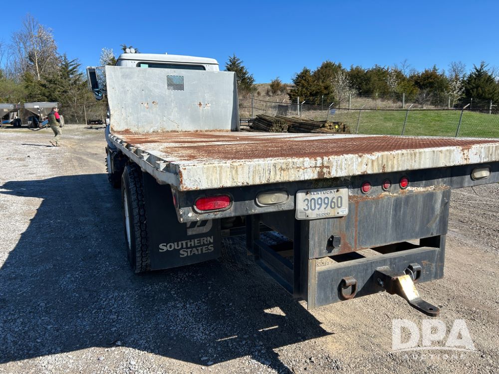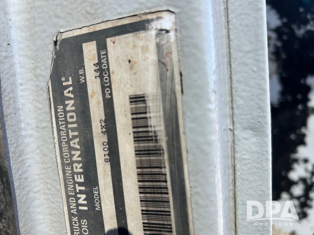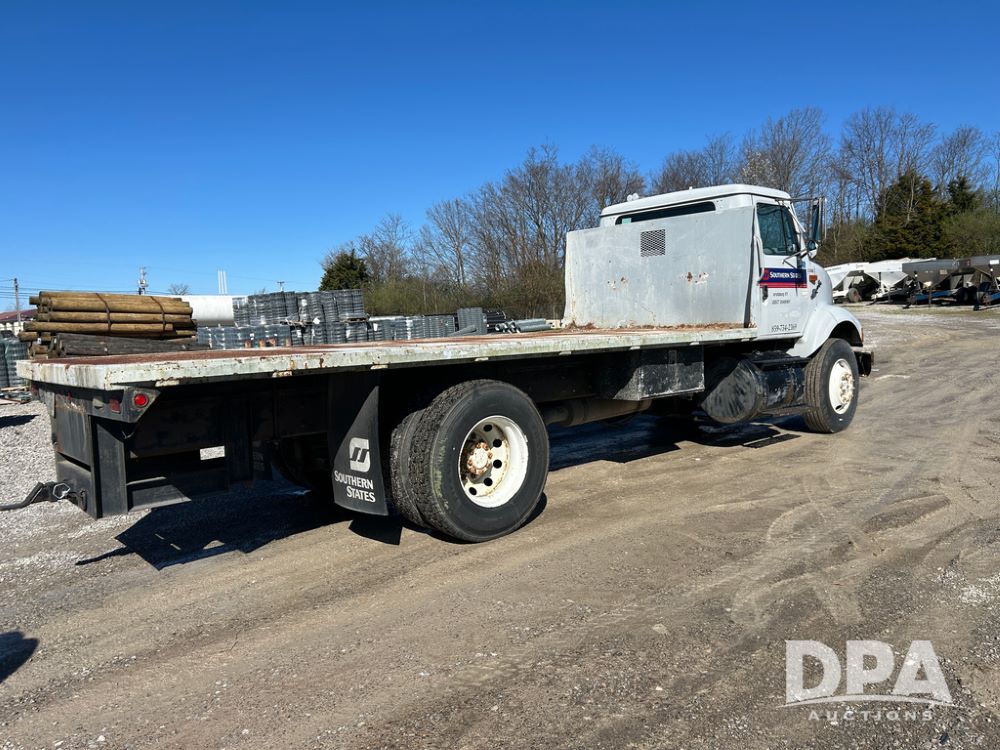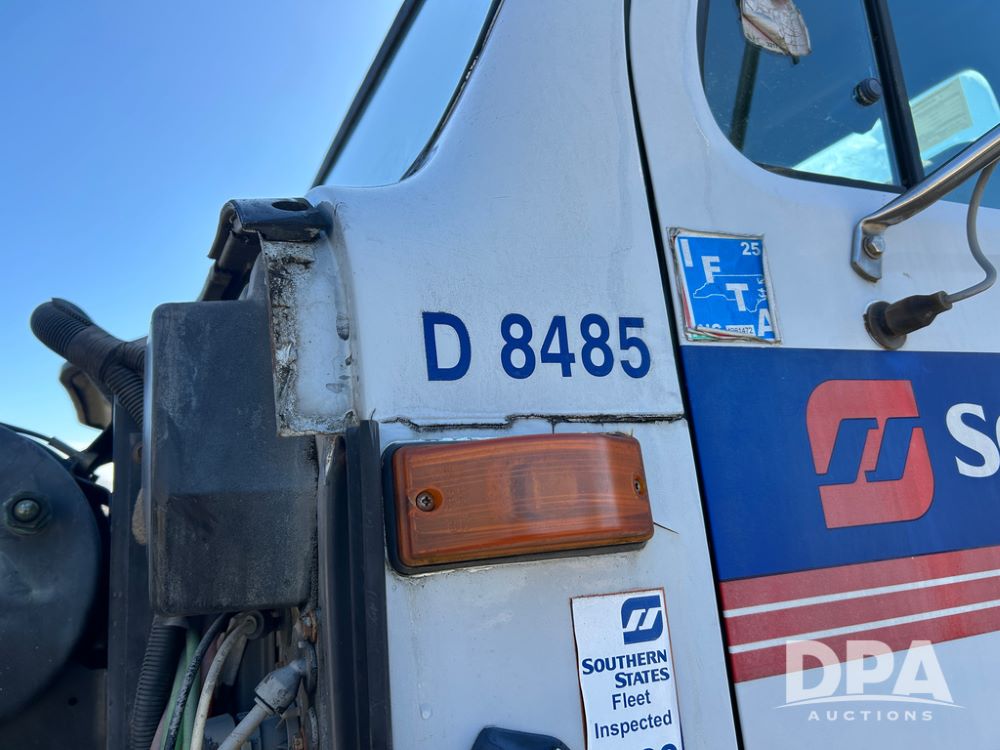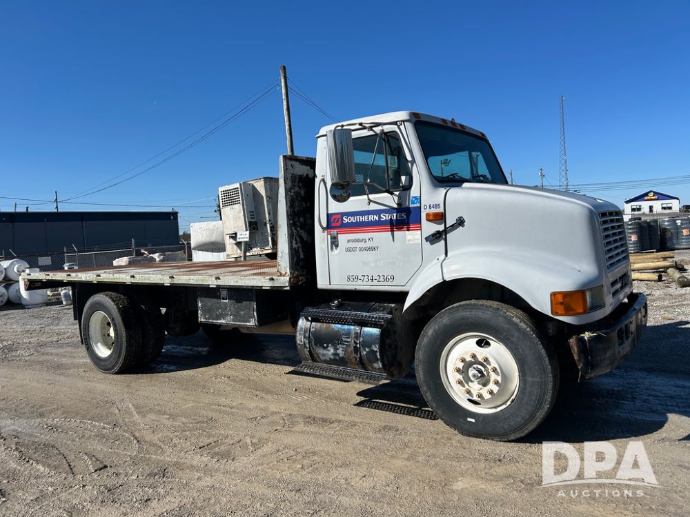 2003 International 8100 Flatbed Truck (CP1572, Unit D8485), Cat diesel engine, 10 speed transmission, heat, Am/Fm radio, single axle, spring suspension, rear flatbed, pump, 11R22.5 tires, shows 288,761 miles.