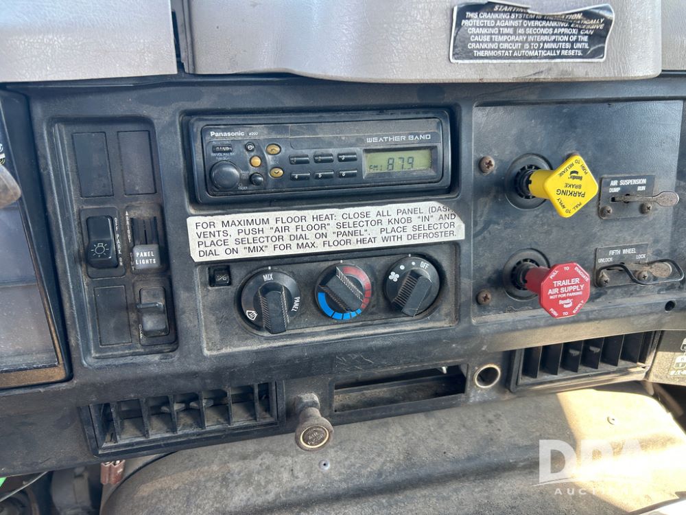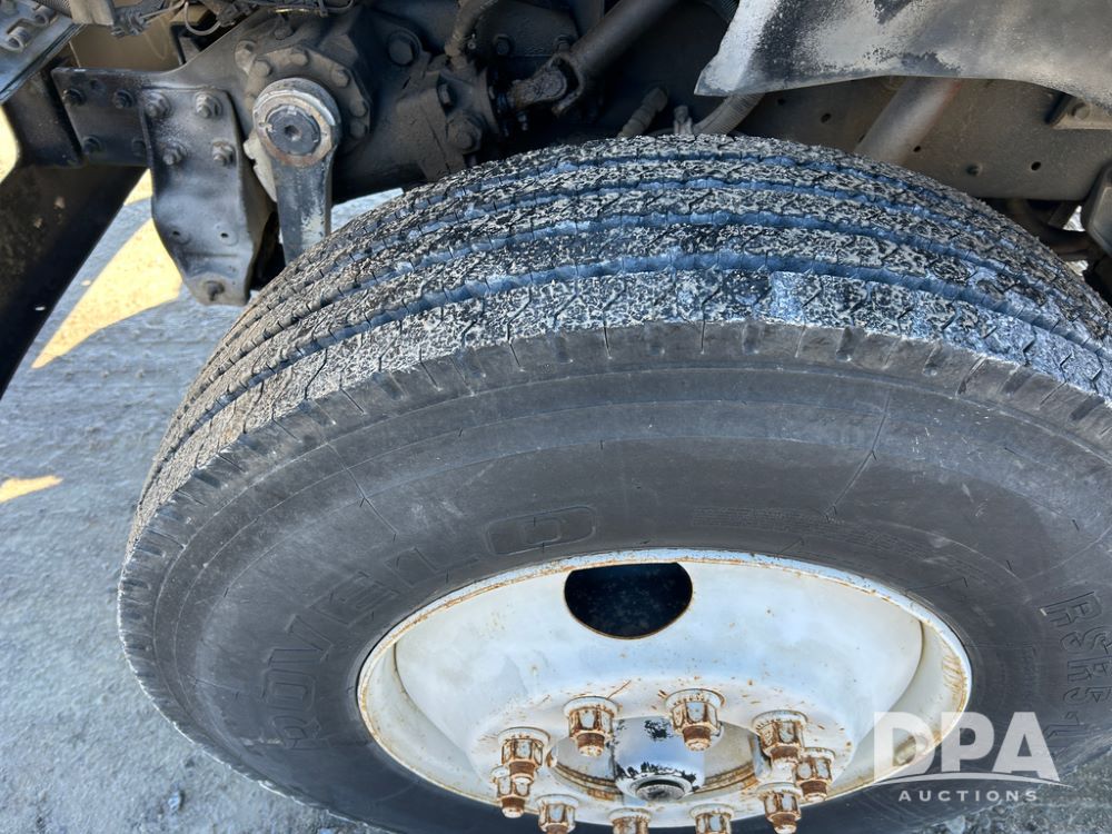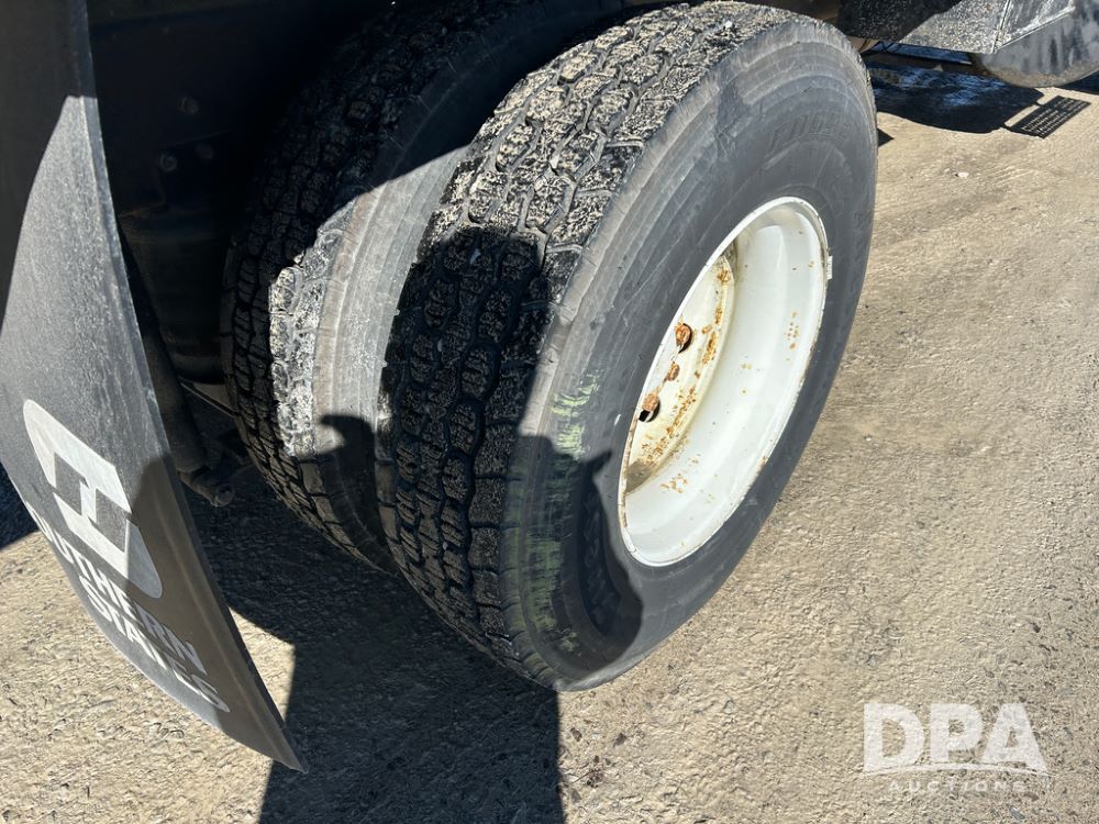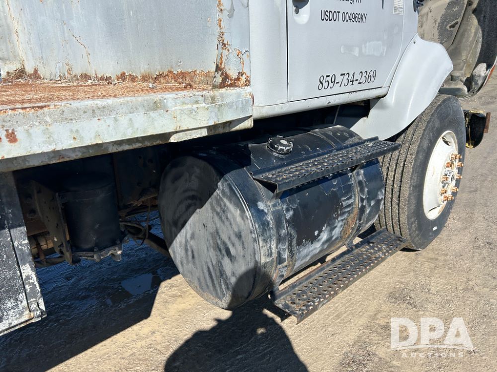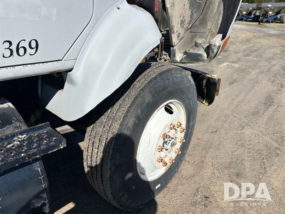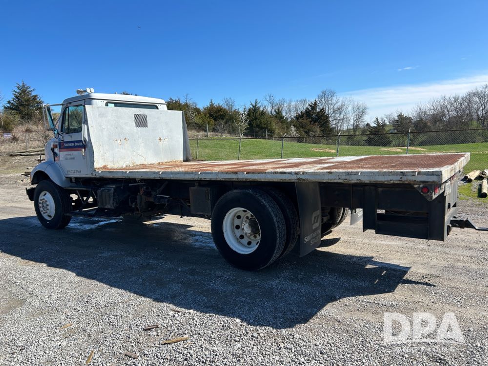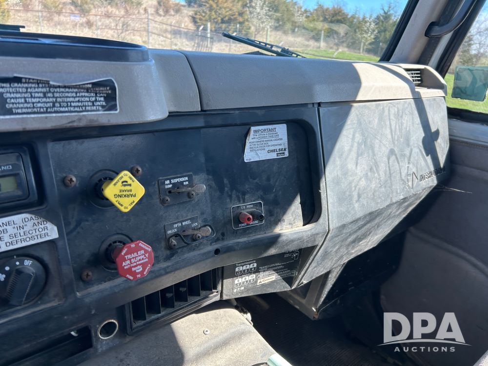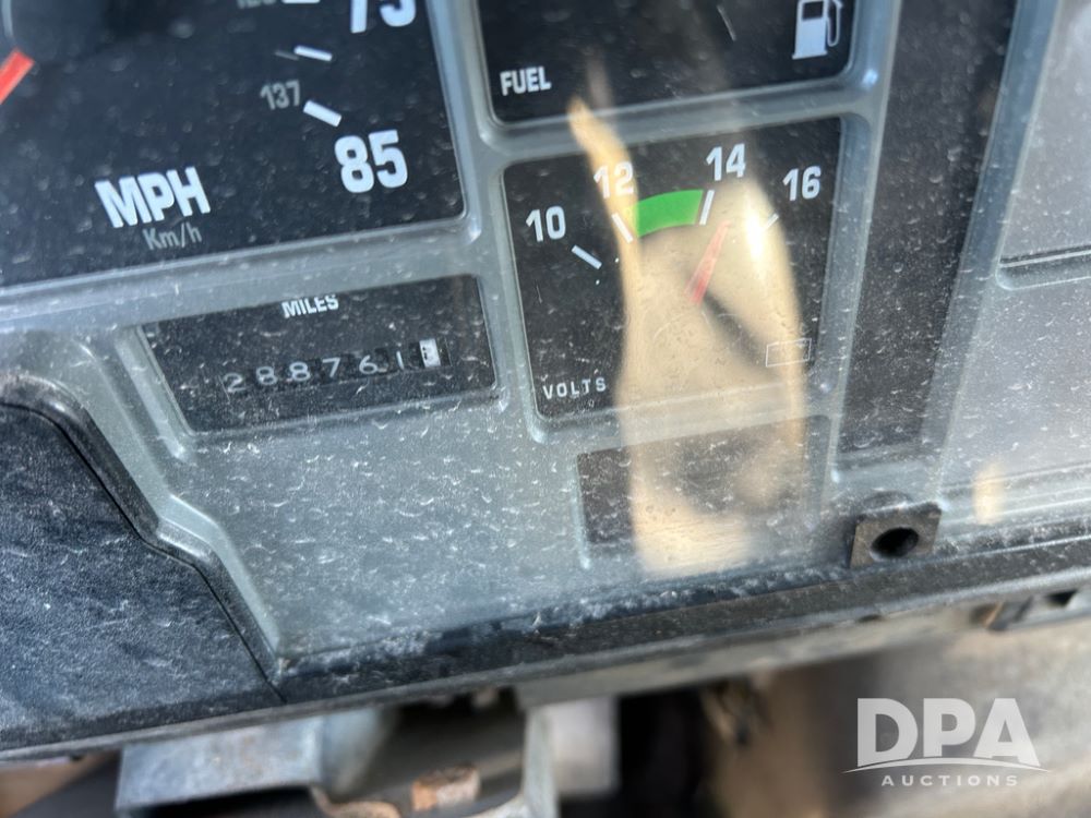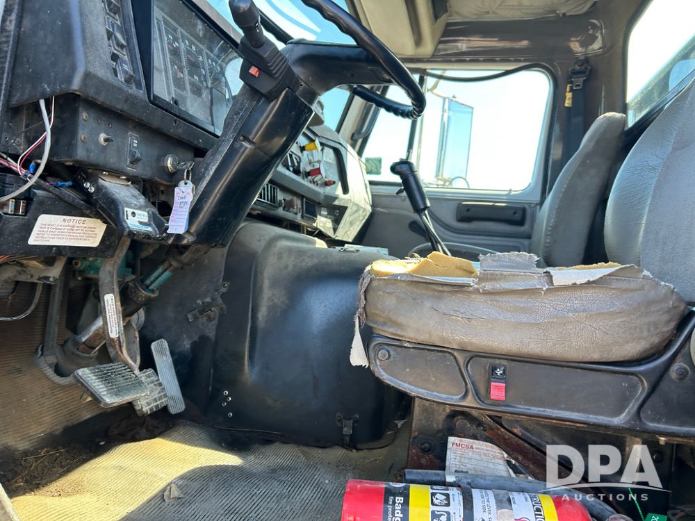 2003 International 8100 Flatbed Truck (CP1572, Unit D8485), Cat diesel engine, 10 speed transmission, heat, Am/Fm radio, single axle, spring suspension, rear flatbed, pump, 11R22.5 tires, shows 288,761 miles.