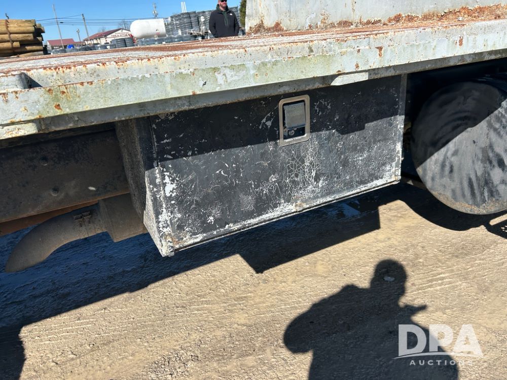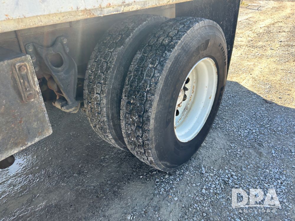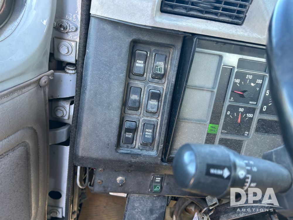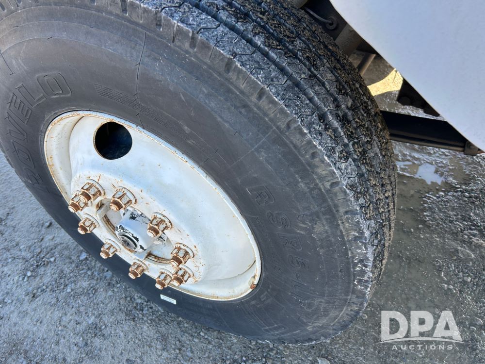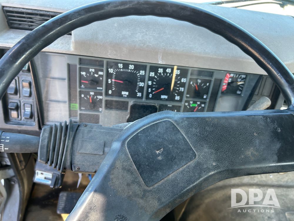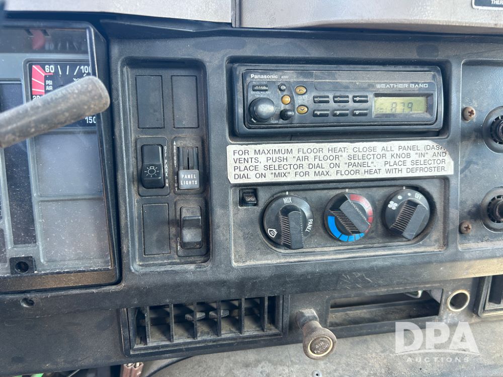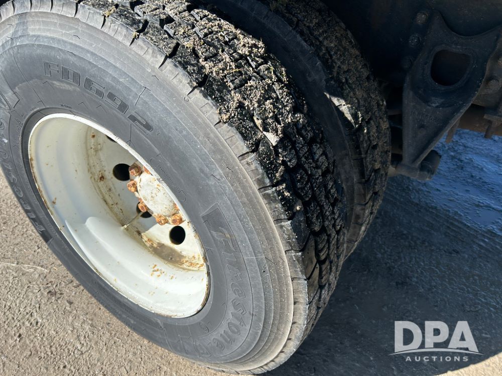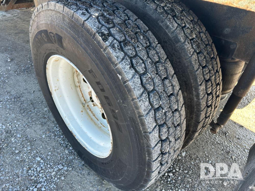 2003 International 8100 Flatbed Truck (CP1572, Unit D8485), Cat diesel engine, 10 speed transmission, heat, Am/Fm radio, single axle, spring suspension, rear flatbed, pump, 11R22.5 tires, shows 288,761 miles.