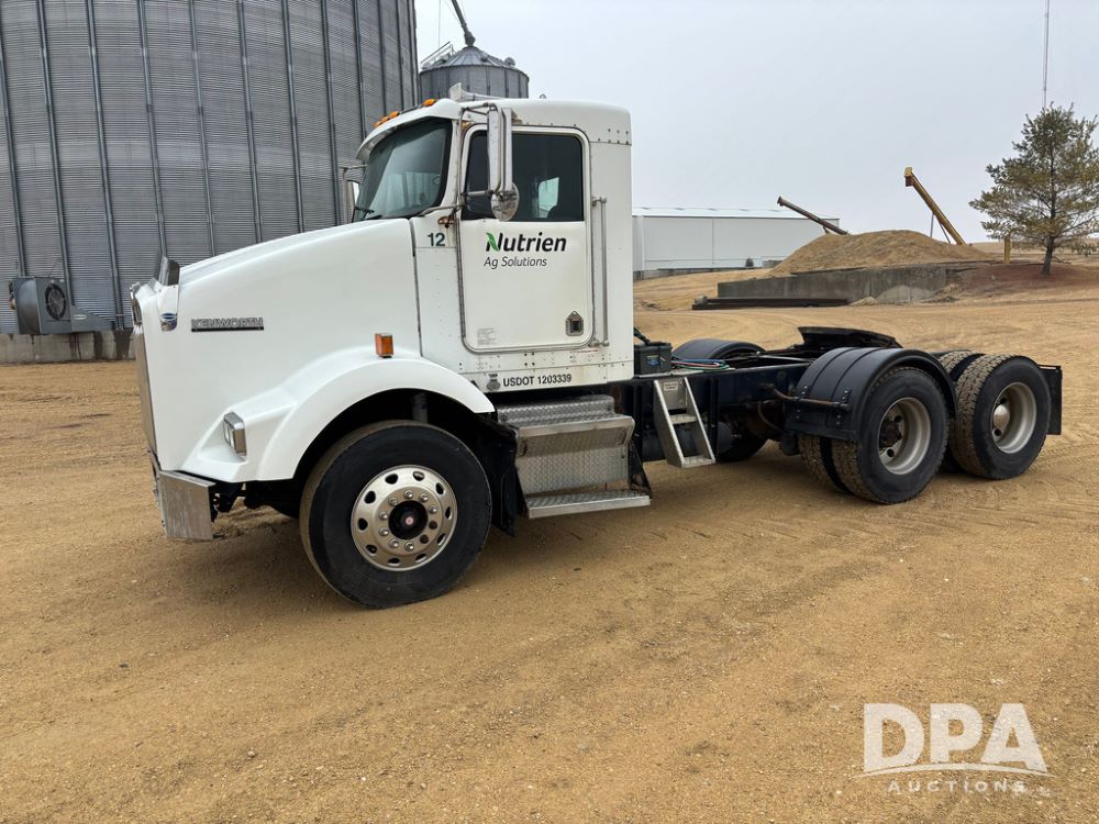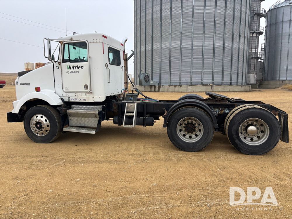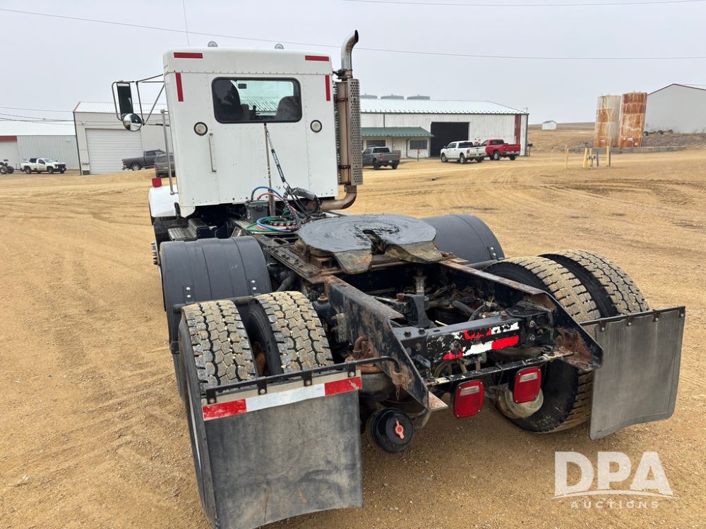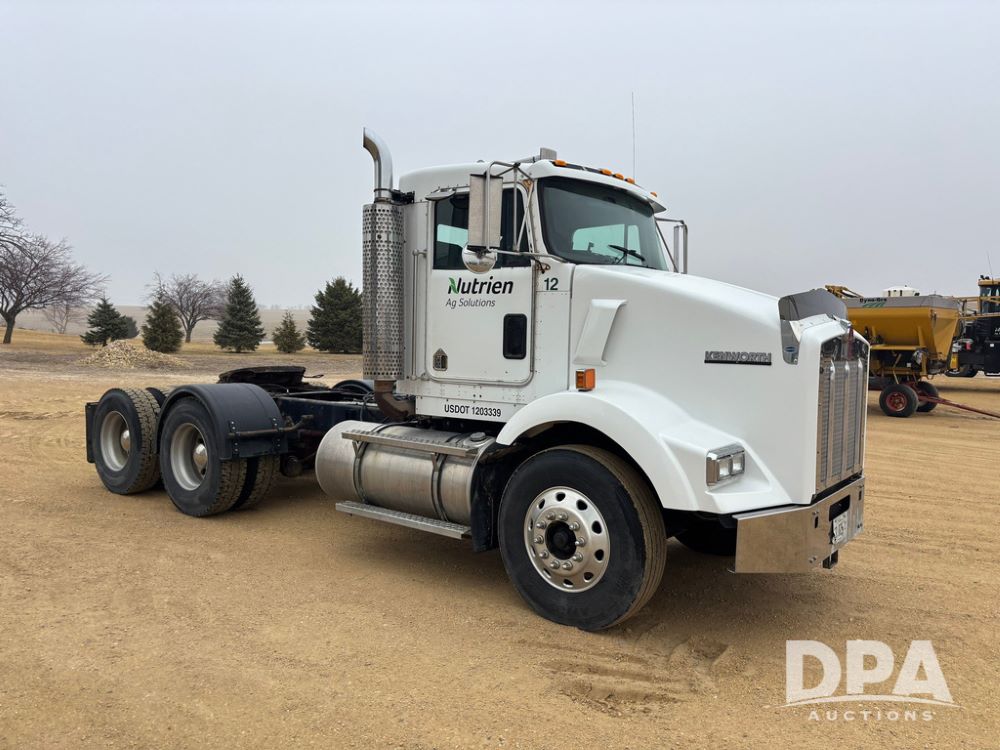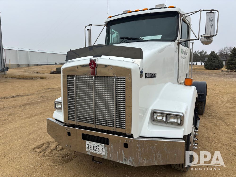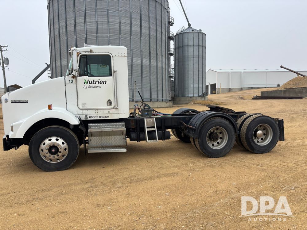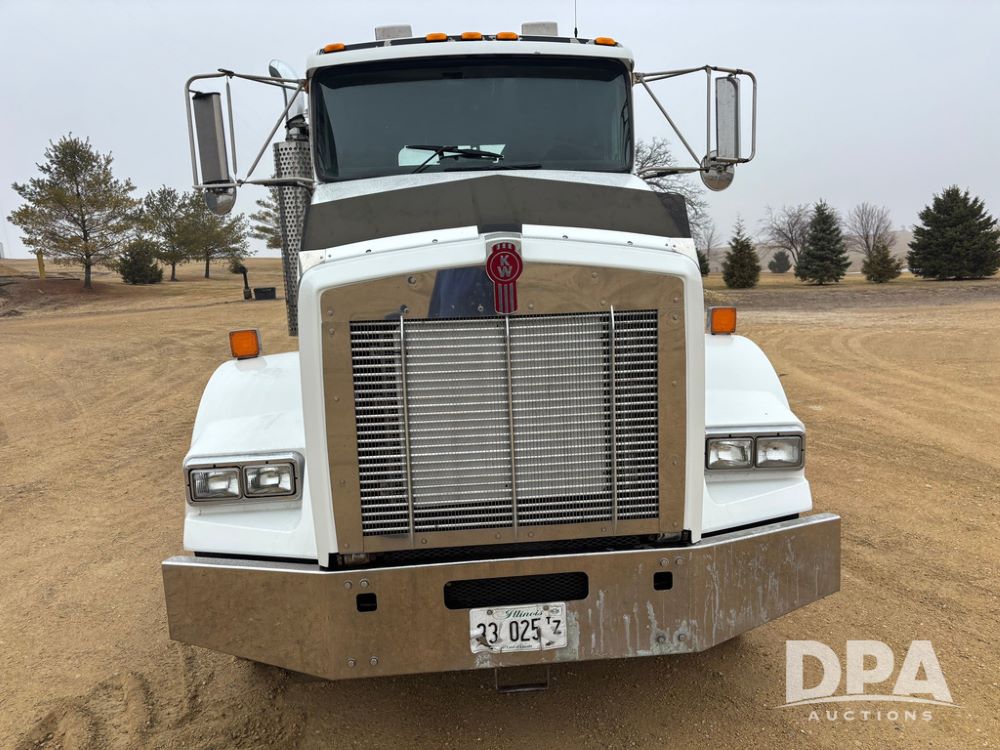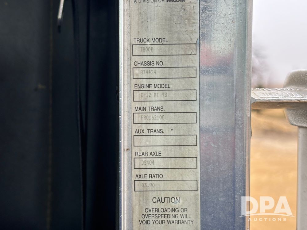 2001 Kenworth T800B Day Cab Truck (GP12887, Unit 15059), Cat C-12 diesel engine, 10 speed manual transmission, heat, air conditioning, Am/Fm radio, air ride cab, tandem axle, air ride suspension, 5th wheel plate, single fuel tank, single exhaust, 11R22.5 tires, engine heater, Rear Axle DS404, AXLE RATIO 03.90, shows 701,032 miles.