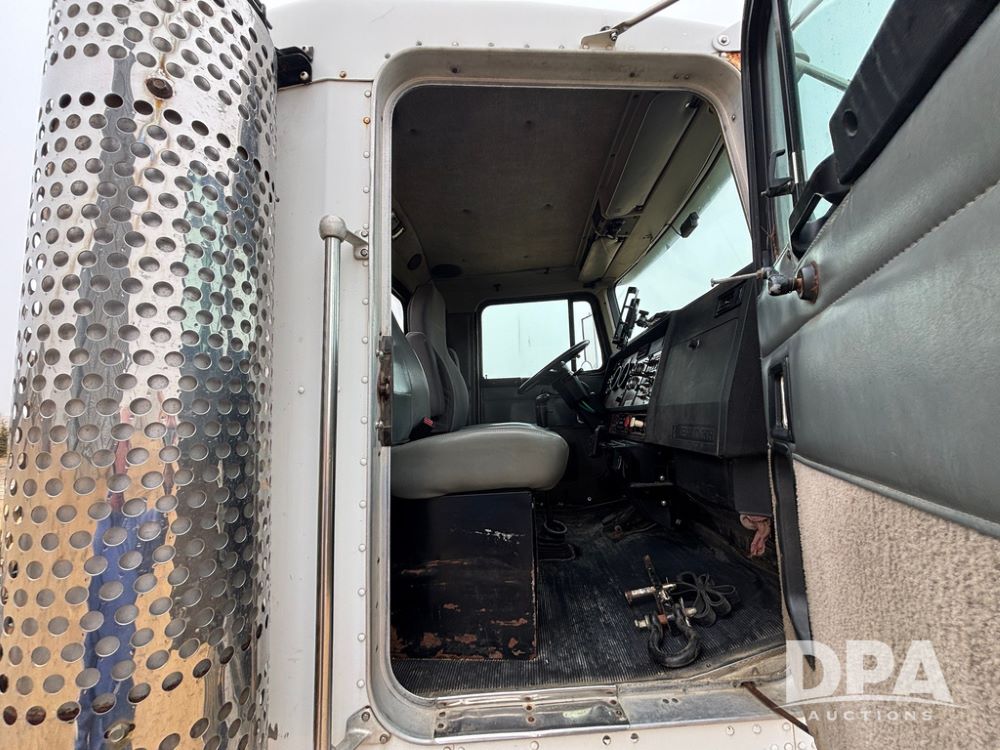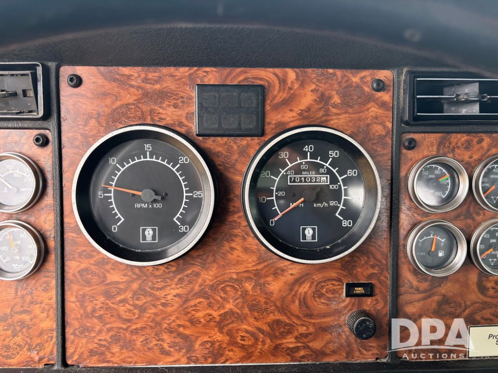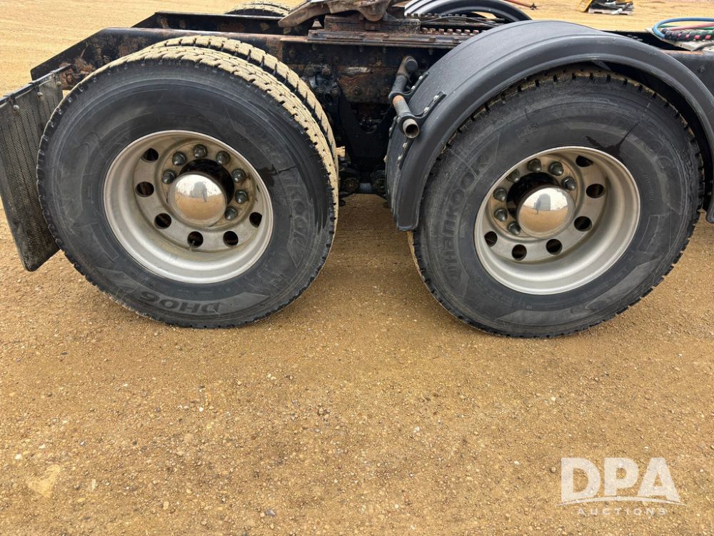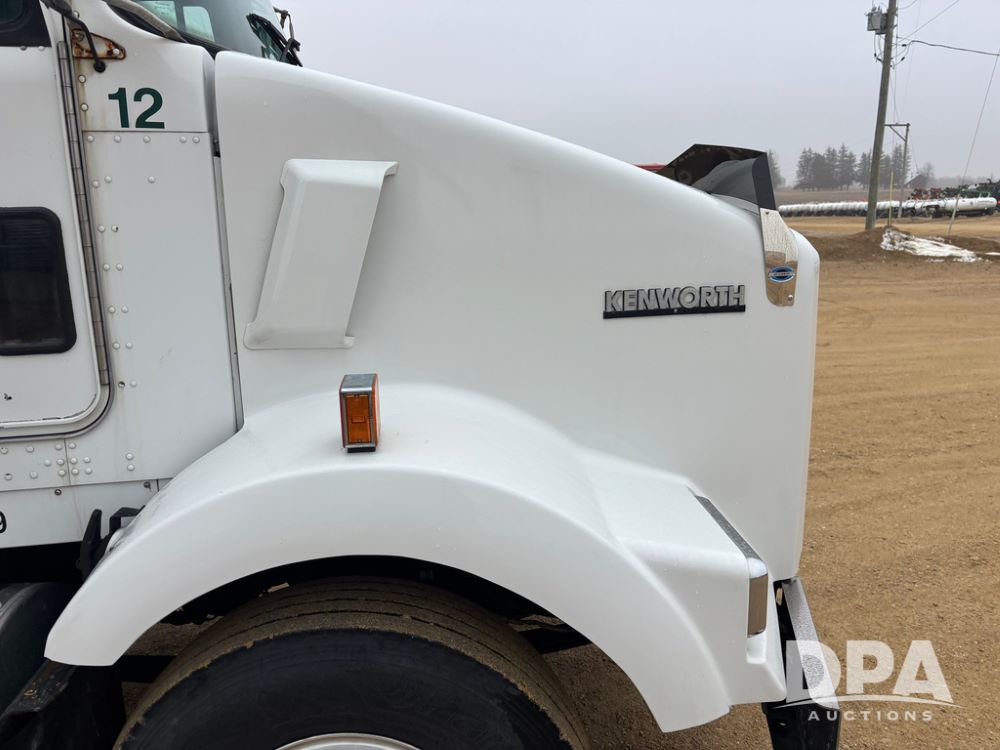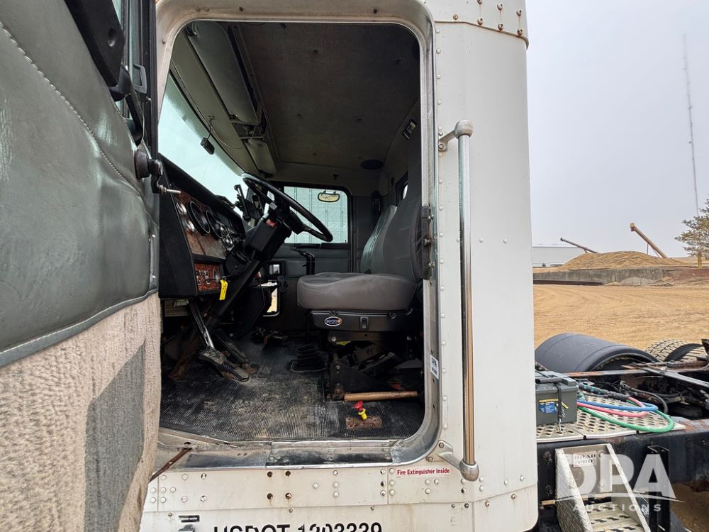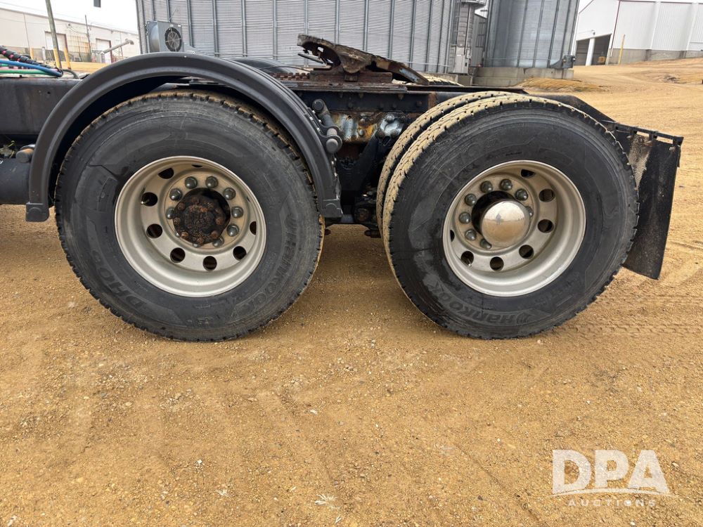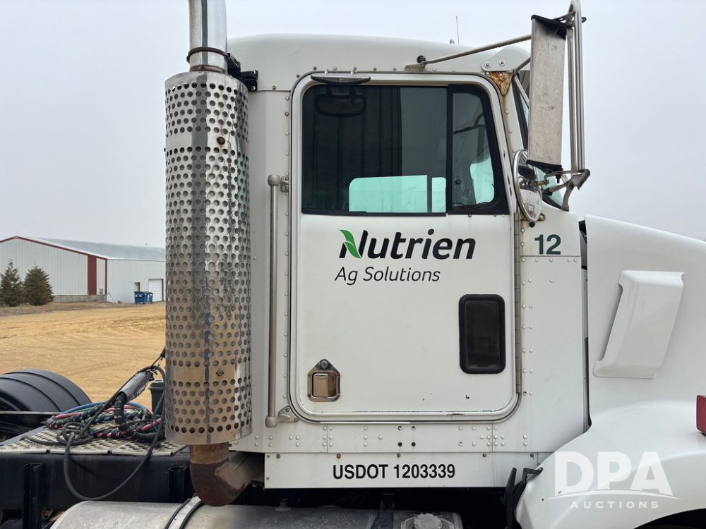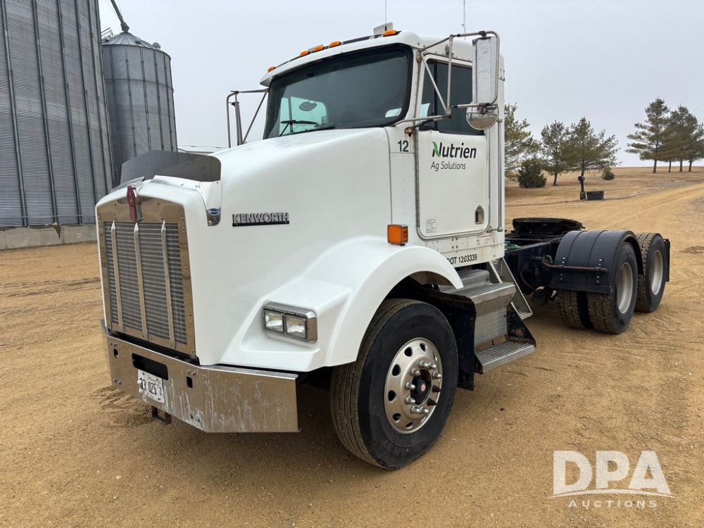 2001 Kenworth T800B Day Cab Truck (GP12887, Unit 15059), Cat C-12 diesel engine, 10 speed manual transmission, heat, air conditioning, Am/Fm radio, air ride cab, tandem axle, air ride suspension, 5th wheel plate, single fuel tank, single exhaust, 11R22.5 tires, engine heater, Rear Axle DS404, AXLE RATIO 03.90, shows 701,032 miles.