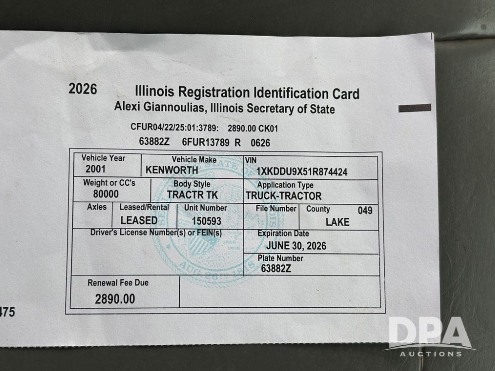 Notes: This title cannot be transferred to another party in the state of Illinois. PLEASE ALLOW AT LEAST 90 DAYS FOR TITLE TRANSFER.