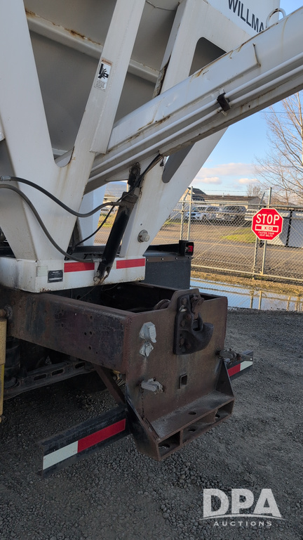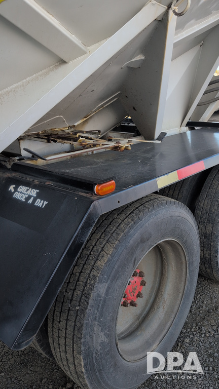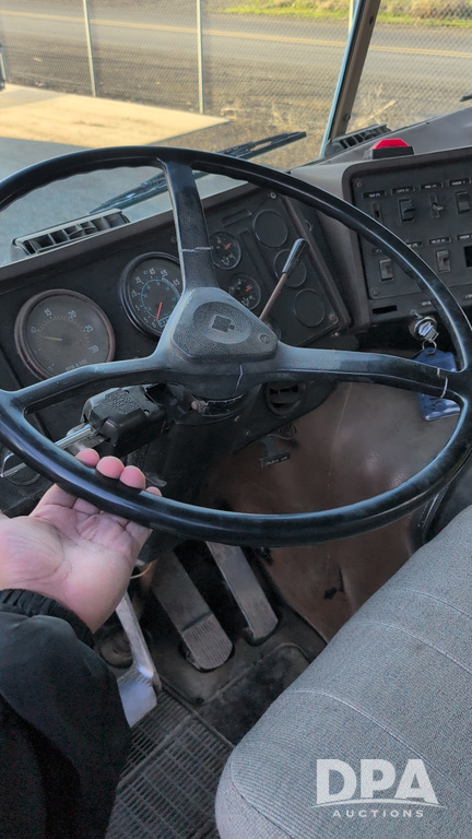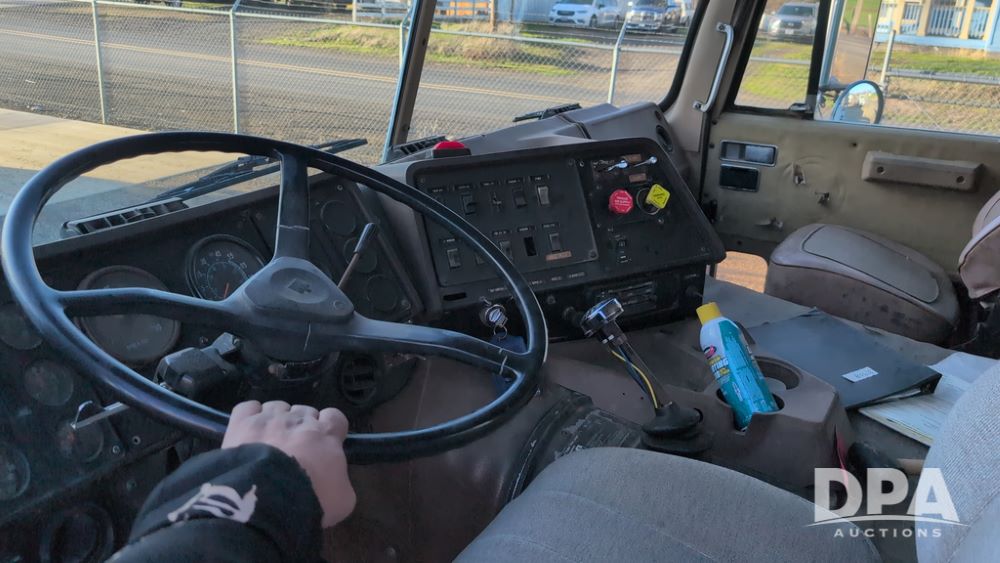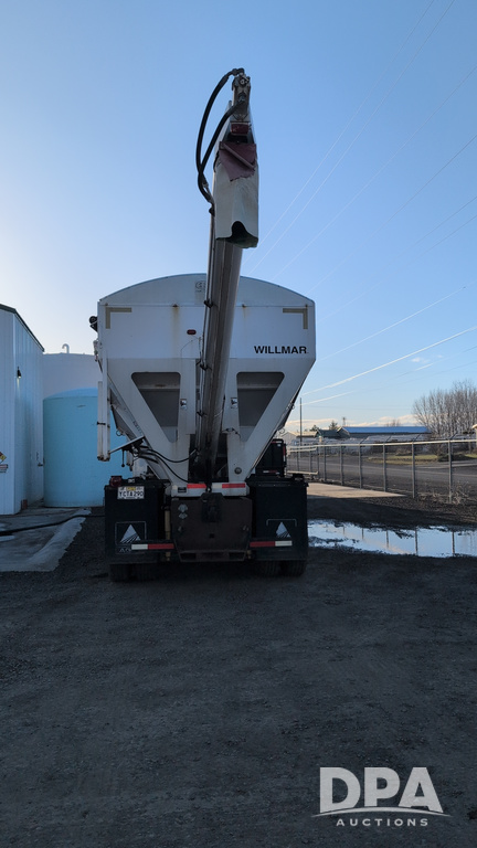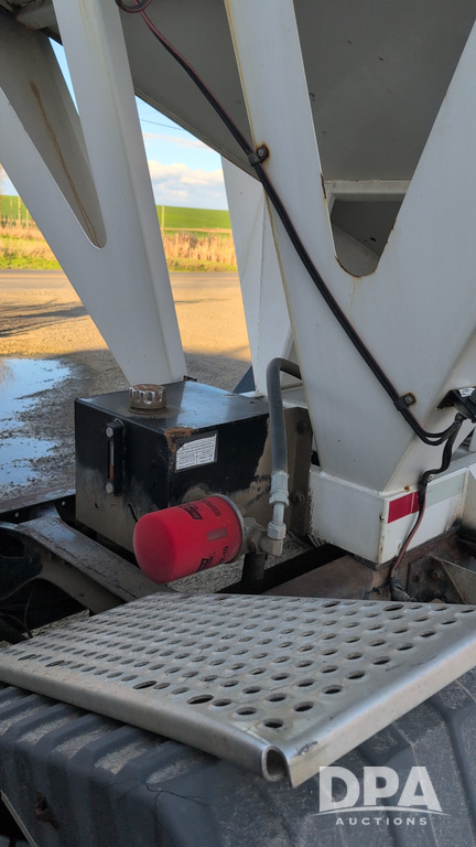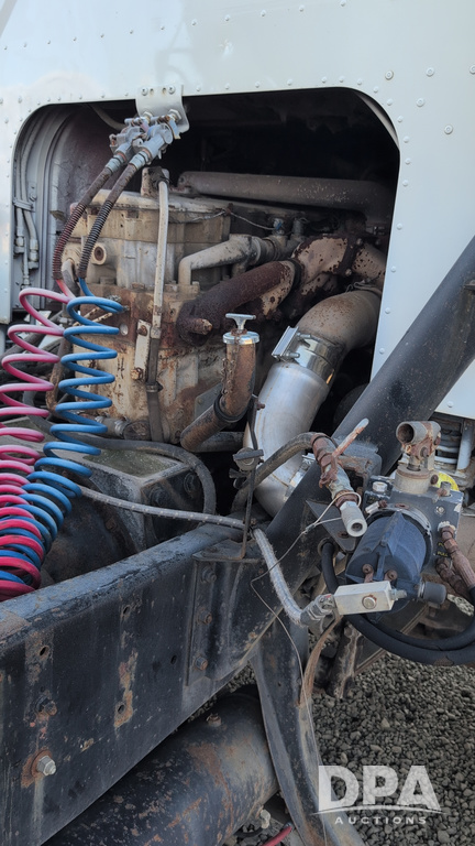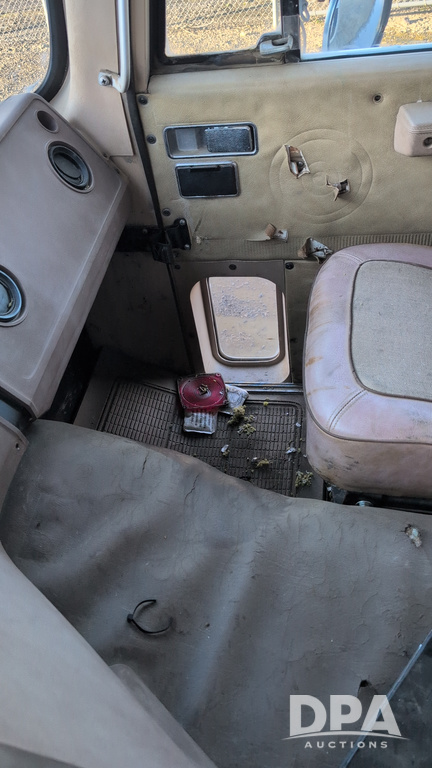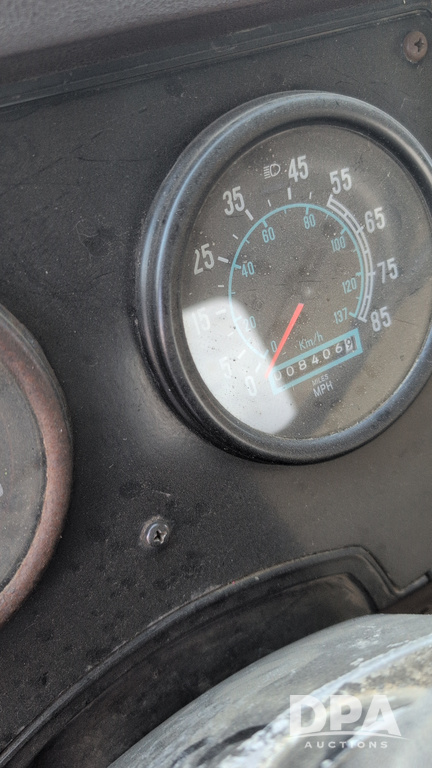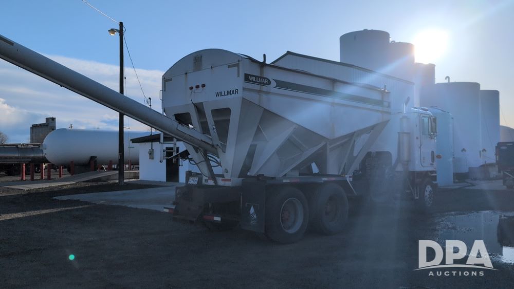 1983 International Cabover Dry Tender Truck (NP6589, Unit 31908), Model COF9670 truck, diesel engine, Eaton Fuller manual transmission, heat, Am/Fm radio, tandem axle, Willmar 1600 dry tender box, rear discharge auger, electric roll tarp, hydraulic, single fuel tank, single exhaust, 11R22.5 tires, shows 1,008,406 miles.