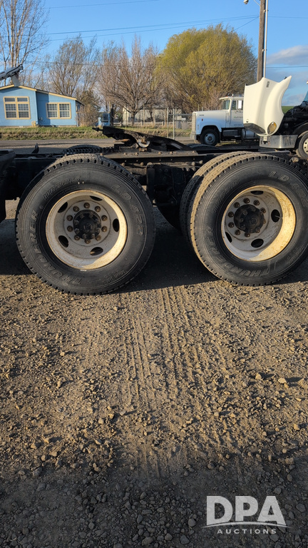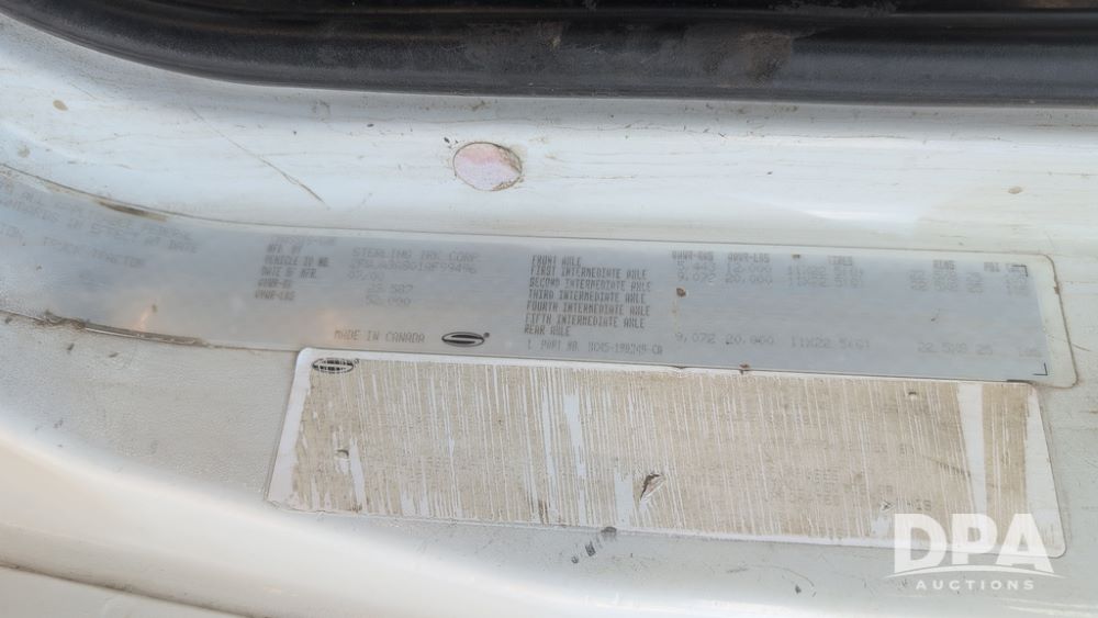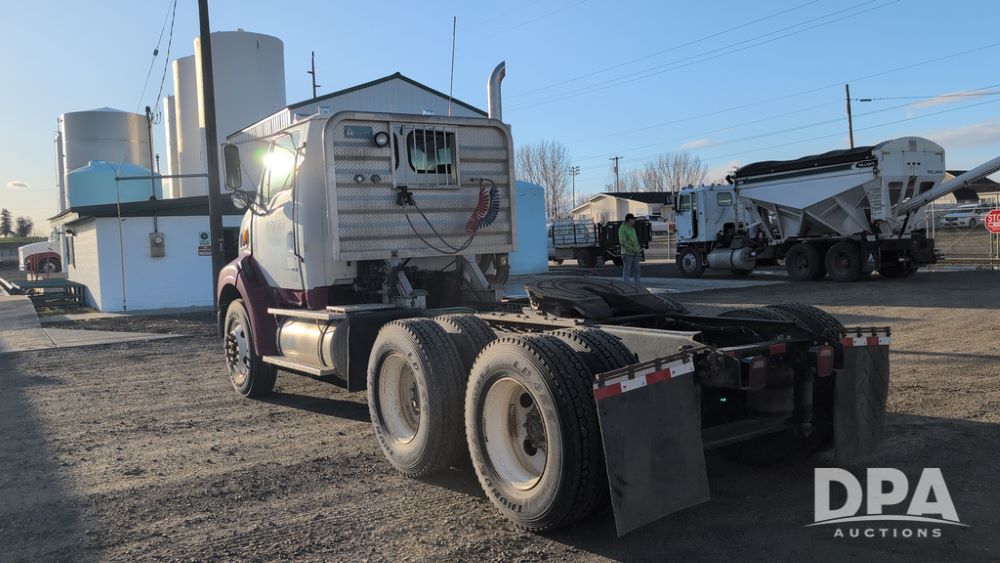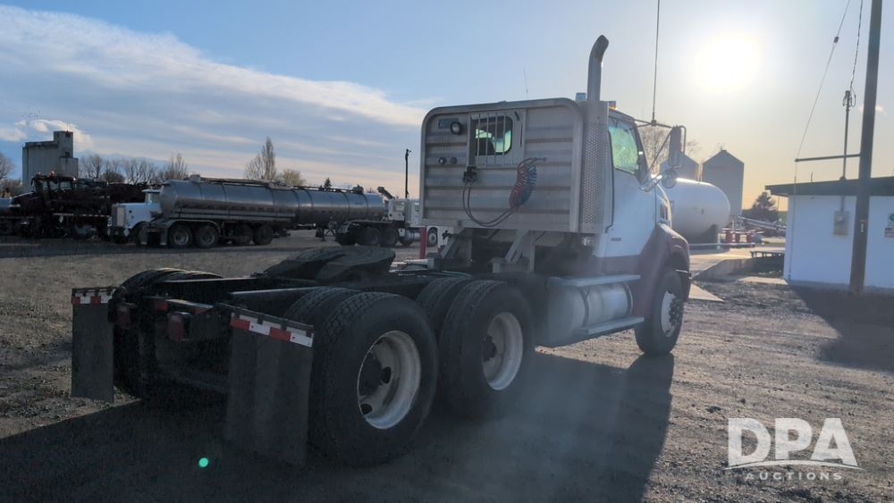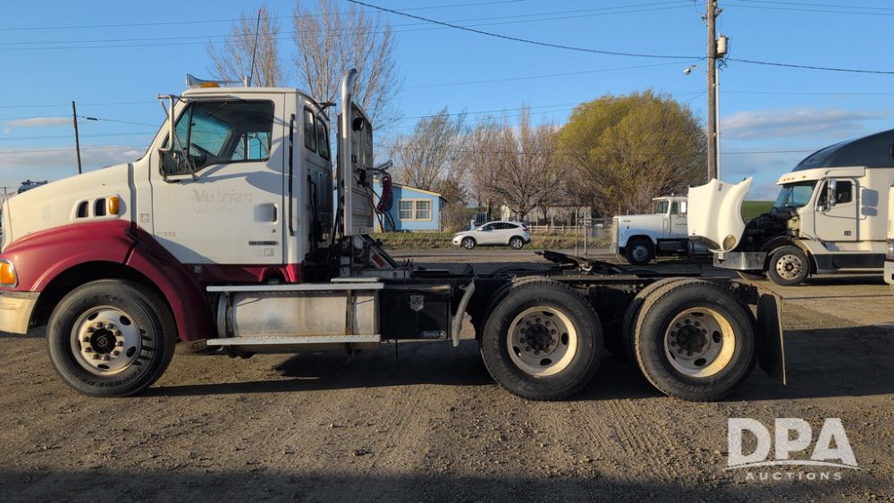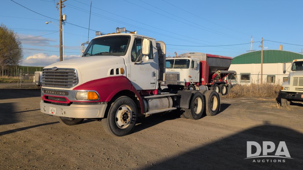 2001 Sterling AT9500 Day Cab Truck (NP6591, Unit 31939), diesel engine, manual transmission, heat, Am/Fm radio, tandem axle, air ride suspension, 5th wheel plate, headache rack, 11R22.5 tires, shows 52,000 pounds, approx. 372,550 miles.
