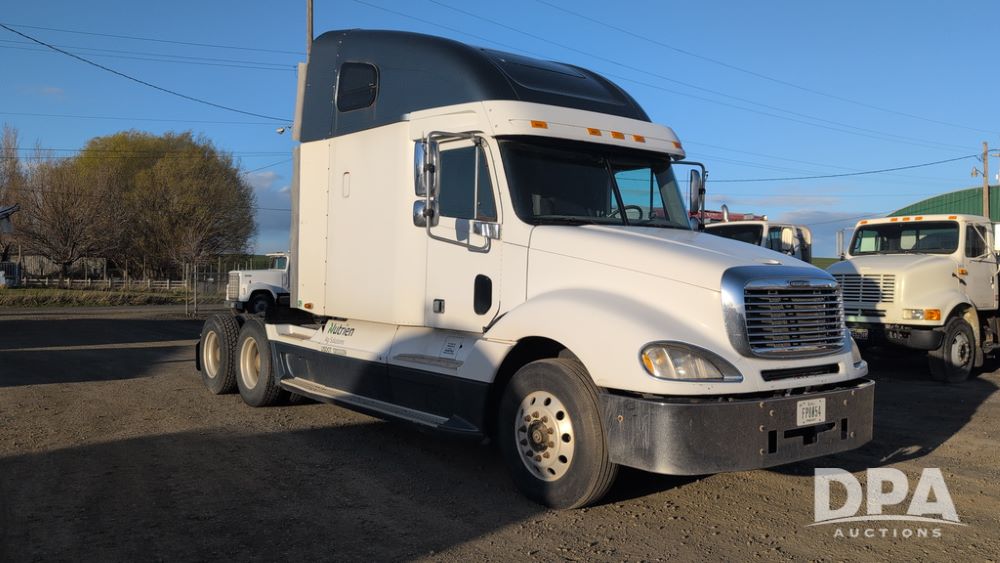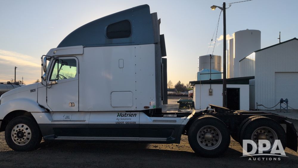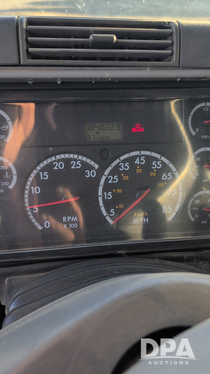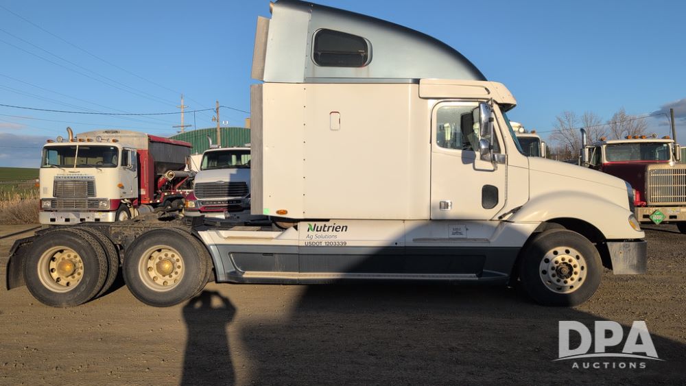 2004 Freightliner Truck (NP6592, Unit 99620), Detroit Series 60 diesel engine, Freightliner Smart Shift transmission, heat, Am/Fm radio, sleeper, tandem axle, air ride suspension, 5th wheel plate, 295/75R22.5 tires, shows 184,022 miles.