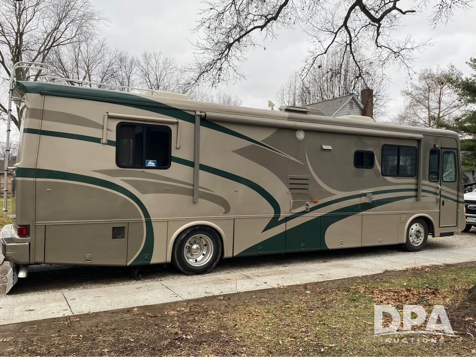 1997 Freightliner Dutchstar Coach RV (PD5556), Cat 3126 engine (new nearly 50,000 miles ago), new factory paint in 2012, new vinyl plank floor in bath and kitchen in 2021, one new roof a/c unit, new a/c on engine, new turbo in 20222, new steer tires in 20-23., shows miles.