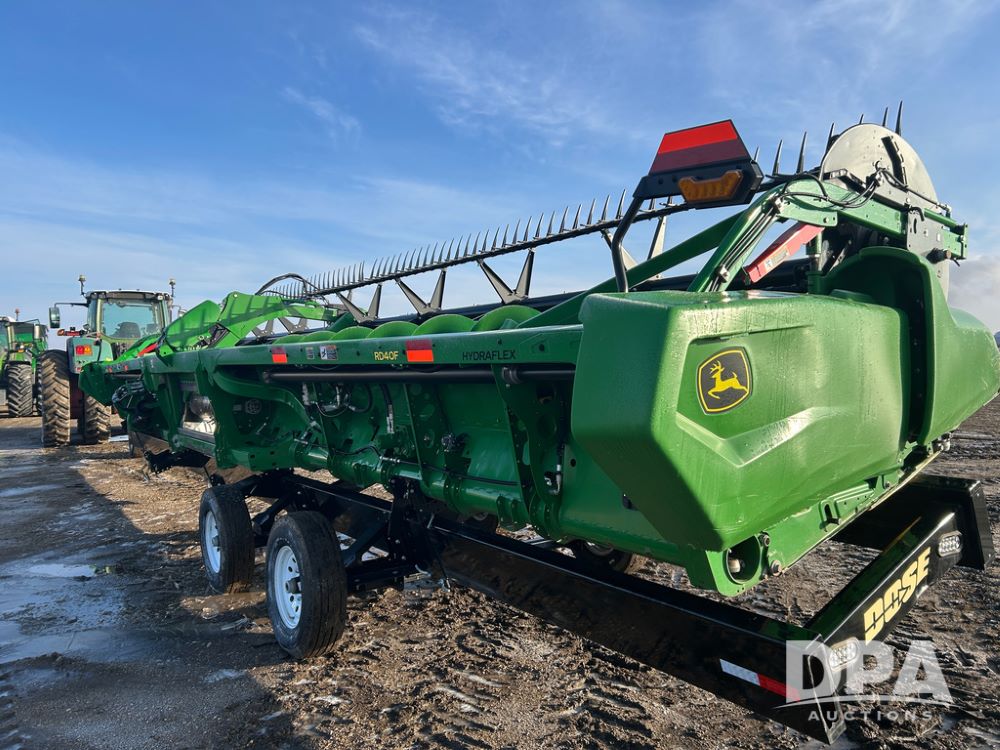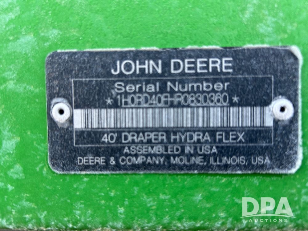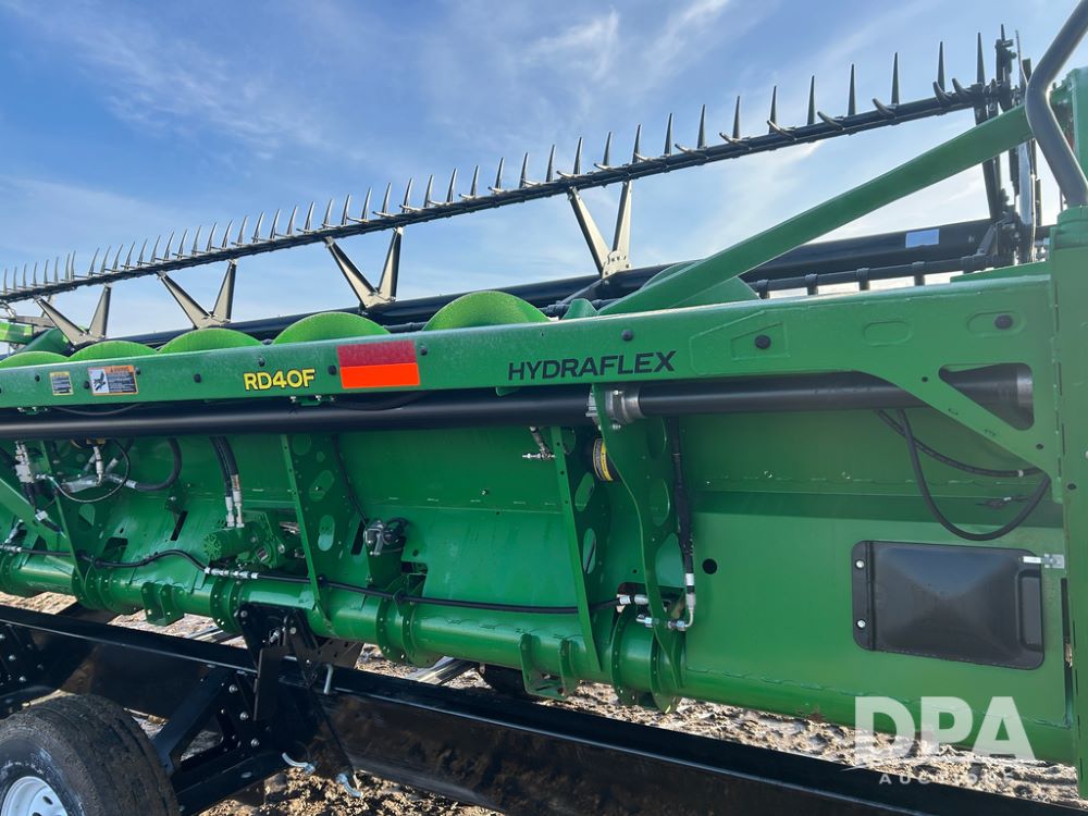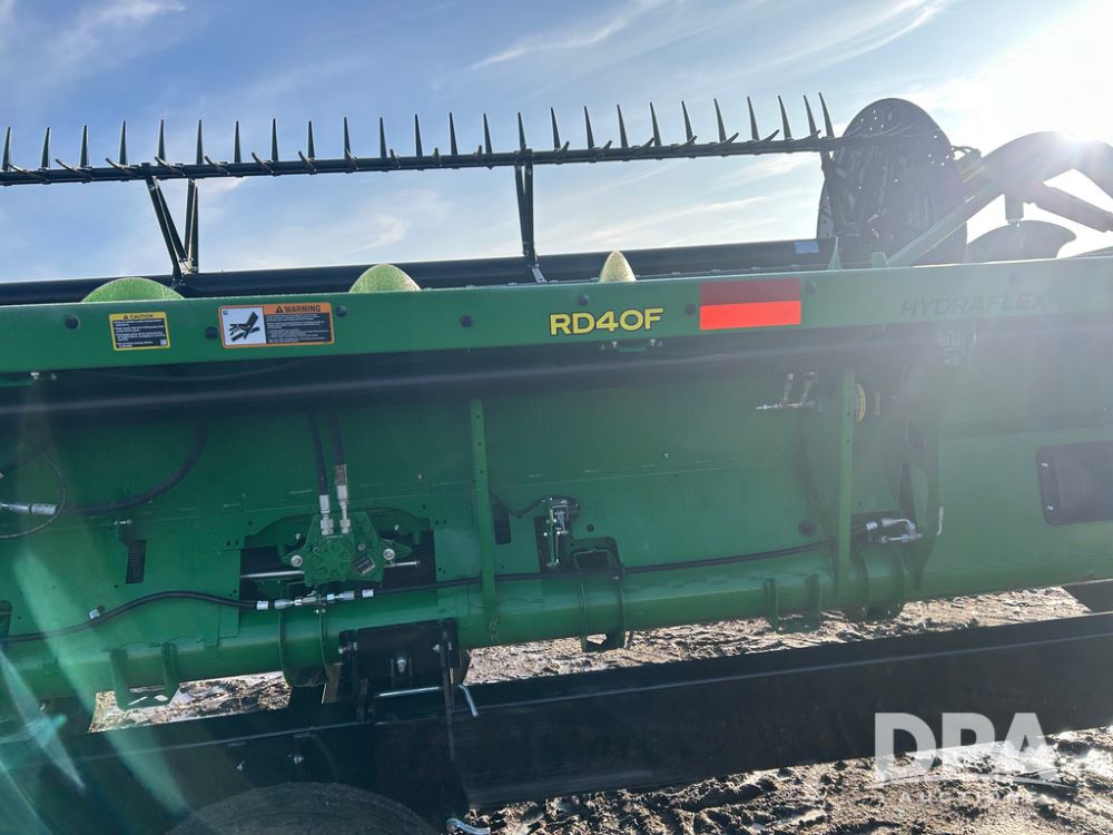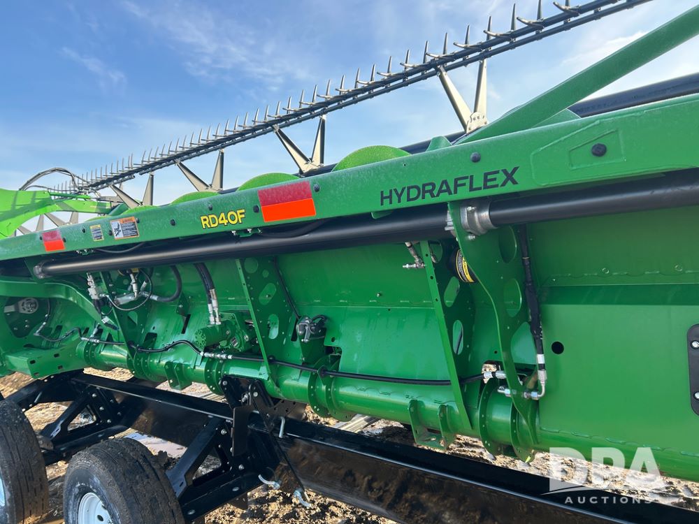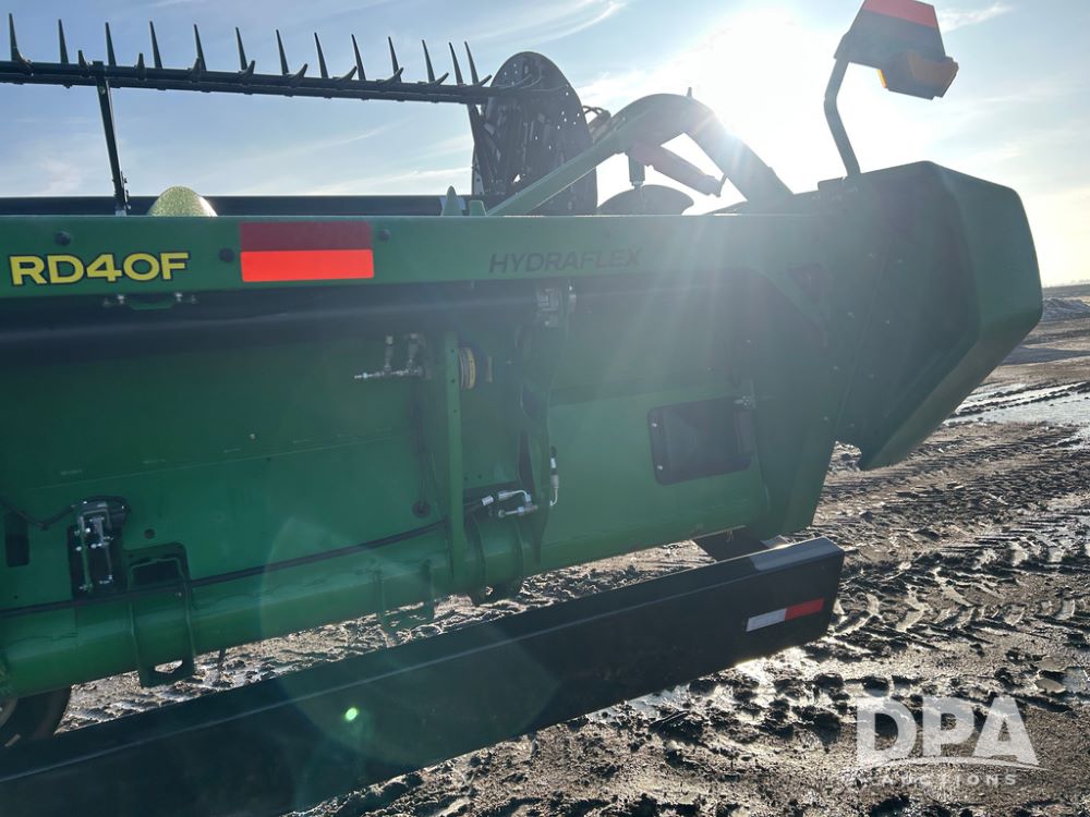 2024 John Deere RD40F Draper Head (CP1786), 40ft, dual knife drive, off ground header height sensors, top auger, standard skid shoes, flip over reel.