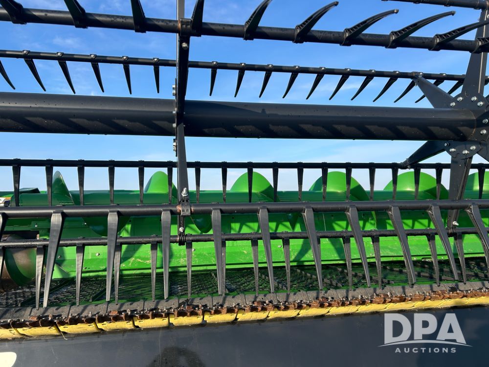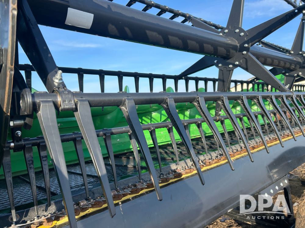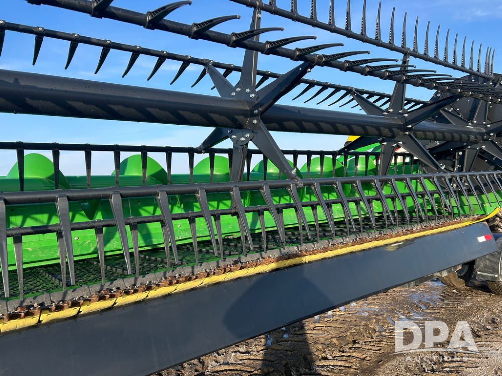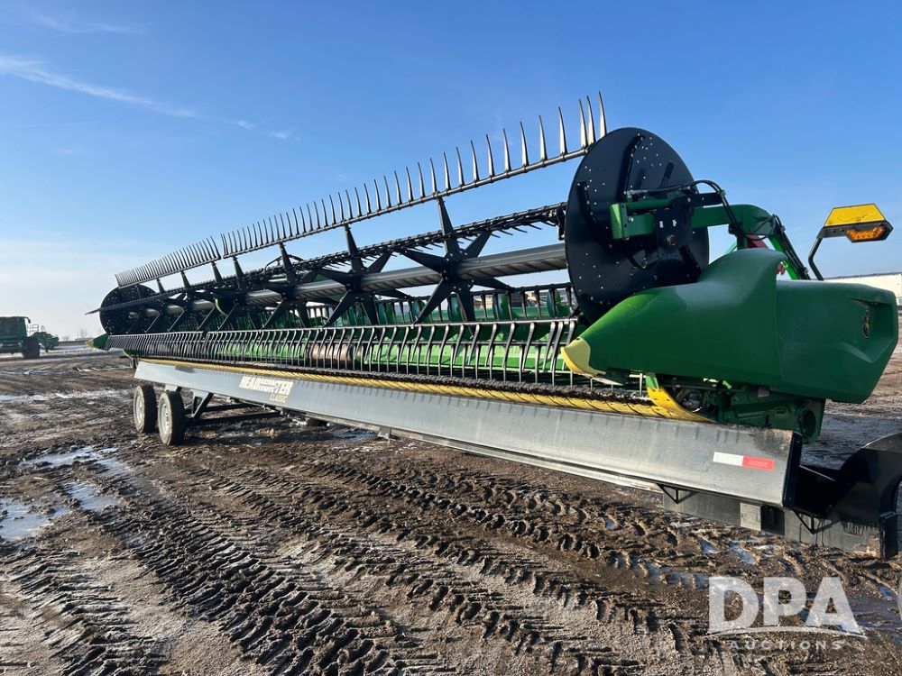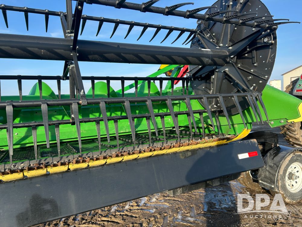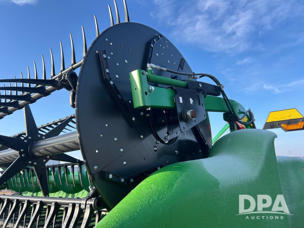 2024 John Deere RD40F Draper Head (CP1786), 40ft, dual knife drive, off ground header height sensors, top auger, standard skid shoes, flip over reel.