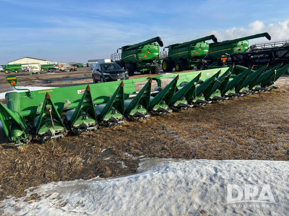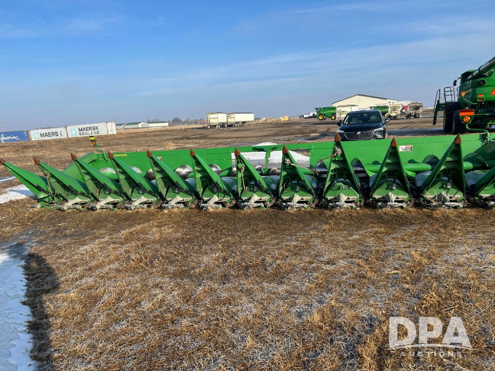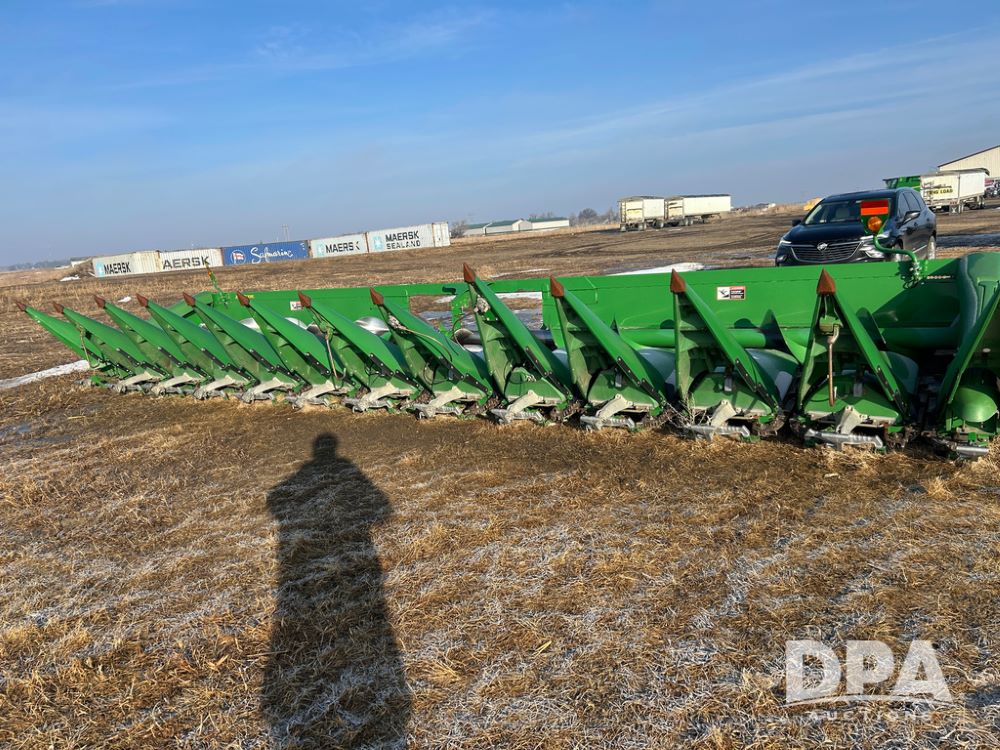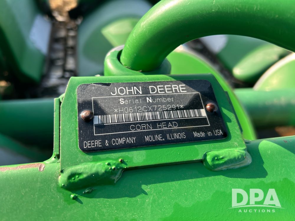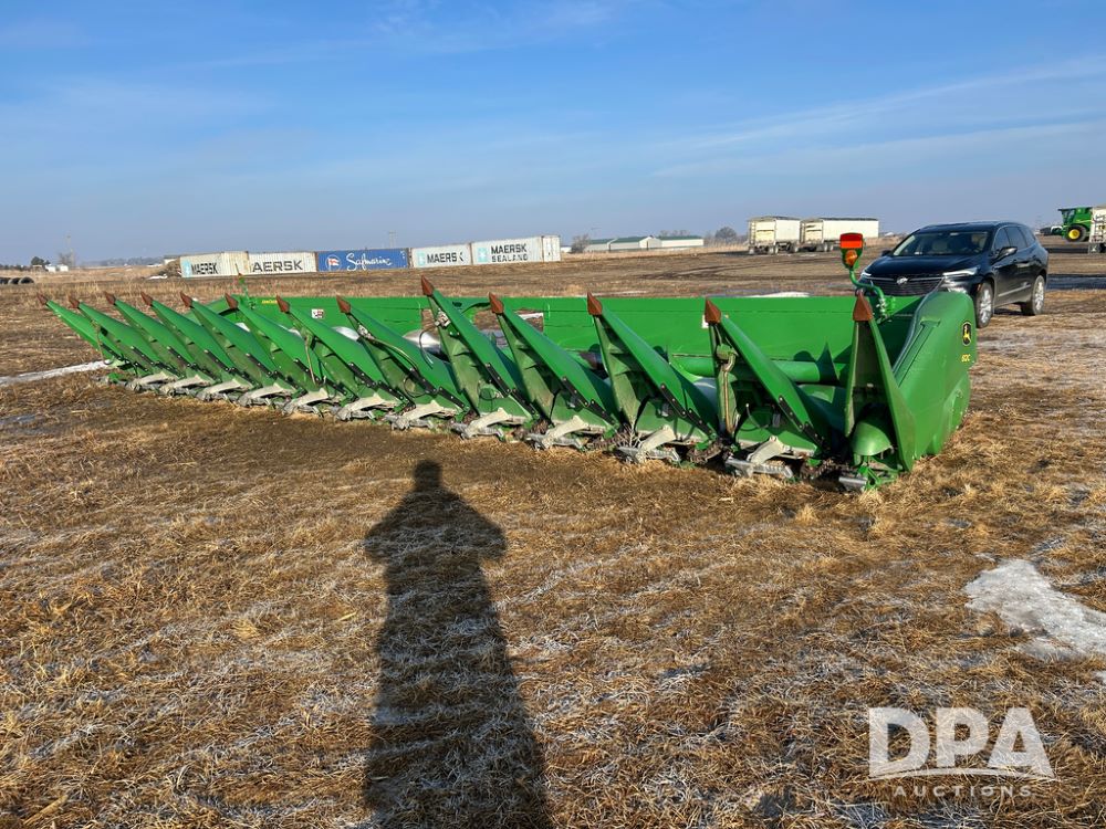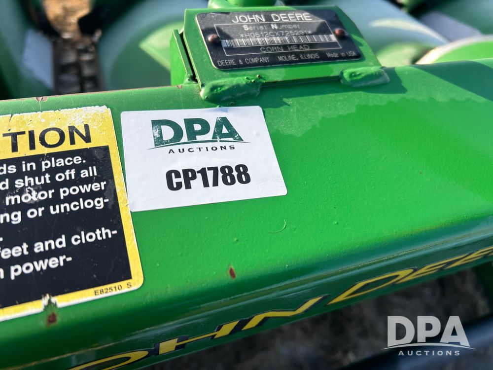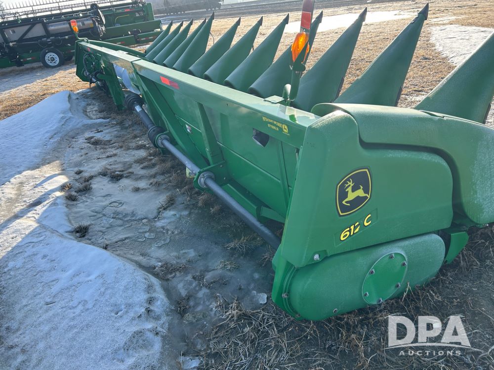 2008 John Deere 612C Corn Head (CP1788), 30in row spacing, opposed straight flat stalk rows, automatic height control, adjustable deck plates.