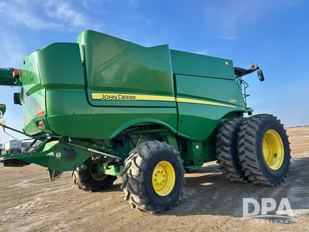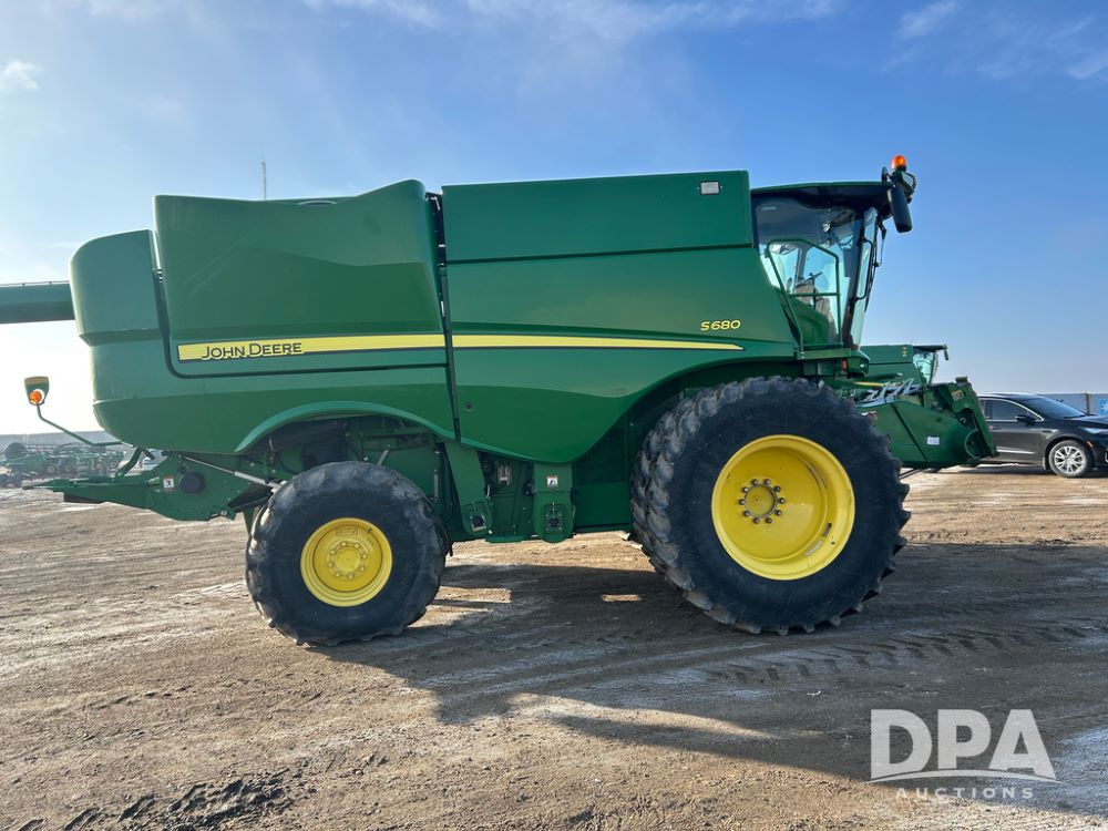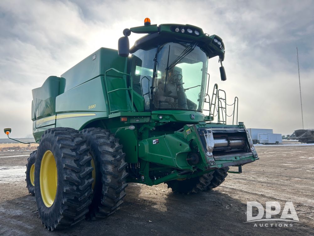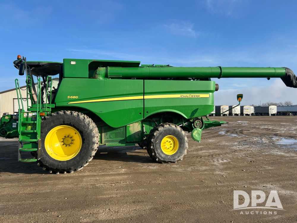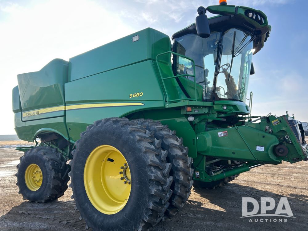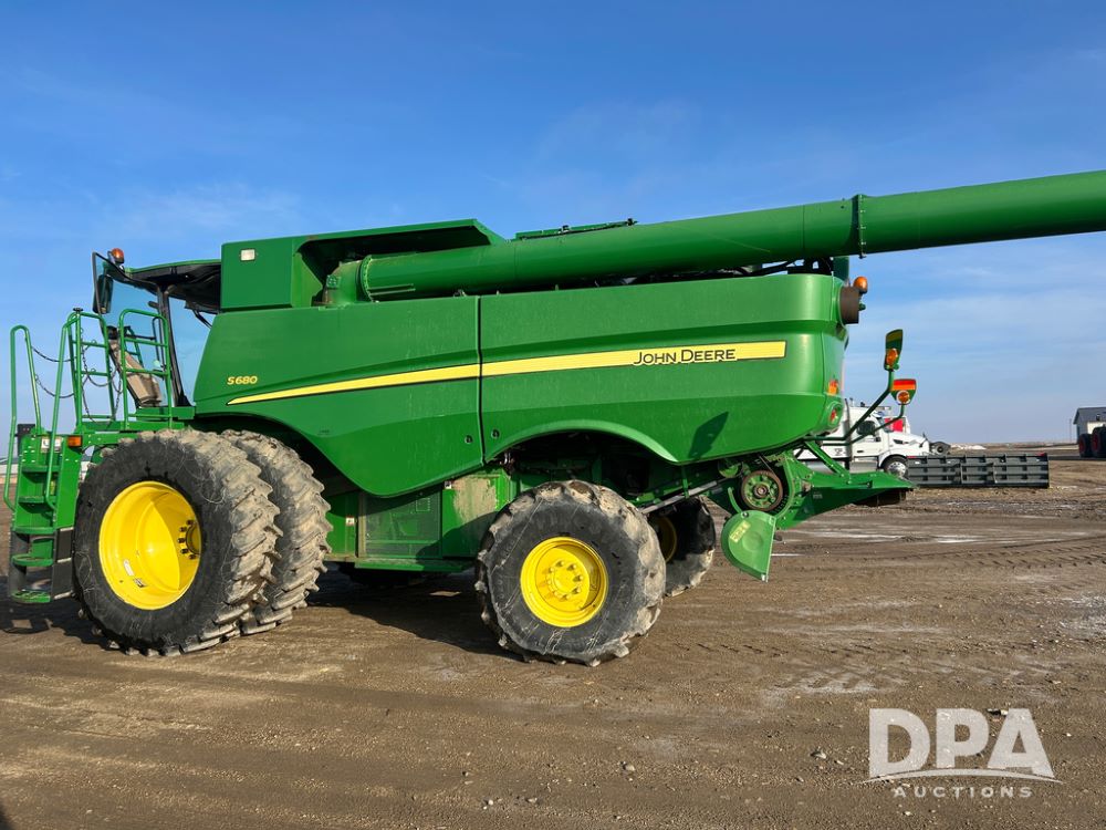 2014 John Deere 680S STS Combine (CP1789), 2 Wheel Drive, AutoTrac Ready, 26’ Auger, General Purpose Shoe, Pro Drive, 5-speed feeder house, cloth seats, buddy seat, Power Cast Tailboard, 580/85R42 front duals, 620/75R26 rears, 3,606 separator hours, 5,485 engine hours.