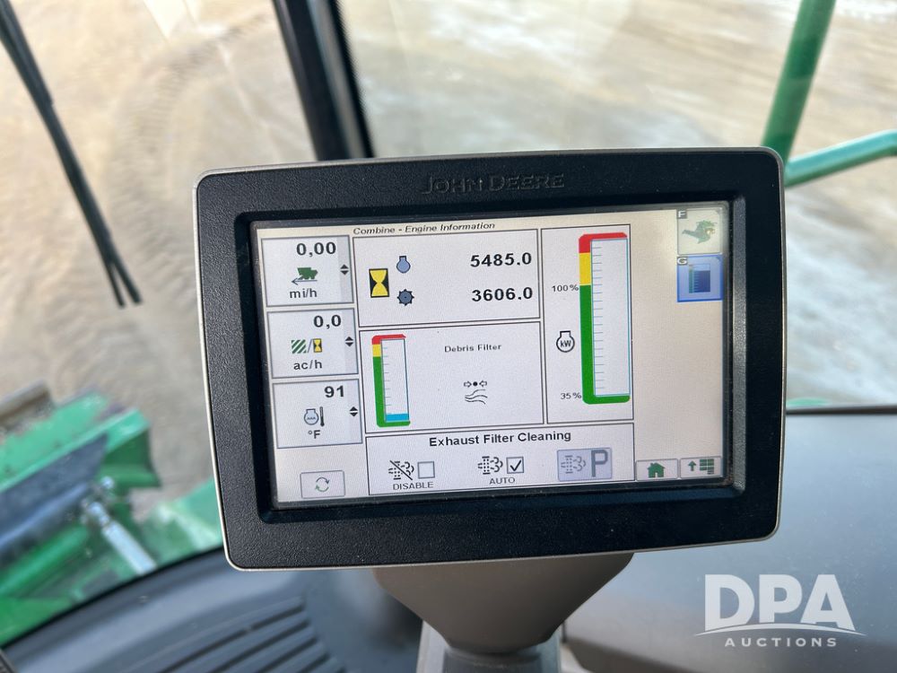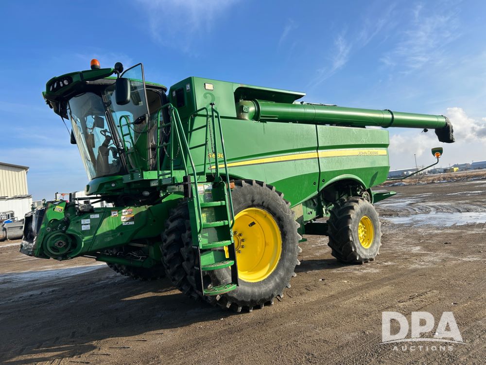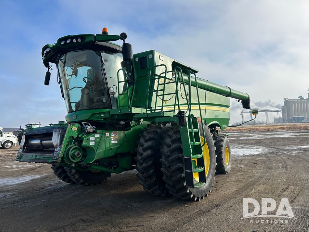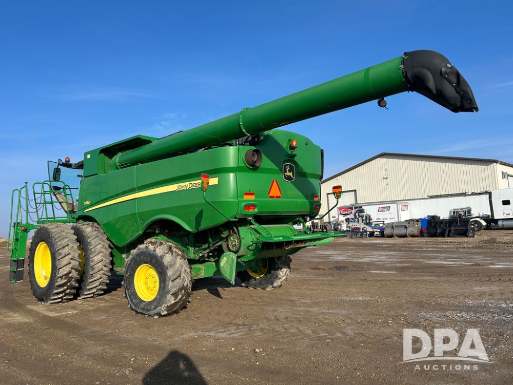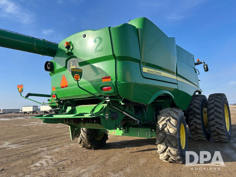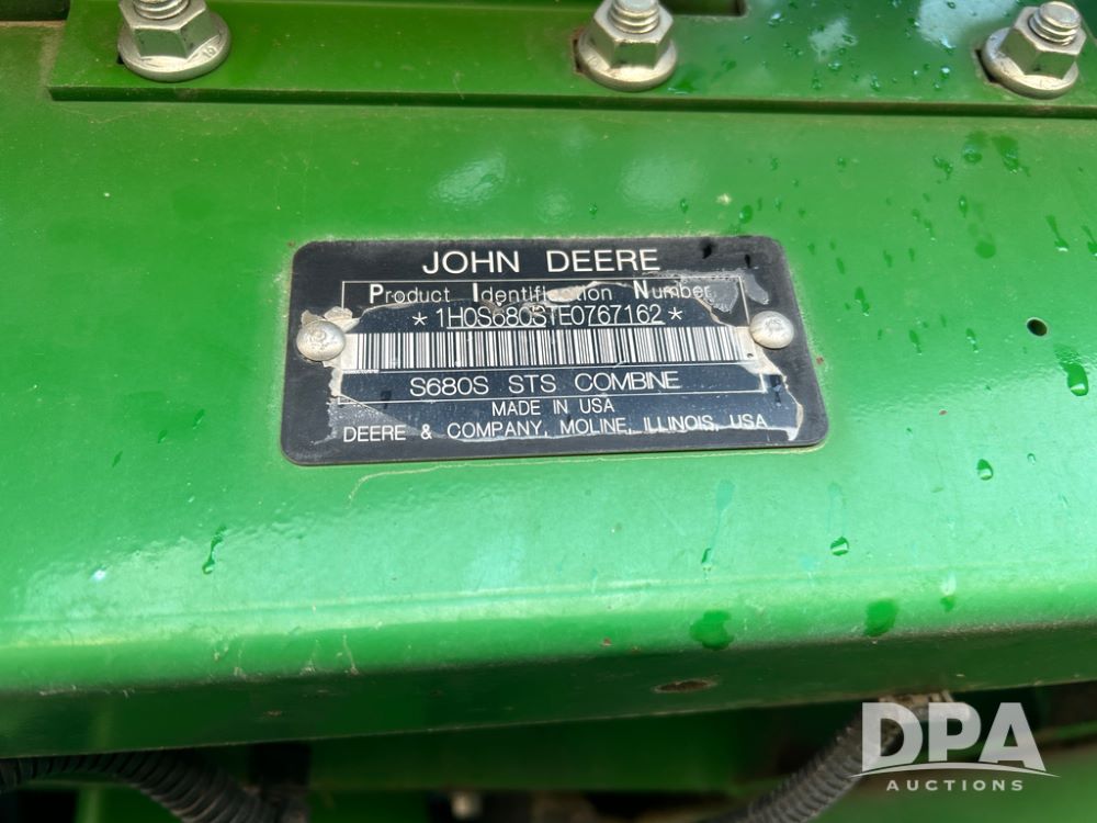 2014 John Deere 680S STS Combine (CP1789), 2 Wheel Drive, AutoTrac Ready, 26’ Auger, General Purpose Shoe, Pro Drive, 5-speed feeder house, cloth seats, buddy seat, Power Cast Tailboard, 580/85R42 front duals, 620/75R26 rears, 3,606 separator hours, 5,485 engine hours.
