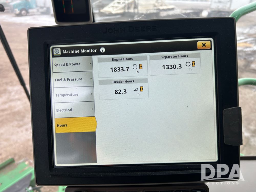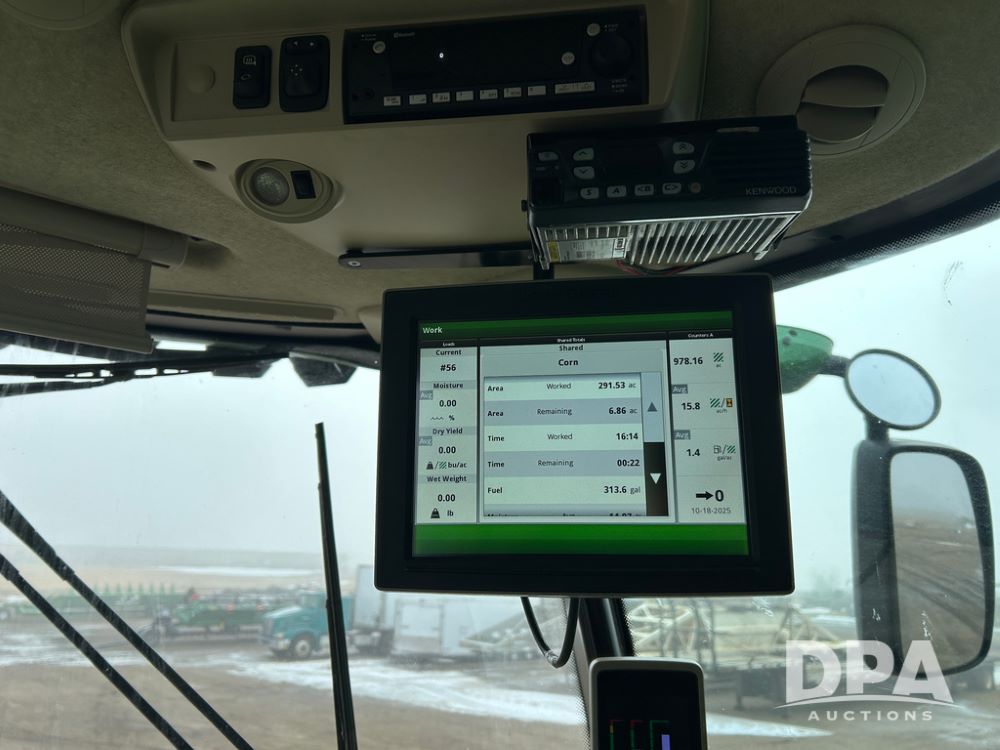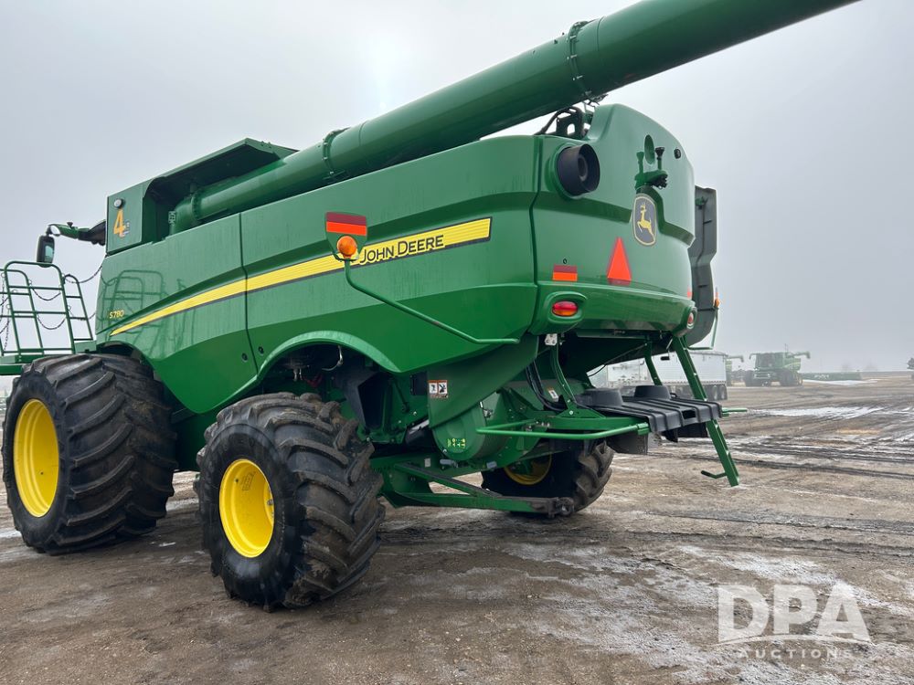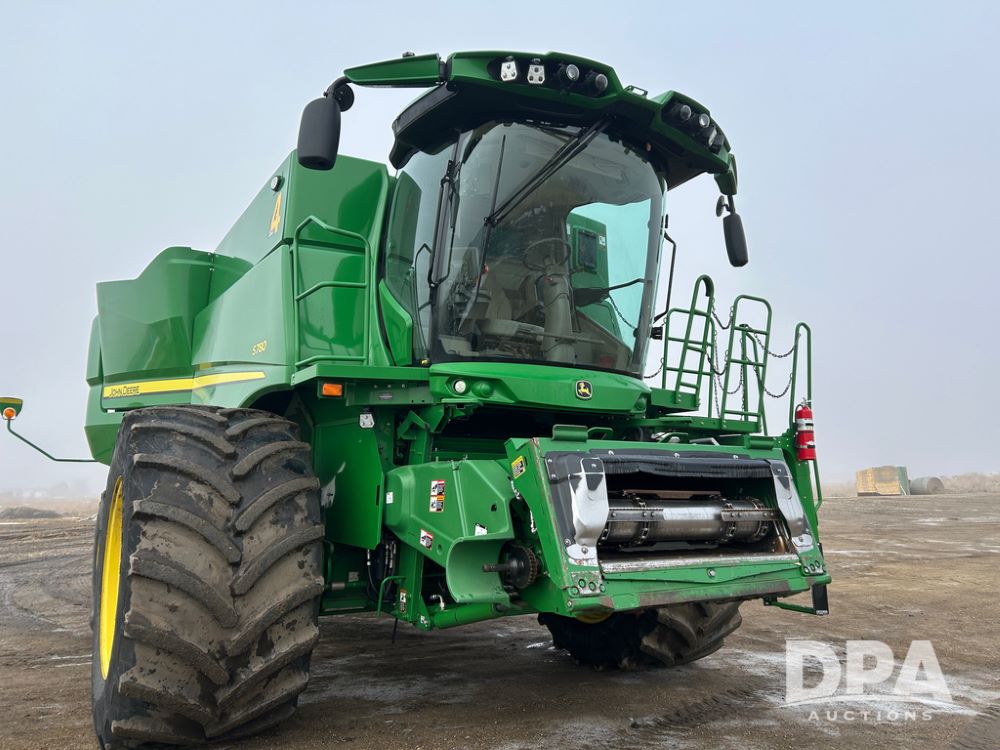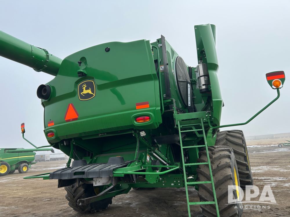 2022 John Deere 780S STS Combine (CP1792), 2-wheel drive, ProDrive, 5-speed feeder house, Power folding tank extensions, contour master, 28.5’ unloading auger, PowerCast powered tailboard, Gen 4 4600 processor, combine advisor, Auto Trac ready, data sync, in-field sharing, active yield, general purpose shoe, power mirrors, cloth seats, 26 high capacity unloading auger, refrigerator, LSW 110/45R46 front, 750/65R26 rears, 1,330 separator hours, 1,834 engine hours.
