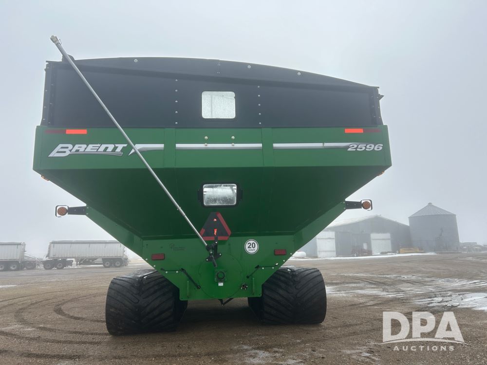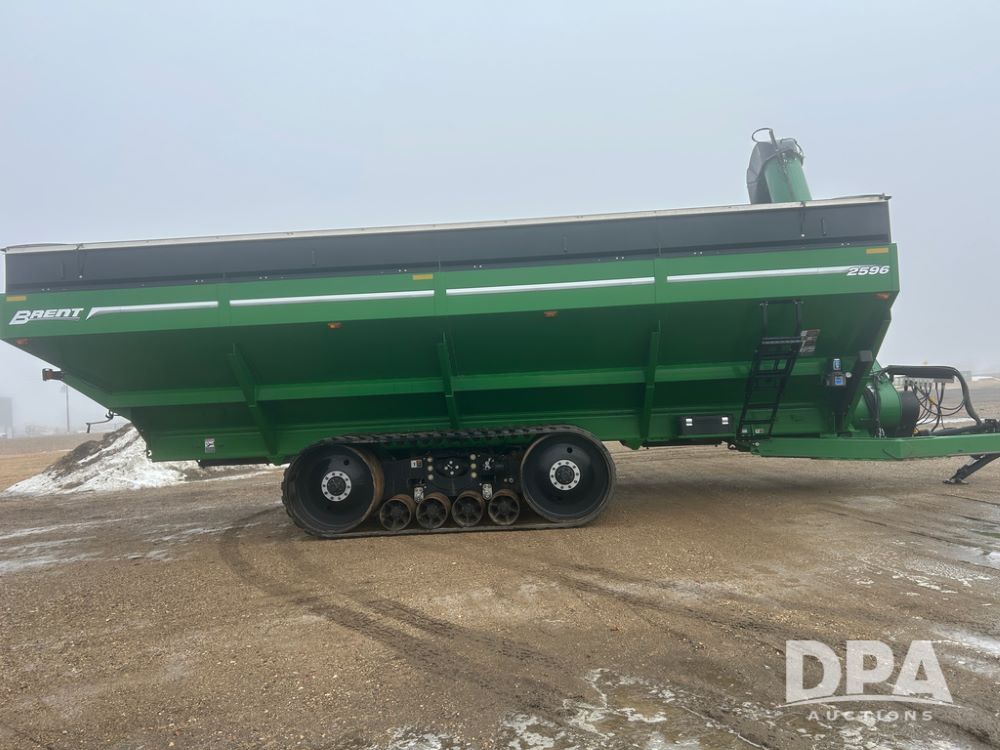 2021 Brent 2596 Grain Cart (CP1796),50in wide tracks, 2,500bu, 24in auger, manual roll tarp, 275 gal tank self cleaning system, Raven IsoBus Scale, automatic greasing system.