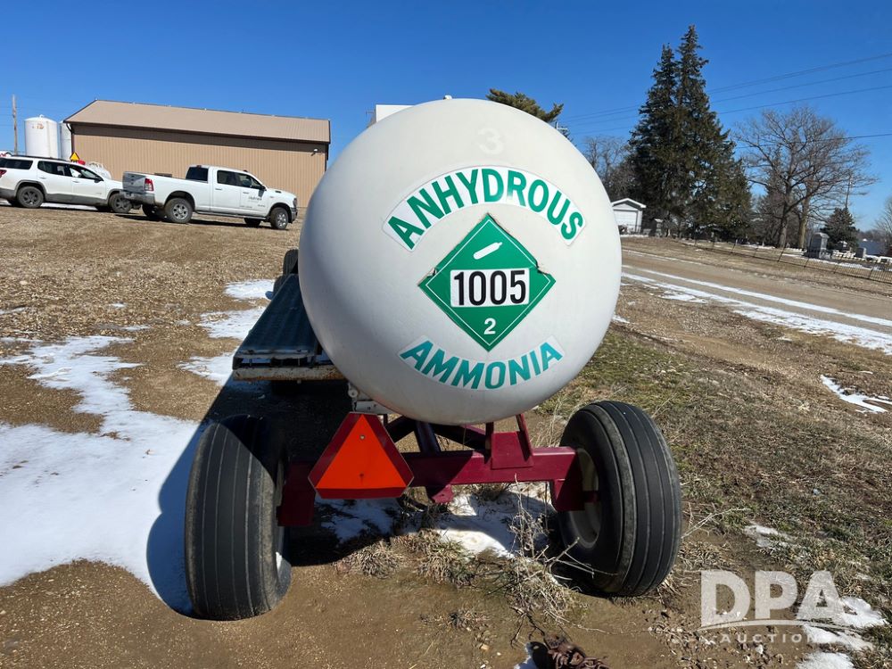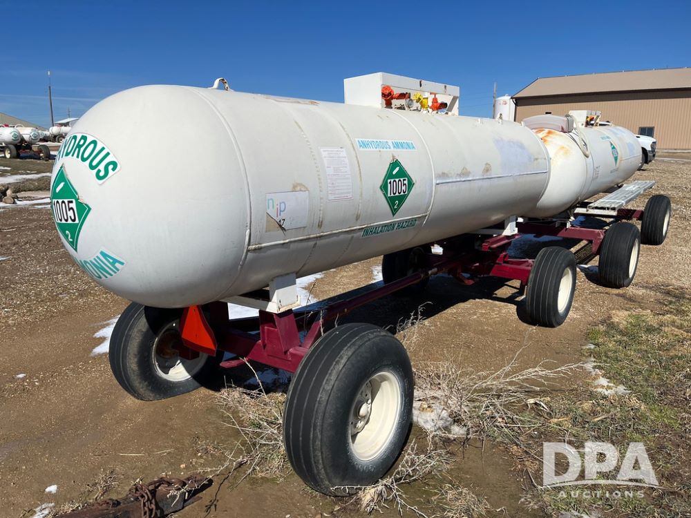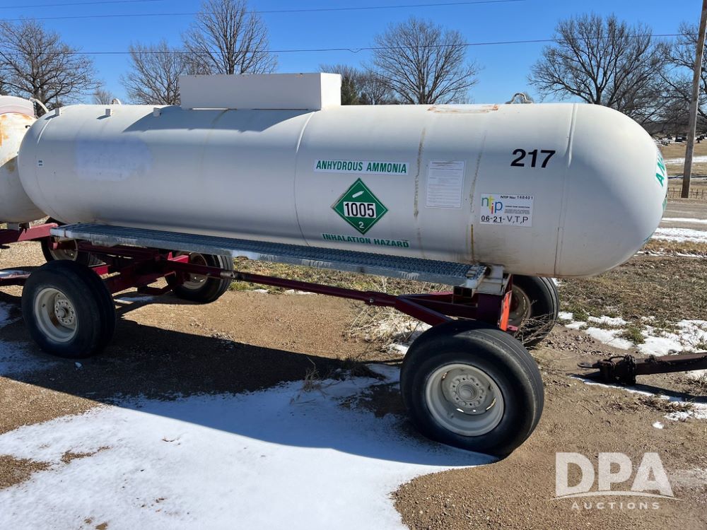 NH3 Nurse Tank (JN4230, Tank 217), approx. 1,000 gallon anhydrous nurse tank, top center fill, water tank, 4 wheel running gear, 12.5L-15 flotation tires, NTIP No: 148401, NO data plate.