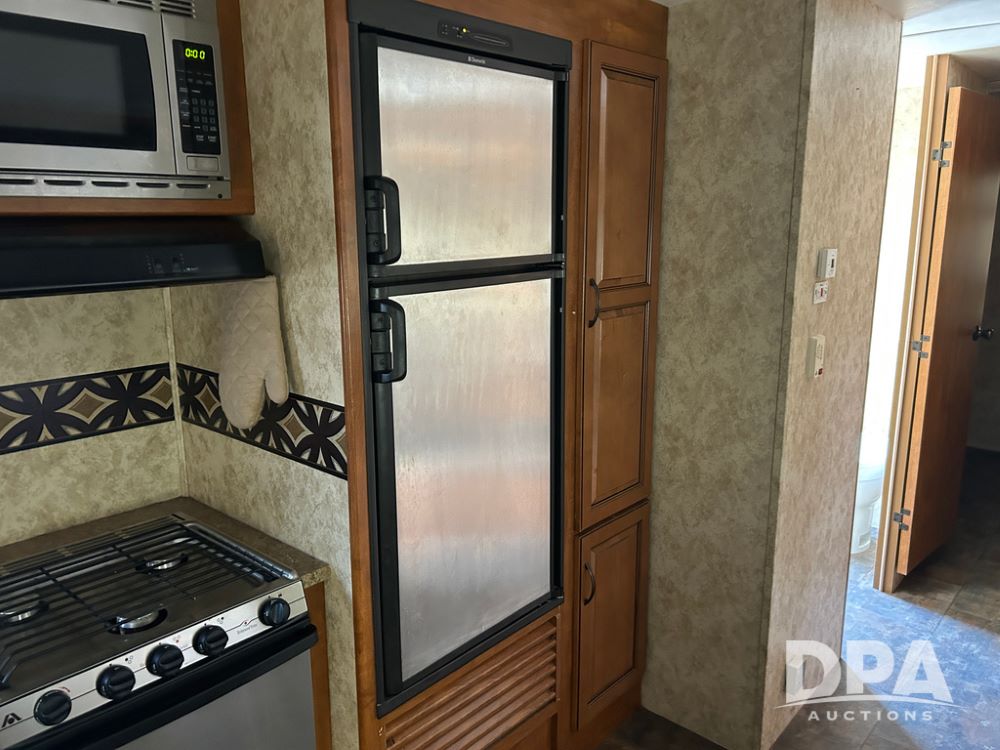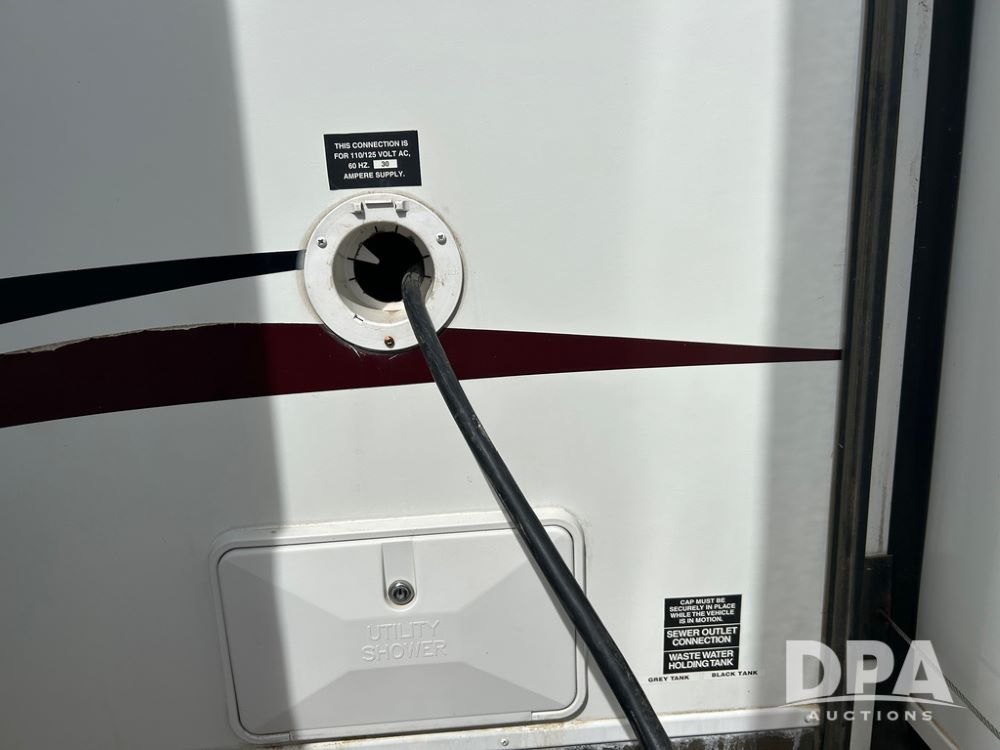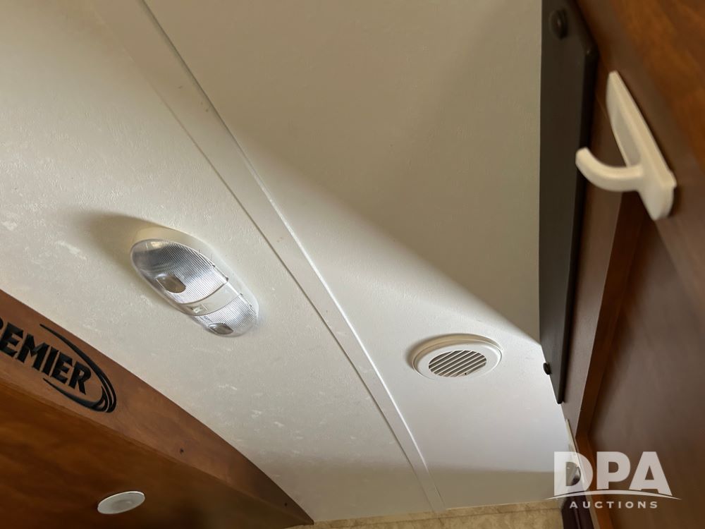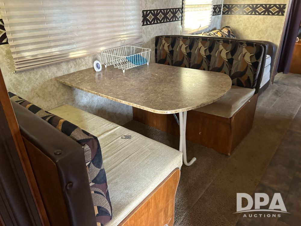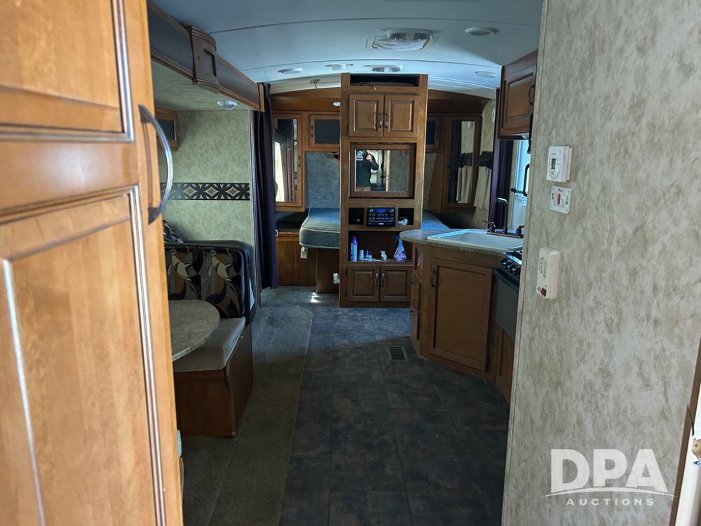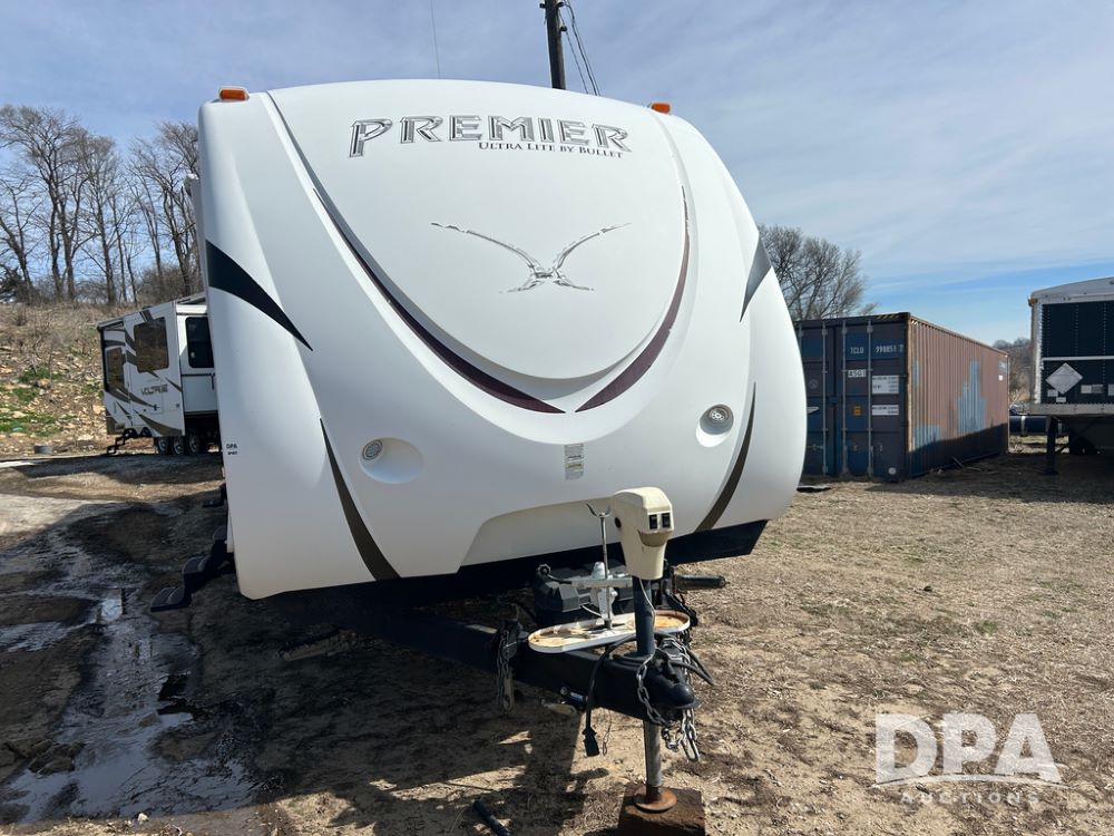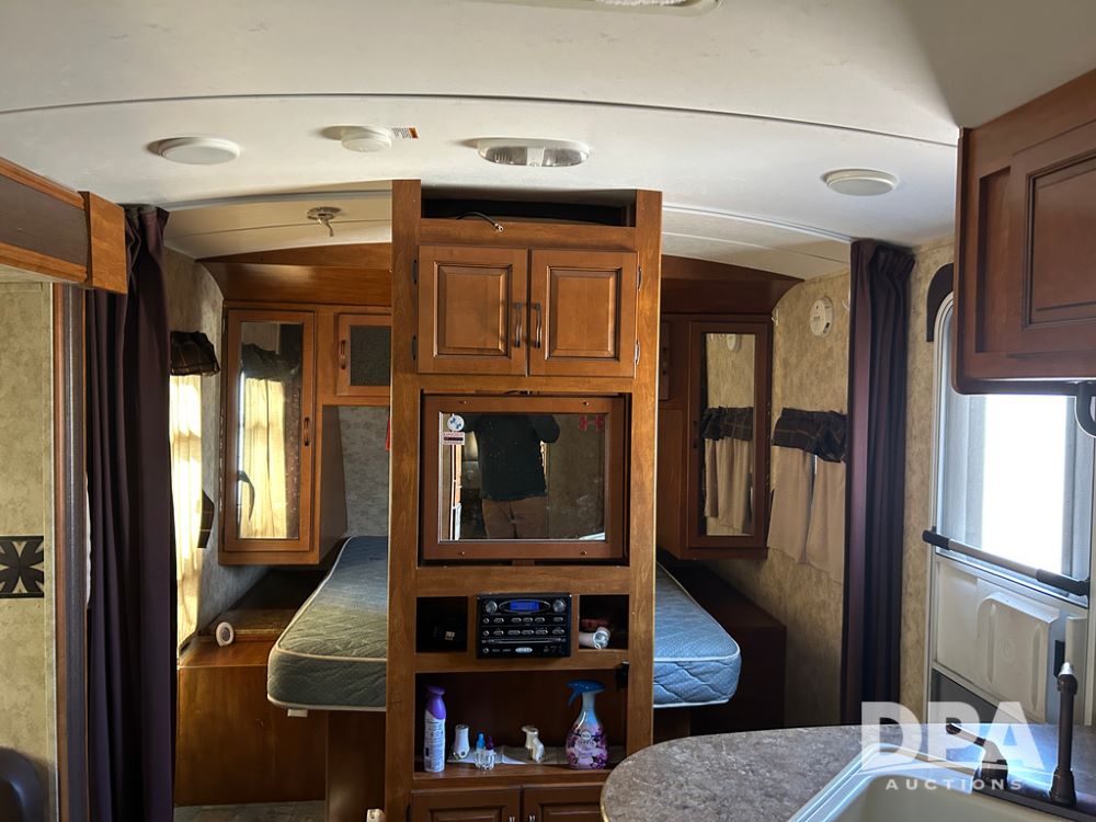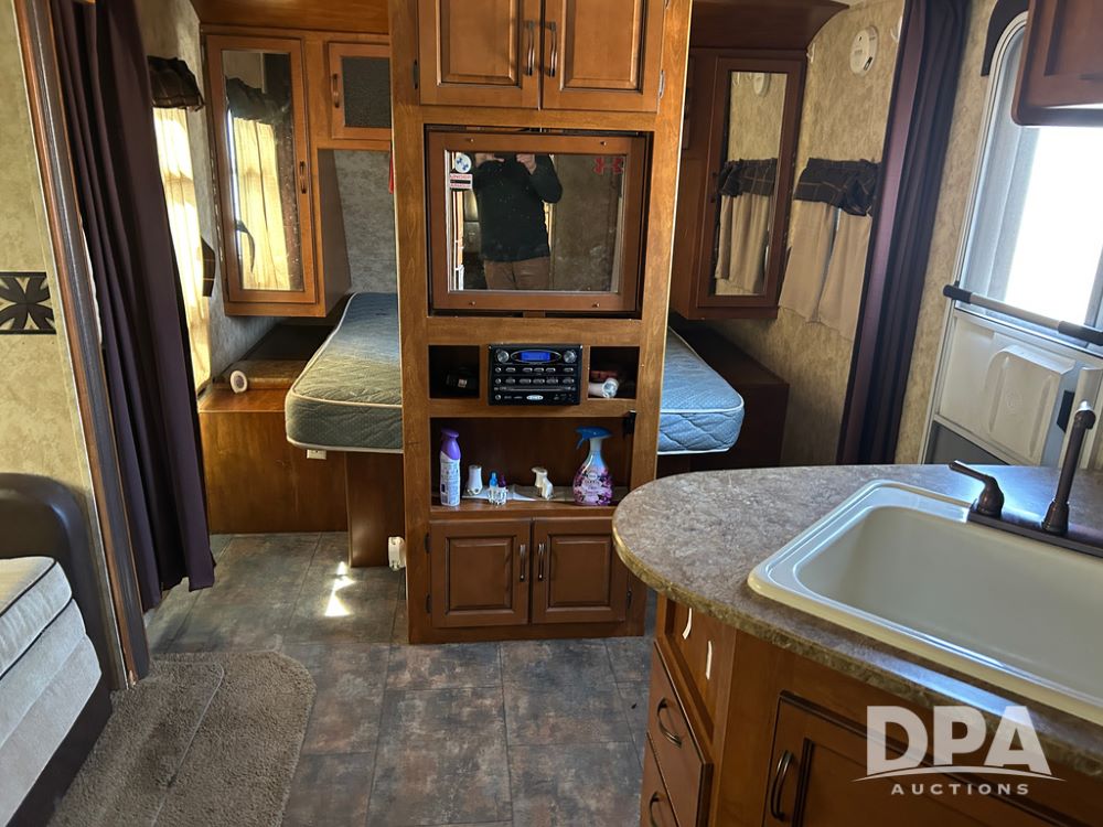 2012 Keystone Premier Ultra Camper (CP1872), Keystone Premier Ultra Camper, approx. 31' camper, GVWR 7,600 pounds, bumper hitch, (2) slide outs, spread axle, (2) outside side access doors, heat, air conditiong, power awning, outdoor shower, ST205/75R14 tires, outdoor kitchen area (door is stuck), bathroom with shower, bunk beds with fold out futon, kitchen table that converts to sleeping platform, sink, oven, microwave, fridge/freezer, full size bed, comes with equalizer hitch.
