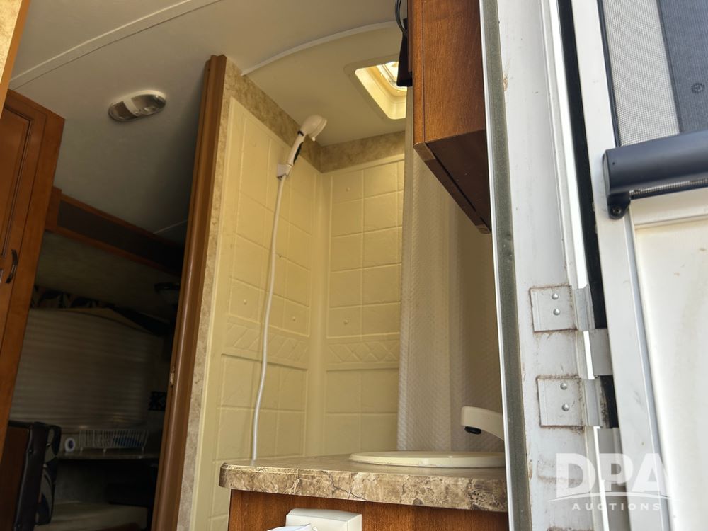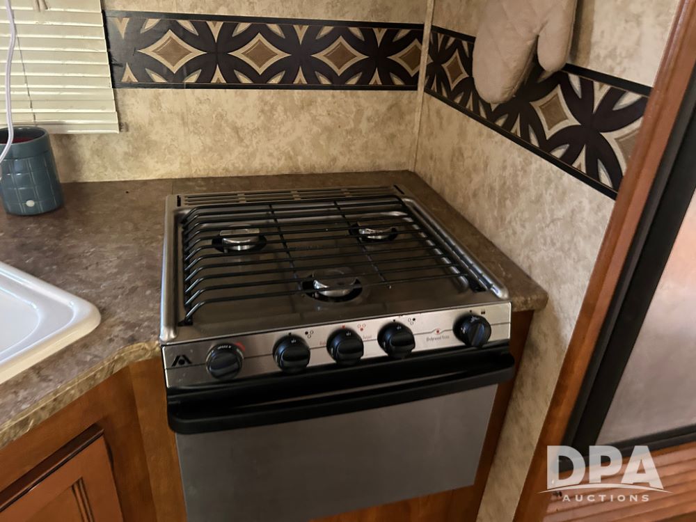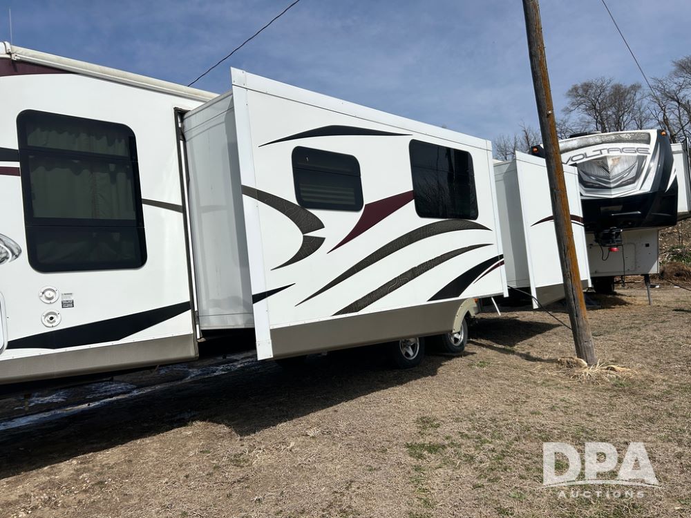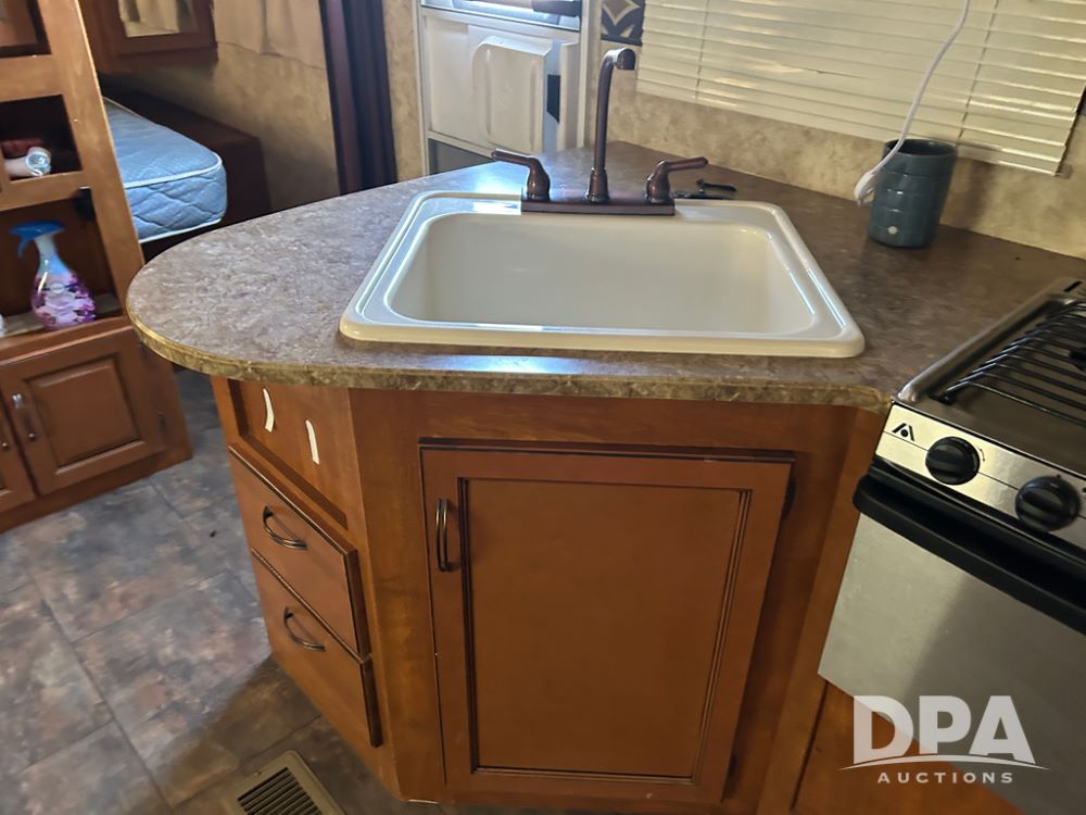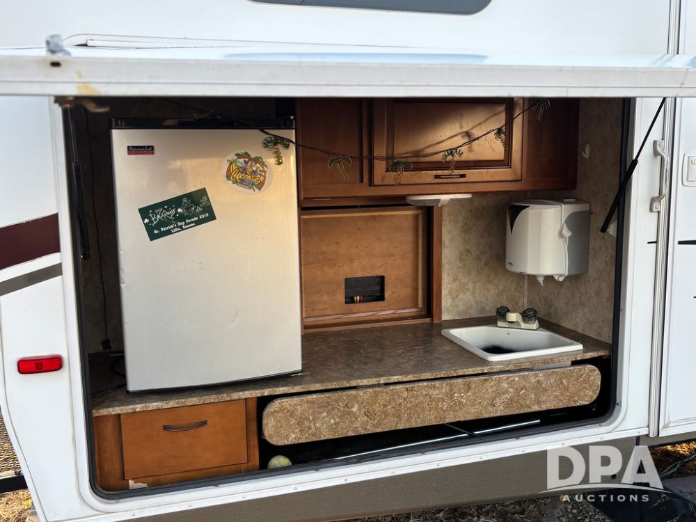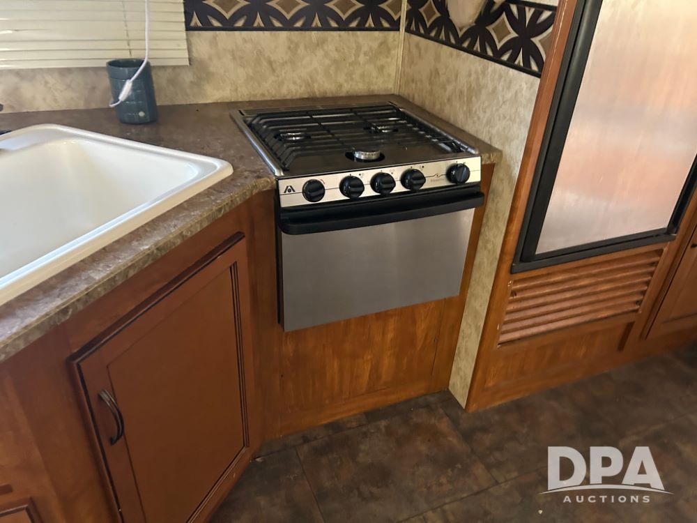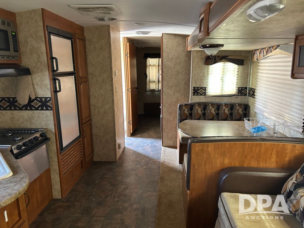 2012 Keystone Premier Ultra Camper (CP1872), Keystone Premier Ultra Camper, approx. 31' camper, GVWR 7,600 pounds, bumper hitch, (2) slide outs, spread axle, (2) outside side access doors, heat, air conditiong, power awning, outdoor shower, ST205/75R14 tires, outdoor kitchen area (door is stuck), bathroom with shower, bunk beds with fold out futon, kitchen table that converts to sleeping platform, sink, oven, microwave, fridge/freezer, full size bed, comes with equalizer hitch.