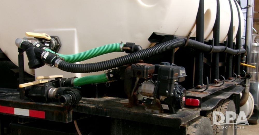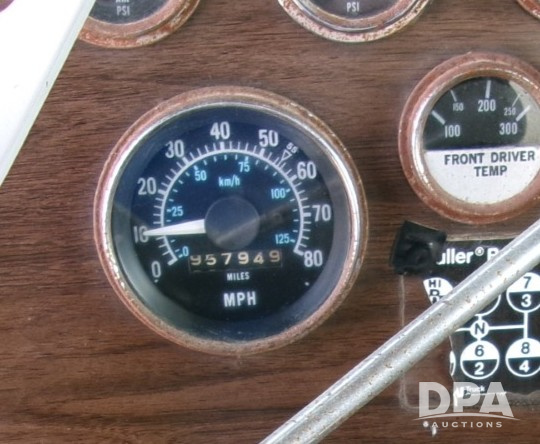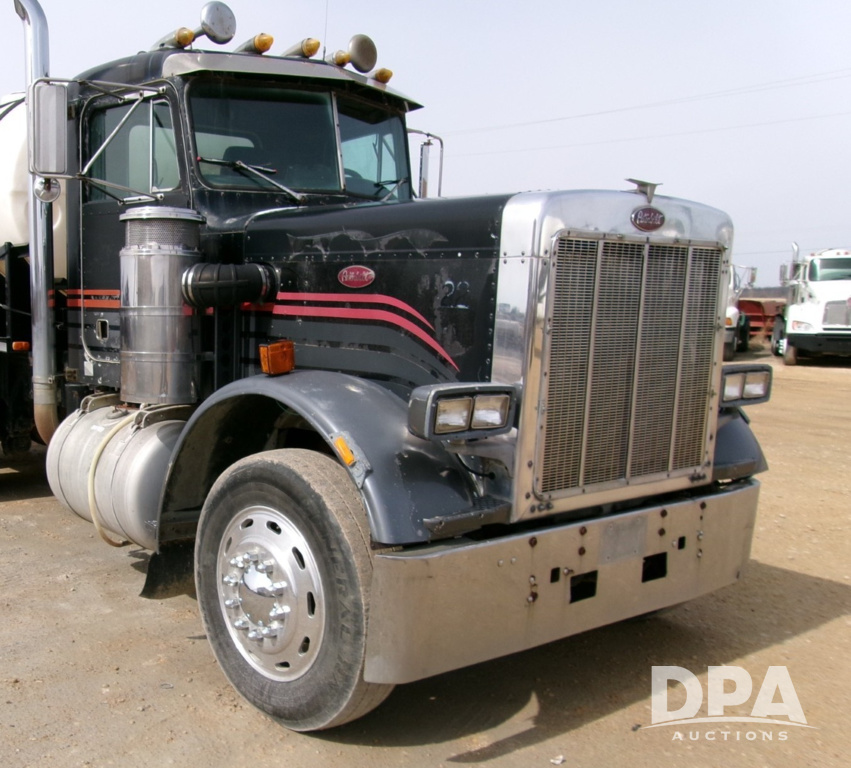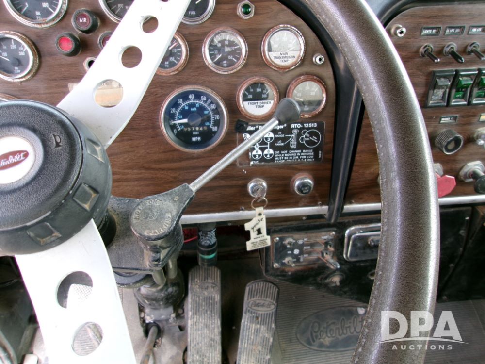 1981 Peterbilt 359 Truck (DB041), Cummins 855 engine, Eaton Fuller 13 speed transmission, heat, 2,500 gallon water tank, plumbing, dual fuel tanks, tandem axle, 285/75R24.5 front tires, 11R24.5 rears, shows 957,949 miles.