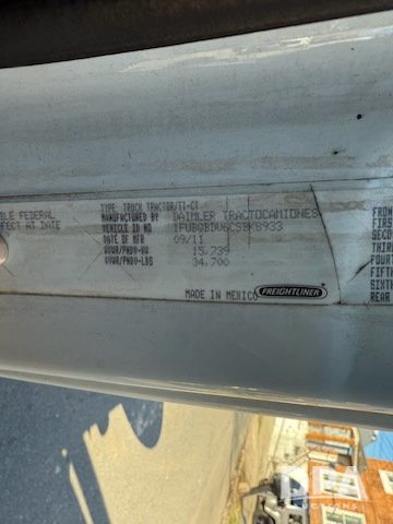2012 Freightliner Cascadia Day Cab Truck (LLD1716), Detroit DD13 engine, automatic transmission, heat, air conditioning, air ride, 5th wheel, shows 339,436 miles.