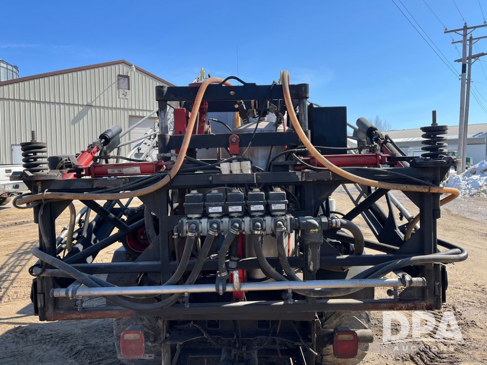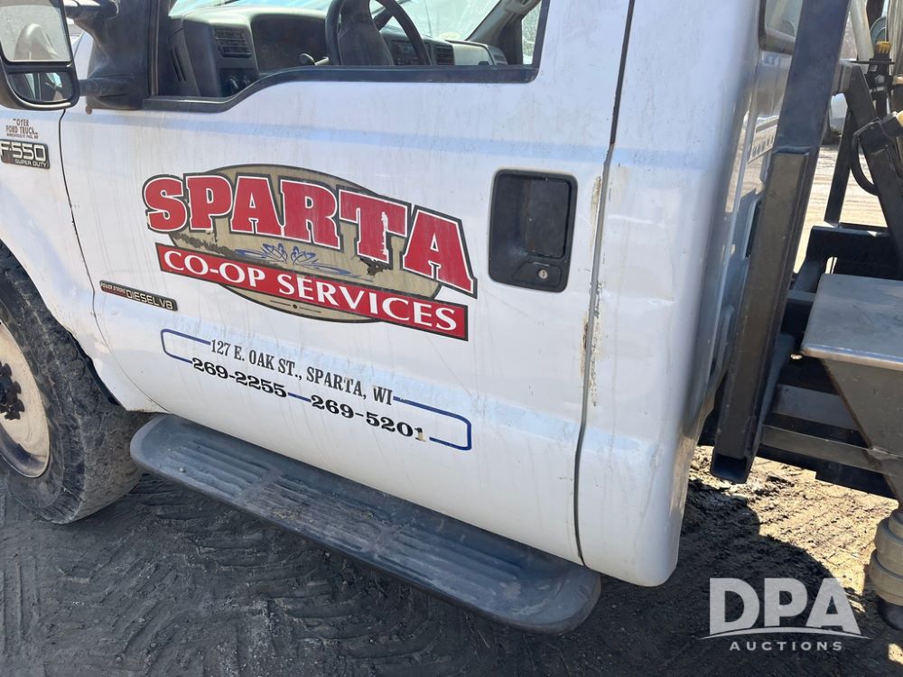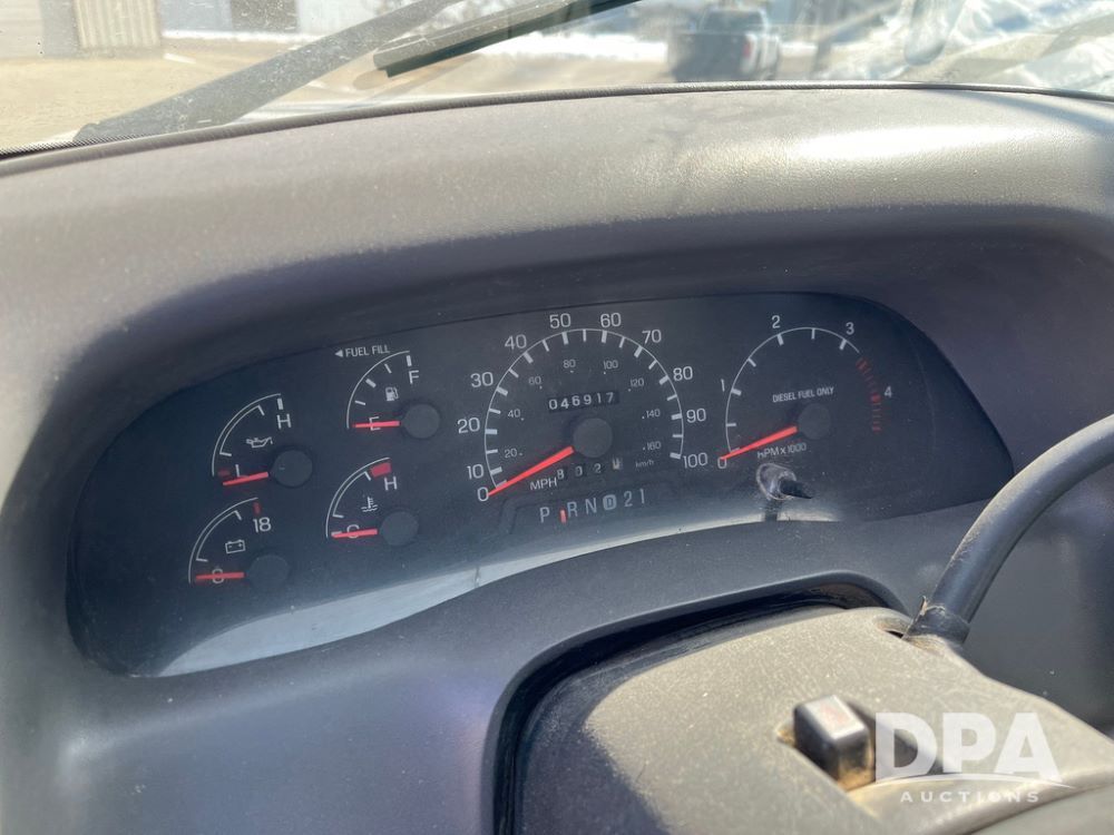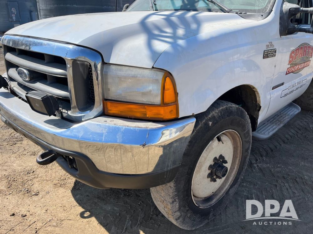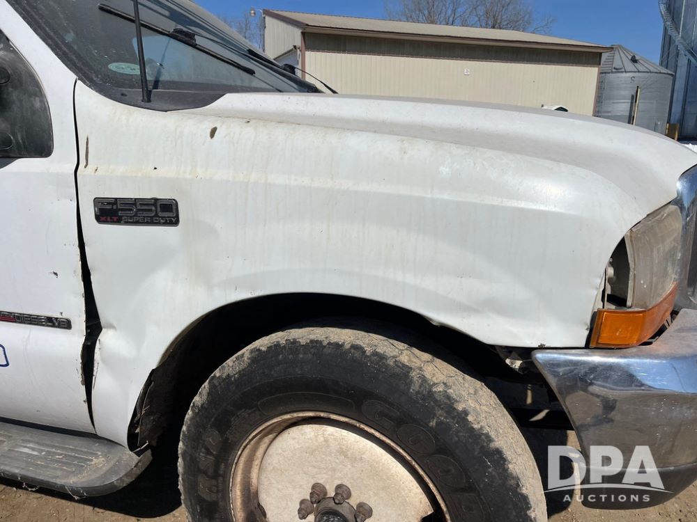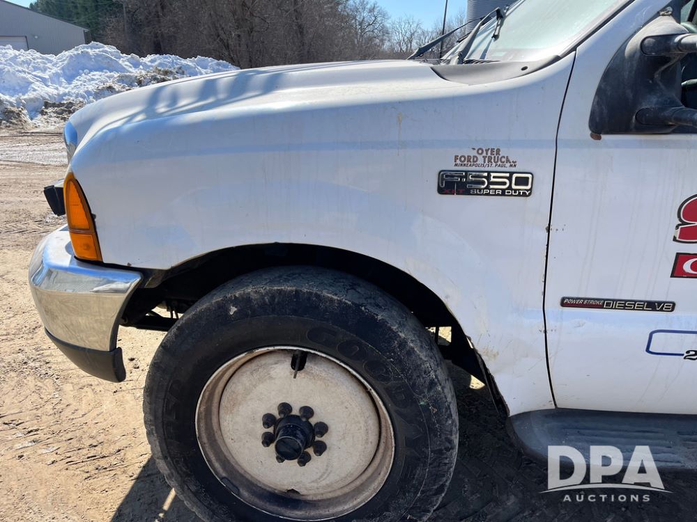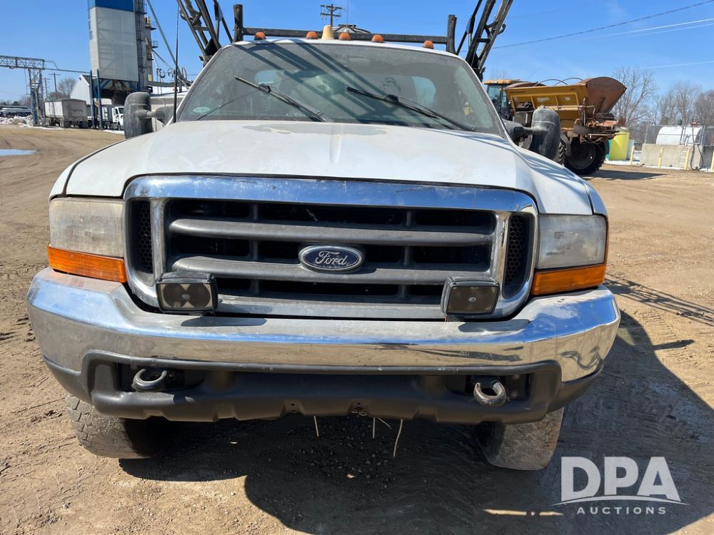 1999 Ford F-550 XLT Super Duty 4x4 Pickup Sprayer (JN4233), diesel engine, automatic transmission, heat, Am/Fm radio, power windows, locks and mirrors, cruise control, Field Commander 500 gallon stainless steel liquid system, stainless steel chemical inductor tank, foam marker, running boards, 265/75R22.5 front tires, 400/55-22.5 rear tires, Raven SCS 450 controller, shows 46,917 miles.