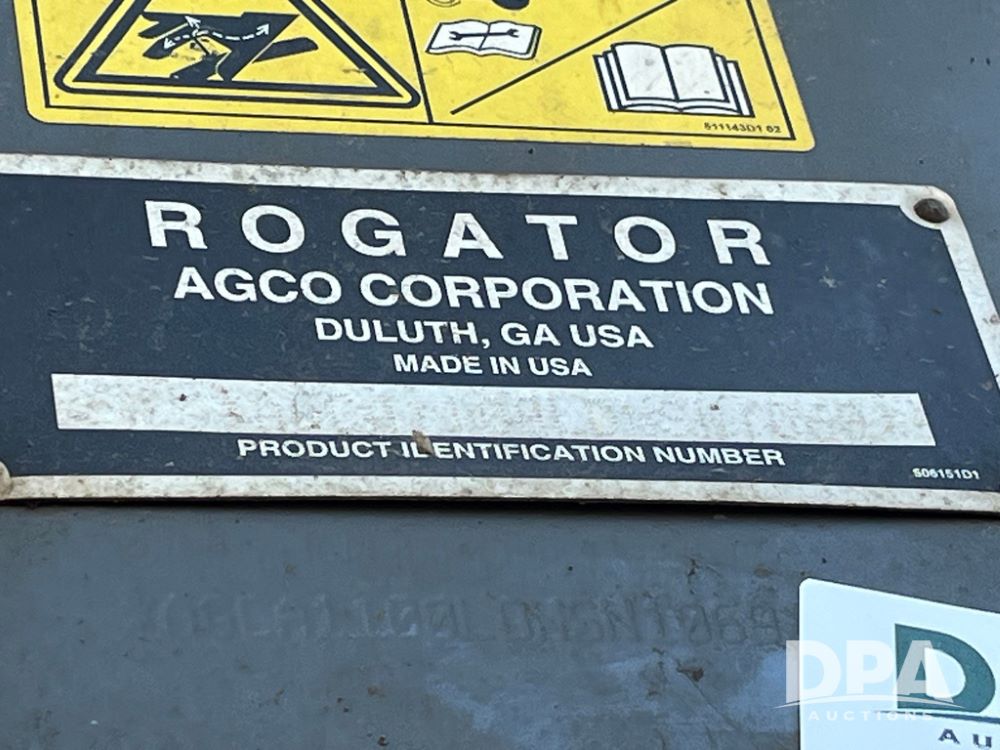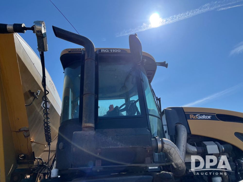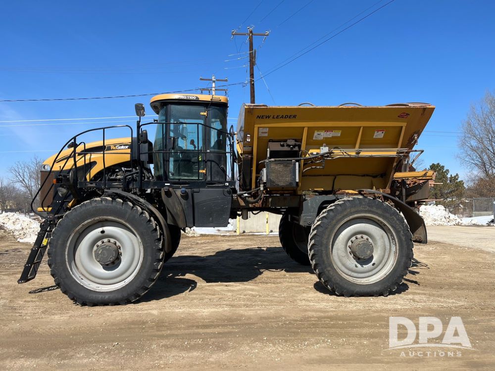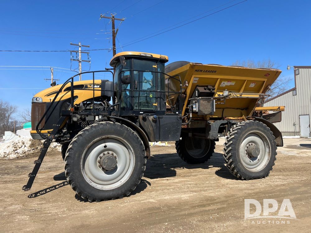 2013 RoGator RG1100 Dry Machine (JN4235), SisuTronic Power diesel engine, hydrostatic transmission, heat, air conditioning, Am/Fm radio, New Leader L4258 G4 MultApplier Ready dry spreader box (Model 545967D1-11, S/N 135244), dual spinners, hydraulic, electric roll tarp, lightbar, 380/90R46 row crop tires, fenders, shows 4,422 hours.