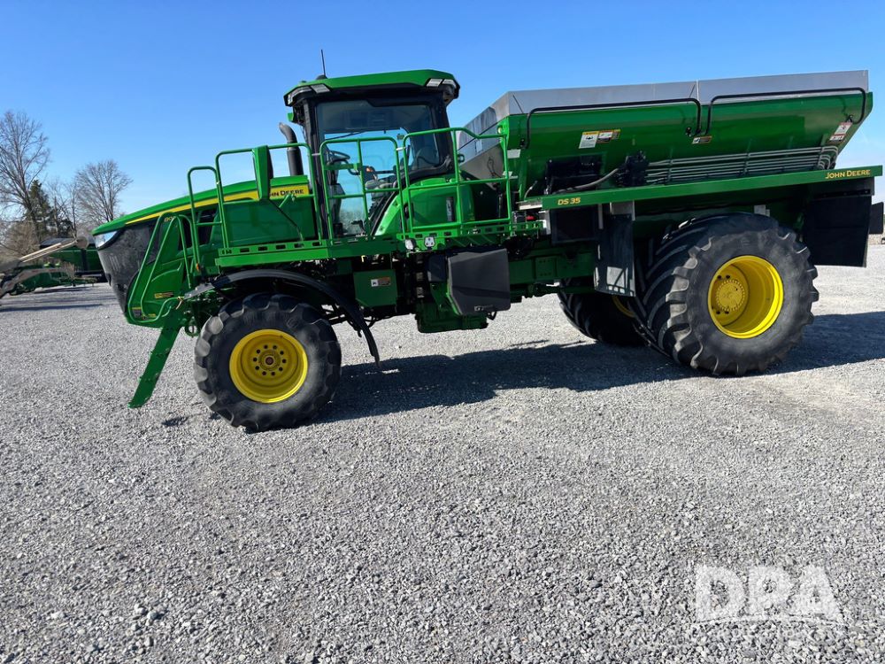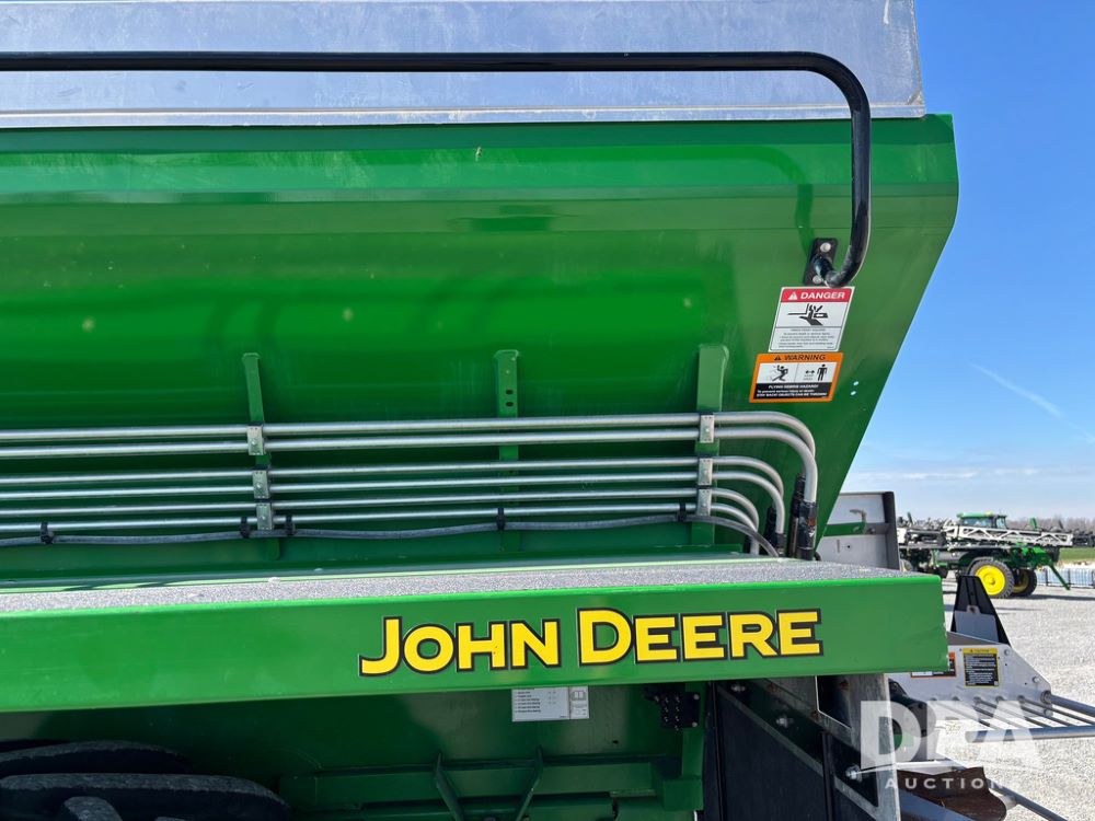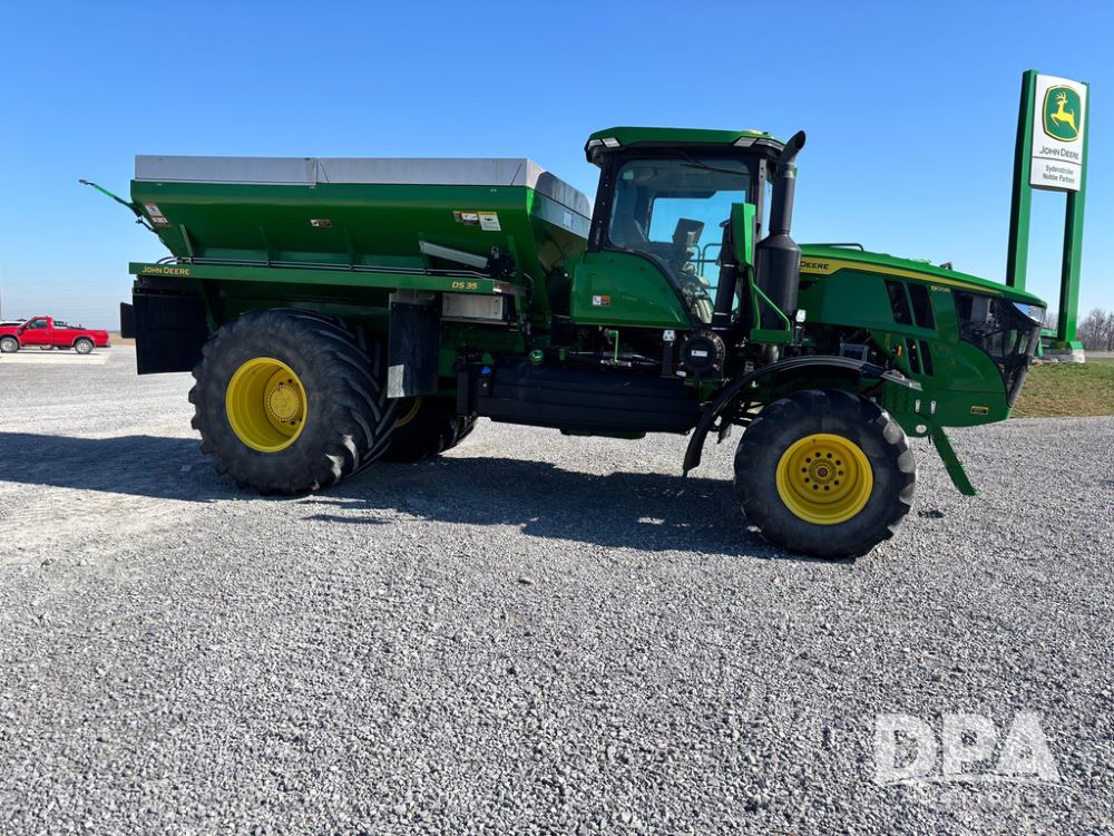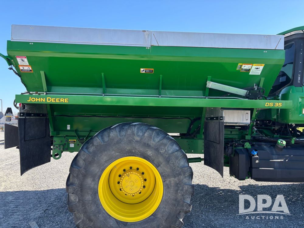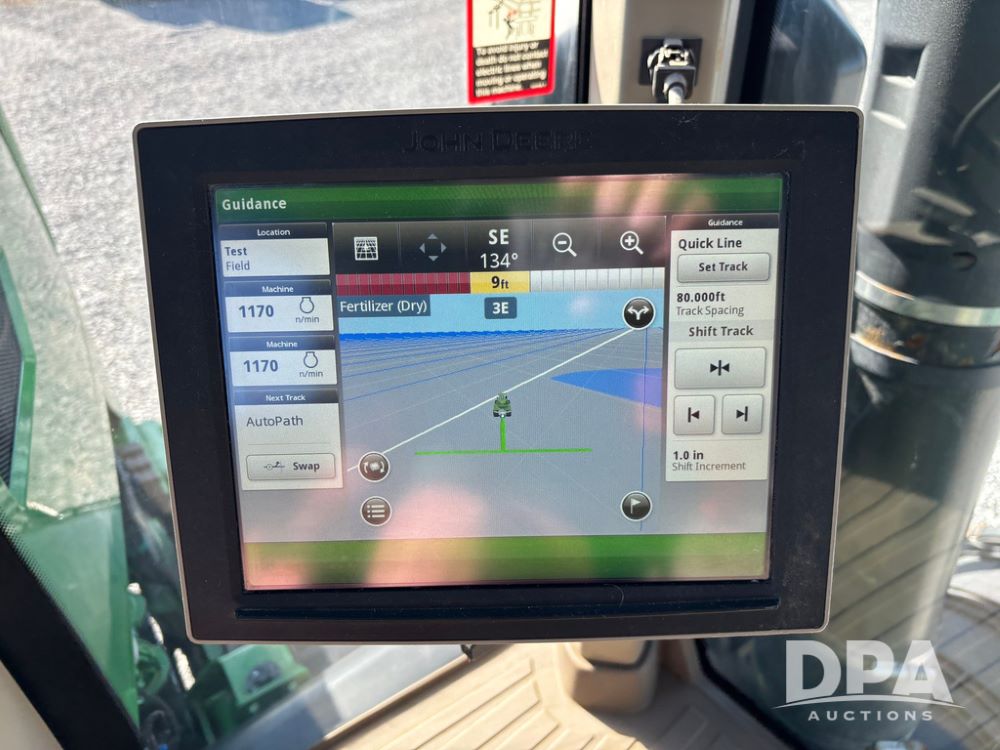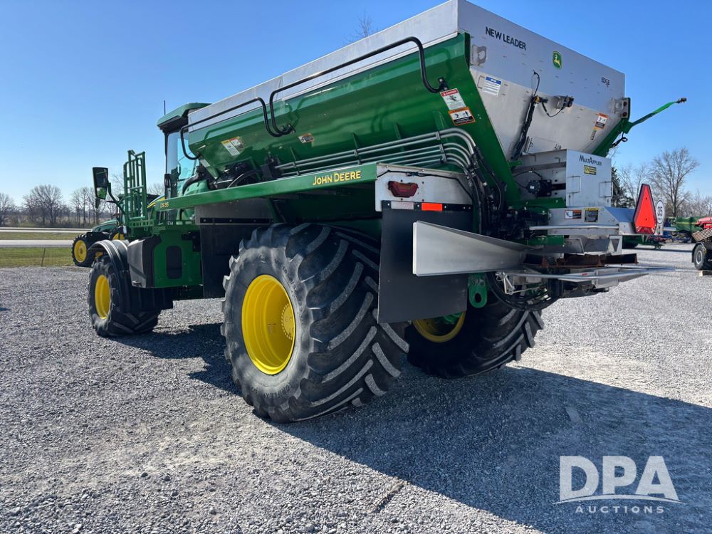 2023 John Deere 800R Dry Floater (GP12952), 9.0L - 6 cylinder turbo diesel engine - 365 HP (S/N RG6090U143706), 2 wheel drive, two speed IVT (infinitely variable transmission), 30 MPH field, 46 MPH transport, SIGNATURE EDITION, Command View III plus premium cab, ultimate comfort & convenience package, HVAC, Cat 1 cab filtration, auto temp control, cruise control, active seat II air suspension seat, folding buddy seat, premium Am/Fm radio, refrigerator, New Leader DS35-NL4500 G4.5 EDGE, 409 painted steel MultApplier dry box (AKK35814 - 14', S/N 1049055), 356 cubic feet capacity, #4 belt over chain product delivery, 11" feed gate, 8.5' x 14' hopper, 7' MultApplier 304 stainless insert (S/N 1049057), left & right Edge boundary control of dual 24" spinners, New Leader dry rate controller, electric oiler, includes L4500G4 stainless steel end gate to convert back to single product application, 750/50R26 front tires, 1050/50R32 rear tires, Command Arm integrated 10" JD Gen4 4600 display, Premium 3.0 activation (Auto Trac, Section Control, RowSense & In-Field Data Sharing Activations), JDLink MTG, ultimate visibility LED field lighting upgrade, rear view camera, LED beacon lights, 4 wheel leaf spring suspension, front rear hydraulic power steering, Integrated SF7000 global position receiver, shows 529 hours.