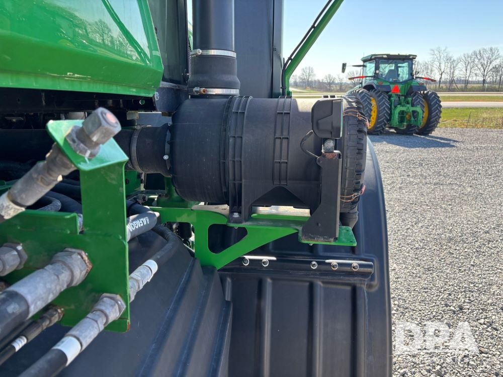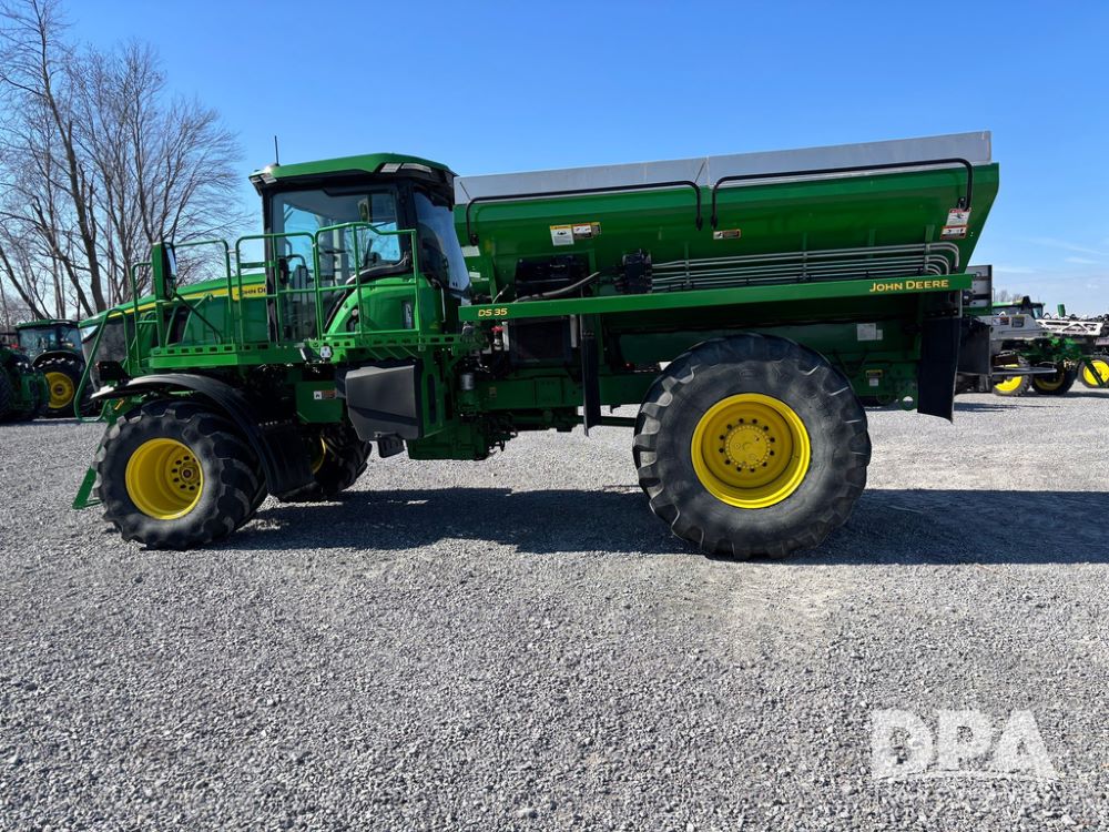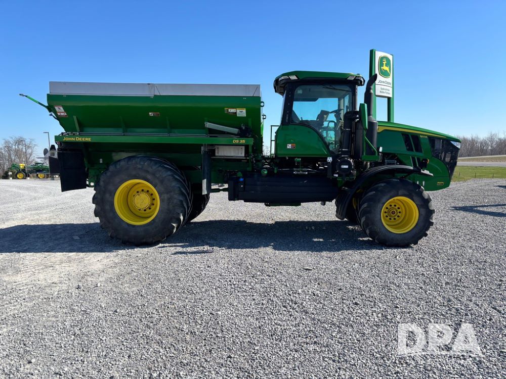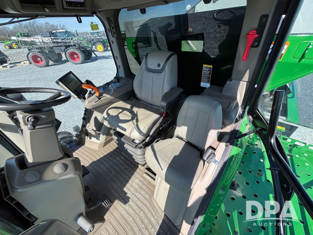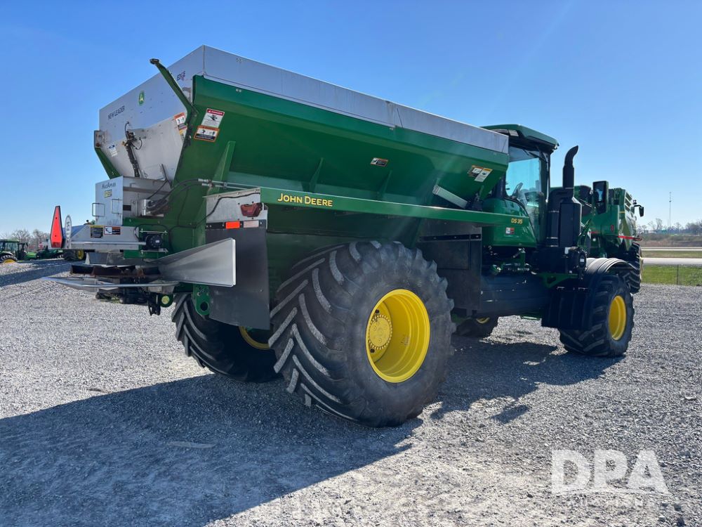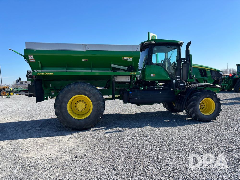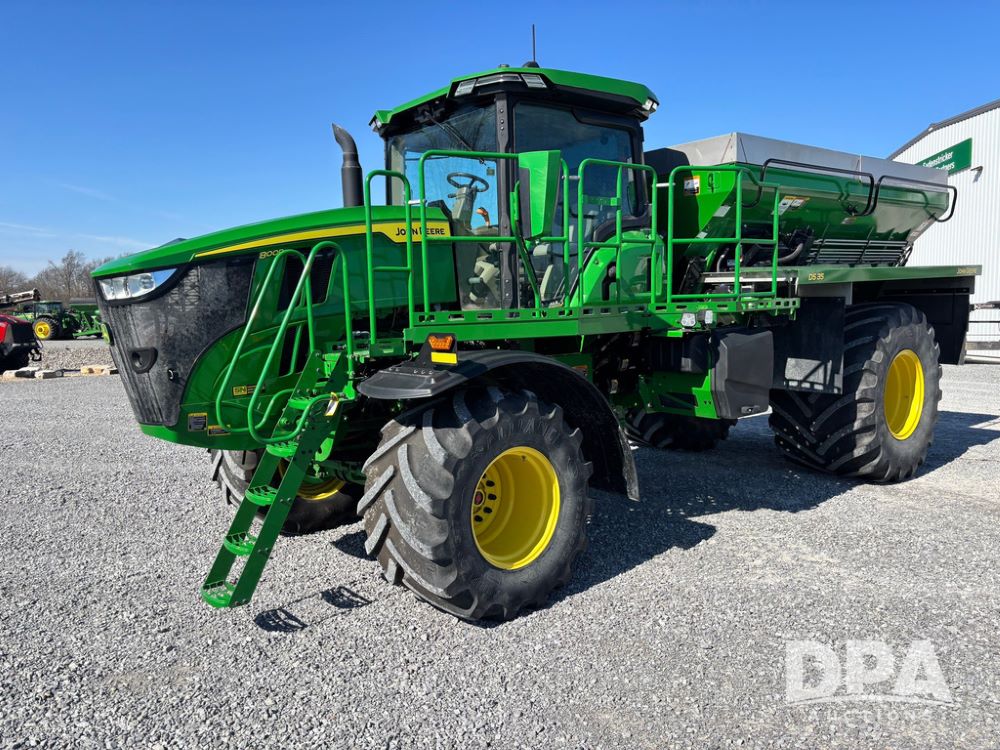 2023 John Deere 800R Dry Floater (GP12952), 9.0L - 6 cylinder turbo diesel engine - 365 HP (S/N RG6090U143706), 2 wheel drive, two speed IVT (infinitely variable transmission), 30 MPH field, 46 MPH transport, SIGNATURE EDITION, Command View III plus premium cab, ultimate comfort & convenience package, HVAC, Cat 1 cab filtration, auto temp control, cruise control, active seat II air suspension seat, folding buddy seat, premium Am/Fm radio, refrigerator, New Leader DS35-NL4500 G4.5 EDGE, 409 painted steel MultApplier dry box (AKK35814 - 14', S/N 1049055), 356 cubic feet capacity, #4 belt over chain product delivery, 11" feed gate, 8.5' x 14' hopper, 7' MultApplier 304 stainless insert (S/N 1049057), left & right Edge boundary control of dual 24" spinners, New Leader dry rate controller, electric oiler, includes L4500G4 stainless steel end gate to convert back to single product application, 750/50R26 front tires, 1050/50R32 rear tires, Command Arm integrated 10" JD Gen4 4600 display, Premium 3.0 activation (Auto Trac, Section Control, RowSense & In-Field Data Sharing Activations), JDLink MTG, ultimate visibility LED field lighting upgrade, rear view camera, LED beacon lights, 4 wheel leaf spring suspension, front rear hydraulic power steering, Integrated SF7000 global position receiver, shows 529 hours.