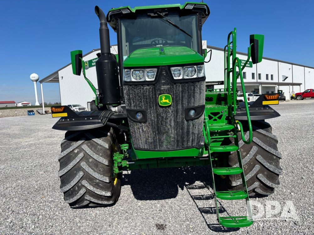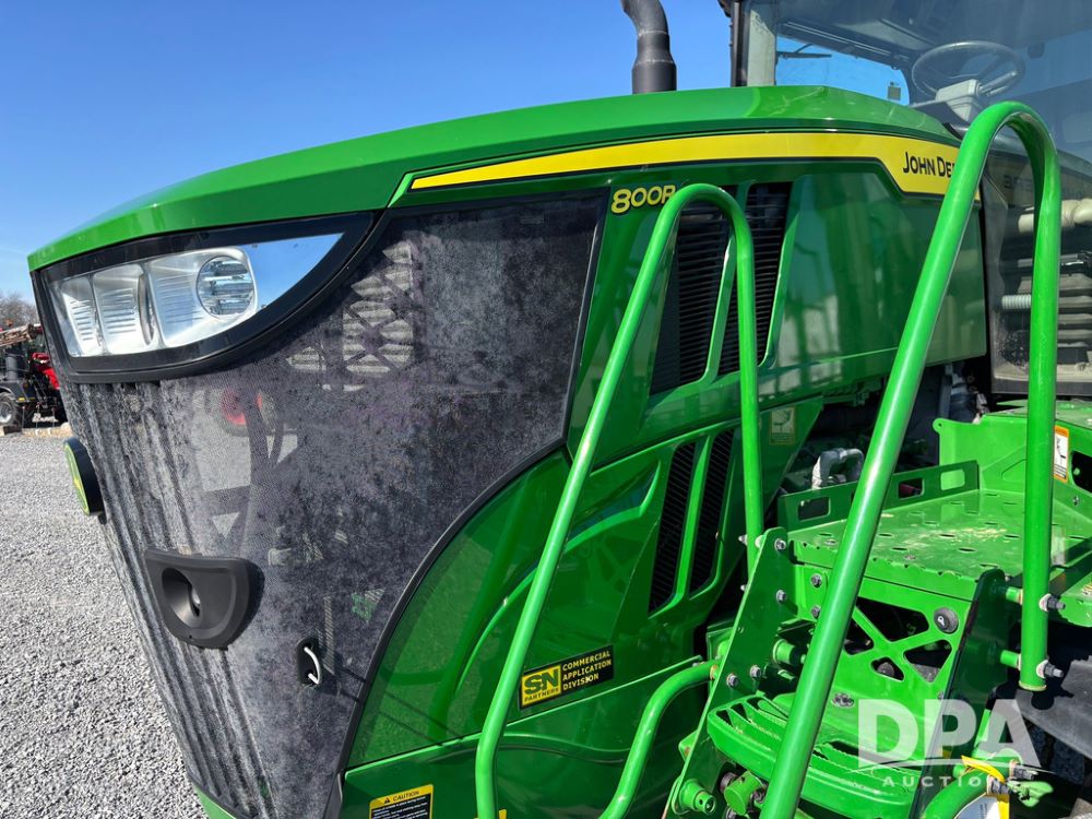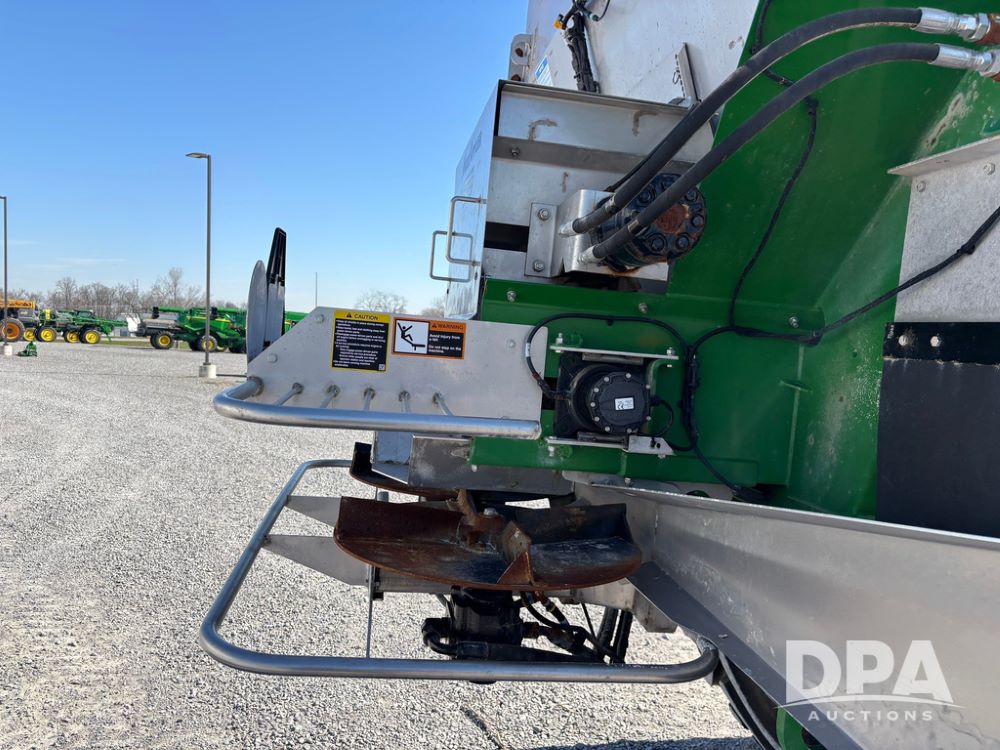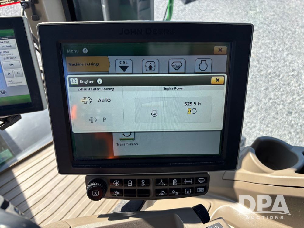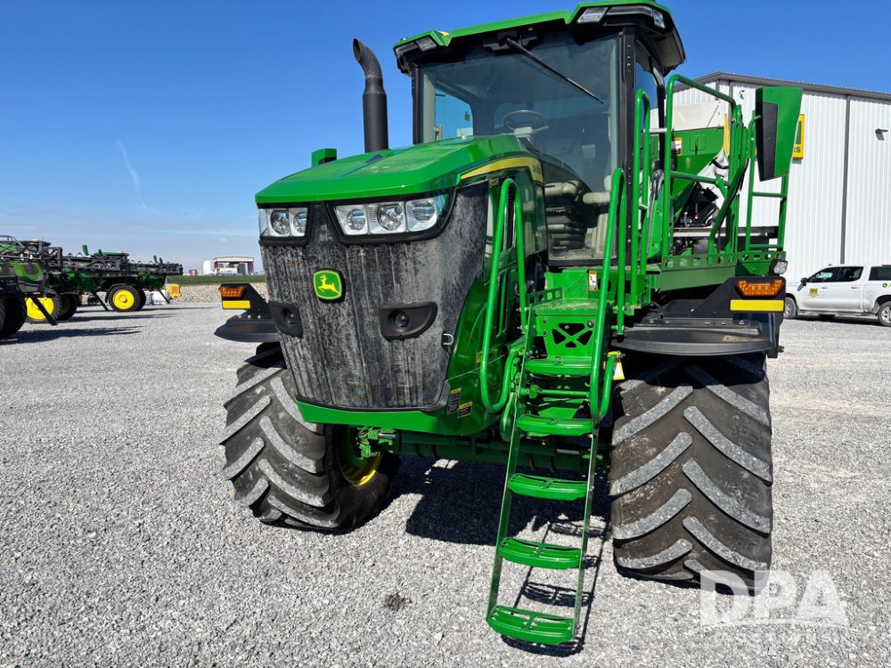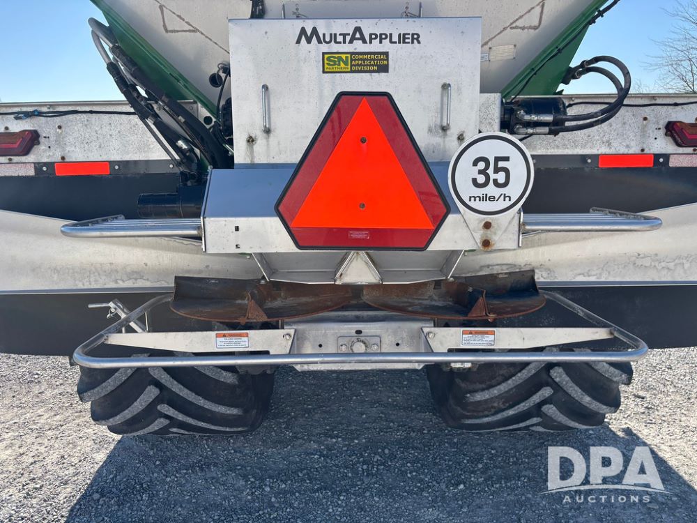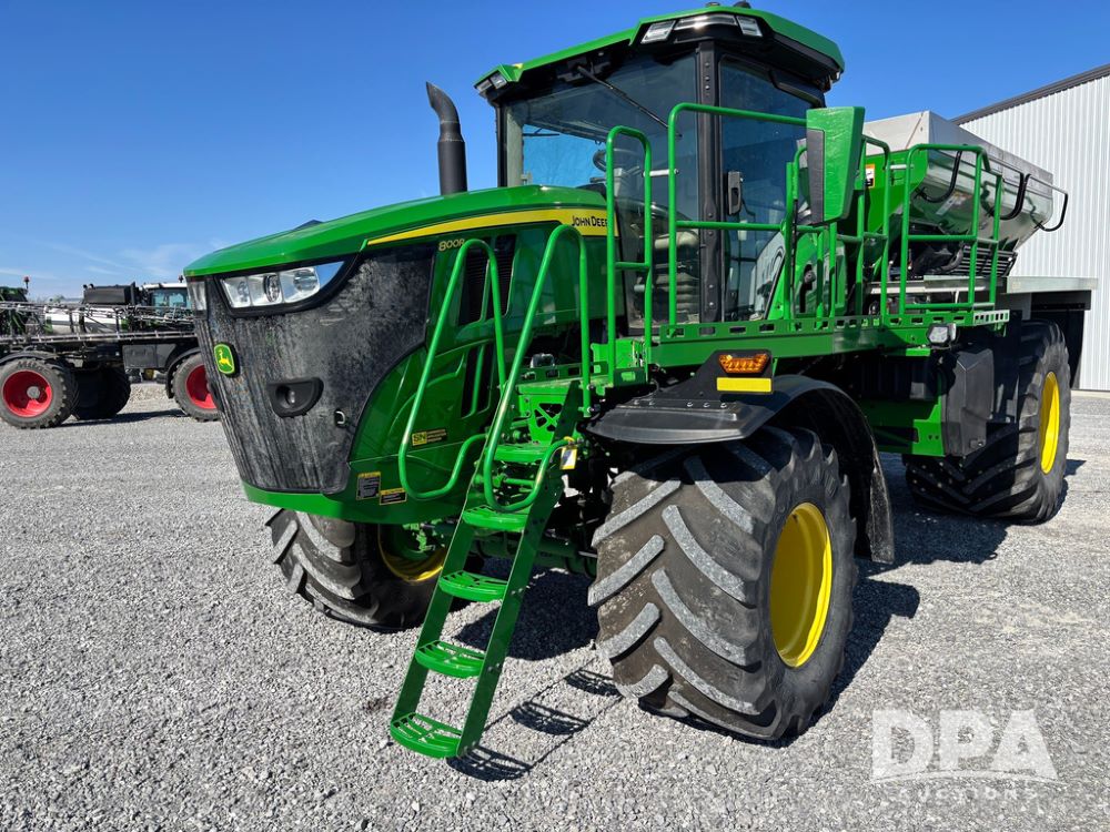 2023 John Deere 800R Dry Floater (GP12952), 9.0L - 6 cylinder turbo diesel engine - 365 HP (S/N RG6090U143706), 2 wheel drive, two speed IVT (infinitely variable transmission), 30 MPH field, 46 MPH transport, SIGNATURE EDITION, Command View III plus premium cab, ultimate comfort & convenience package, HVAC, Cat 1 cab filtration, auto temp control, cruise control, active seat II air suspension seat, folding buddy seat, premium Am/Fm radio, refrigerator, New Leader DS35-NL4500 G4.5 EDGE, 409 painted steel MultApplier dry box (AKK35814 - 14', S/N 1049055), 356 cubic feet capacity, #4 belt over chain product delivery, 11" feed gate, 8.5' x 14' hopper, 7' MultApplier 304 stainless insert (S/N 1049057), left & right Edge boundary control of dual 24" spinners, New Leader dry rate controller, electric oiler, includes L4500G4 stainless steel end gate to convert back to single product application, 750/50R26 front tires, 1050/50R32 rear tires, Command Arm integrated 10" JD Gen4 4600 display, Premium 3.0 activation (Auto Trac, Section Control, RowSense & In-Field Data Sharing Activations), JDLink MTG, ultimate visibility LED field lighting upgrade, rear view camera, LED beacon lights, 4 wheel leaf spring suspension, front rear hydraulic power steering, Integrated SF7000 global position receiver, shows 529 hours.