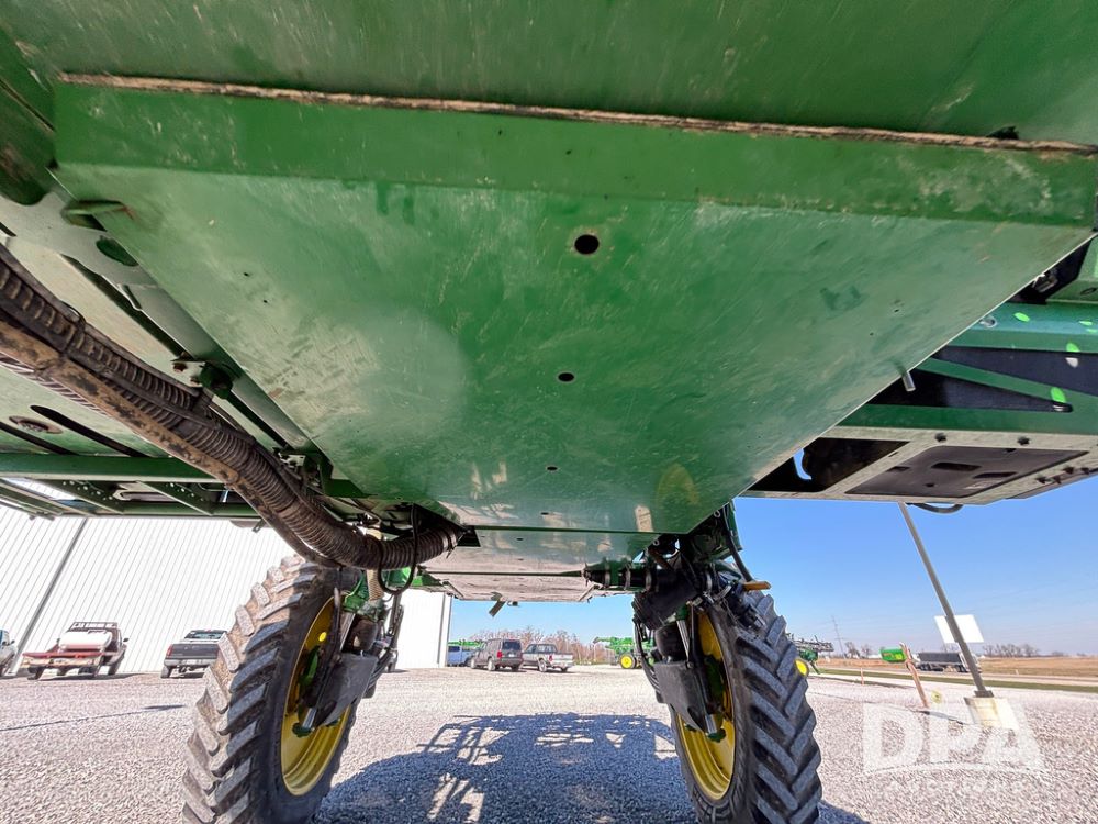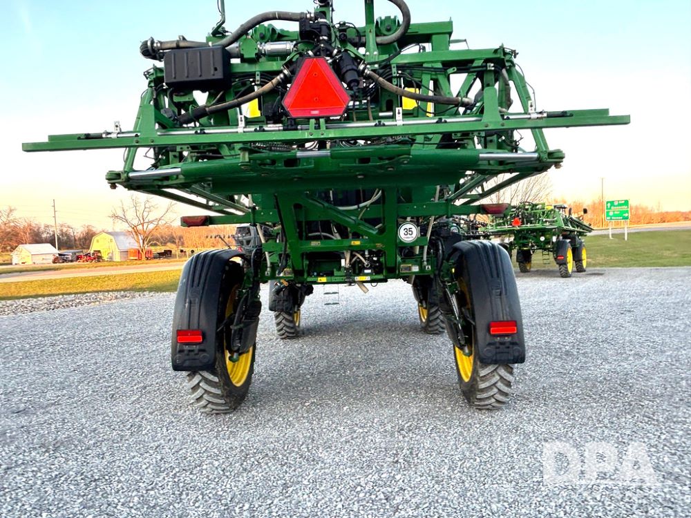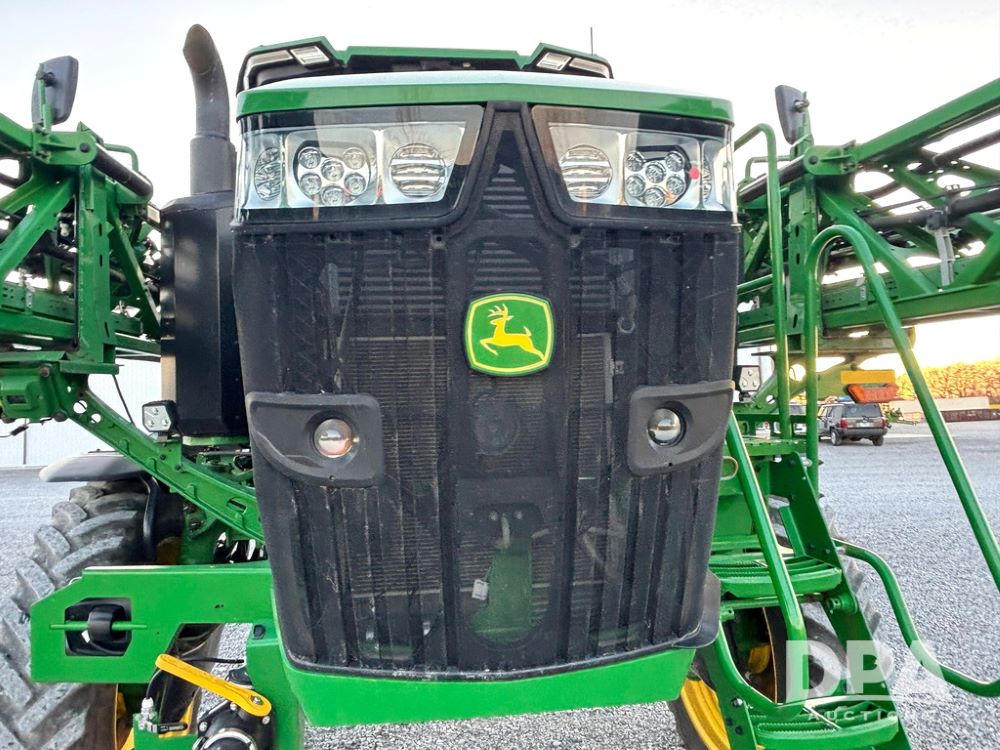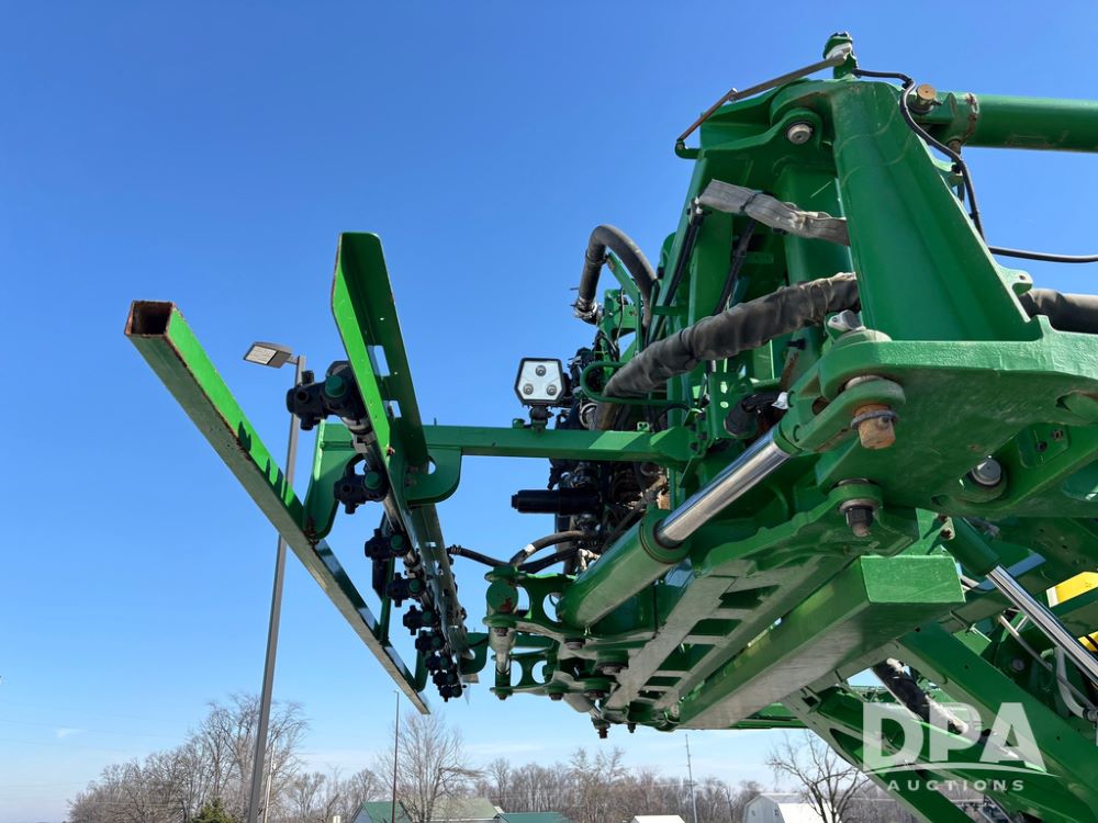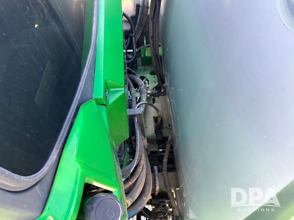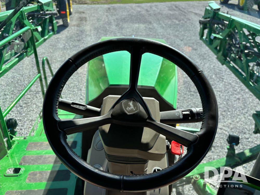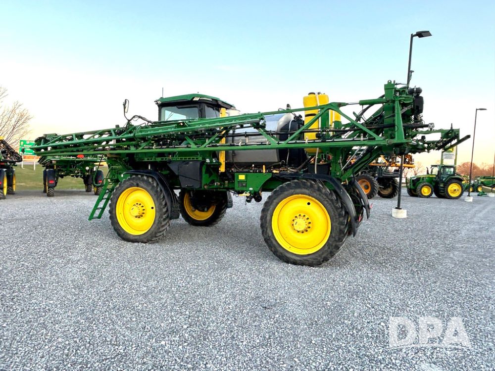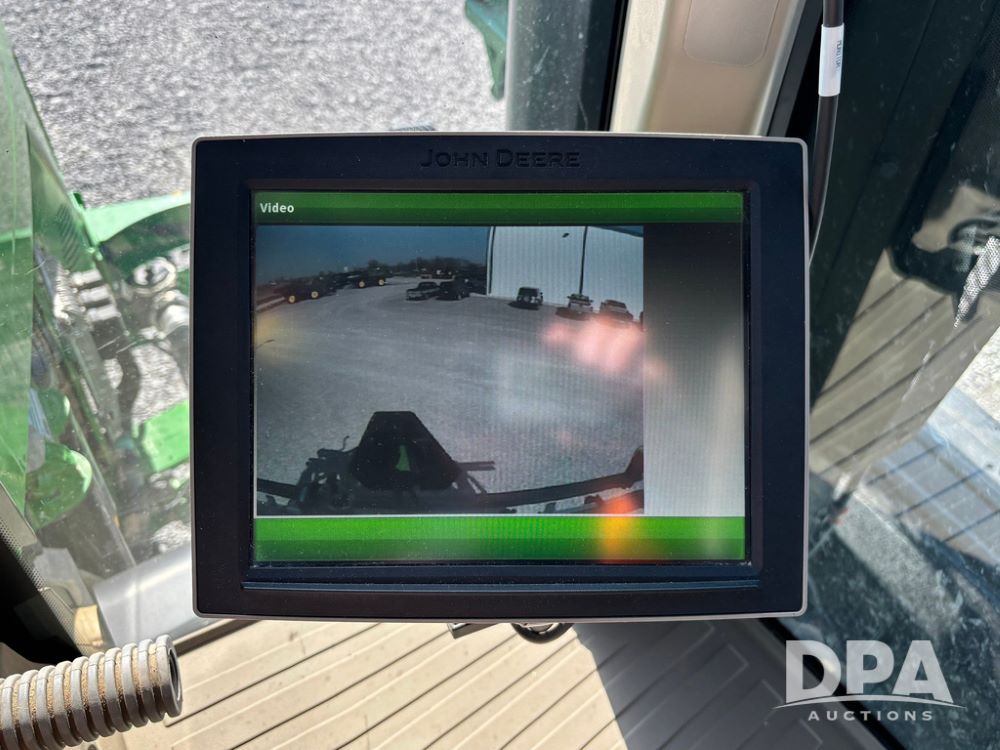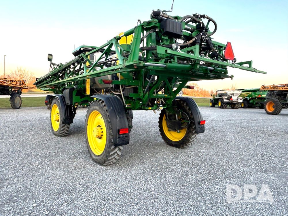 2023 John Deere 410R Sprayer (GP12953), full time 4 wheel drive with traction control, 9.0L - 6 cylinder turbo diesel engine - 310 HP (S/N RG6090U132442), dual range hydrostatic drive (25 MPH field, 35 MPH transport), JDLink MTG, CommandView 4 cab, HVAC, ultimate comfort and convenience package, auto temp control, Active II leather air suspension seat, leather buddy seat, premium touch screen Am/Fm radio, refrigerator, 1,000 gallon stainless steel liquid system, 3" left side quick fill and front fill, 120' steel boom, 1" stainless plumbing, 15" on-center spacing, (97) five position nozzle bodies, (11) section boom control valves, automatic solution control, fence row nozzles left & right, single drop foam markers, 3"x2" high flow solution pump (15 to 225 GPM), boom air purge, 5 sensor auto boom leveling, underframe crop shields, direct chemical injection system with (2) 50 gallon tanks & (1) high volume pump, hydraulic tread spacing adjustment (120-160"), auto air spring chassis leveling, on board air compressor, 380/90R46 tires, Cat 1 air filtration system, Gen 4, 4600 Command Center Gen4 GreenStar 10" color display and extended monitor, Command Center Premium 3.0 activation auto trac, section control, RowSense, Data Sync & Data Share, mechanical RowSense sensors and vision camera, premium visibility package, LED field lighting, LED beacon lights, rear view camera, Integrated SF7000 SF-1 global position receiver, shows 1,655 hours.