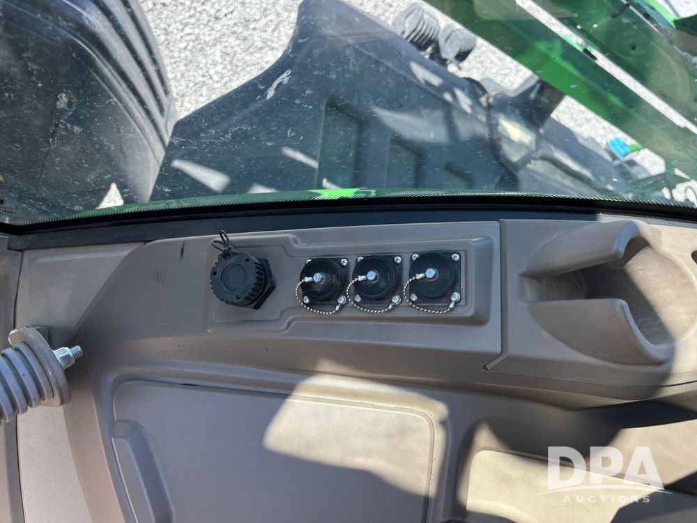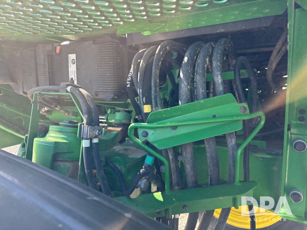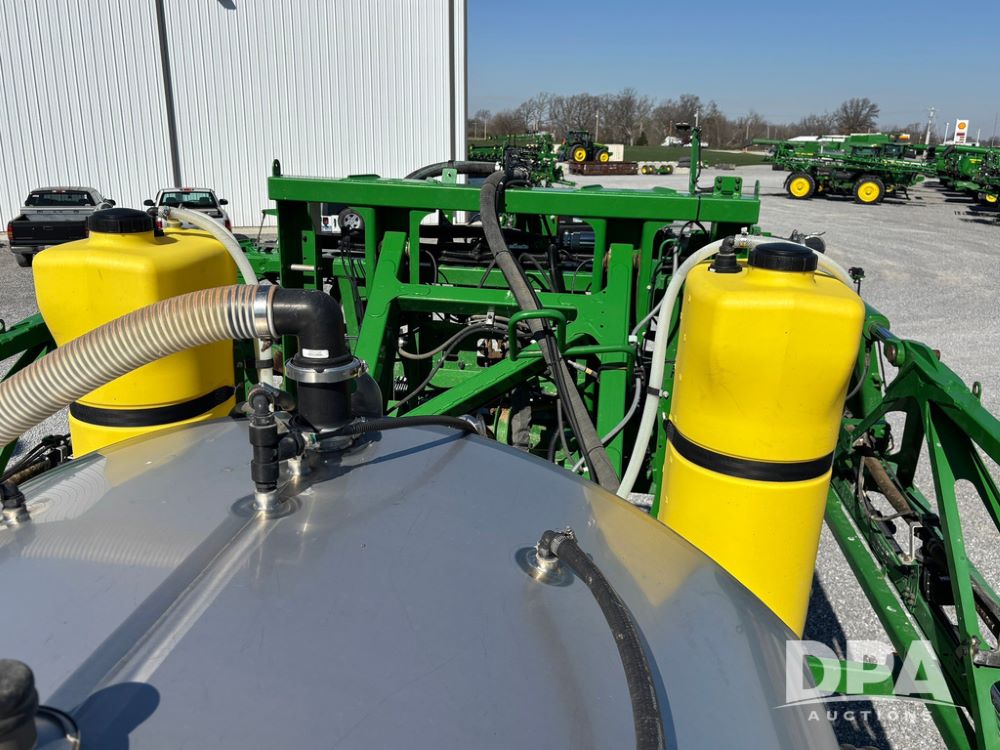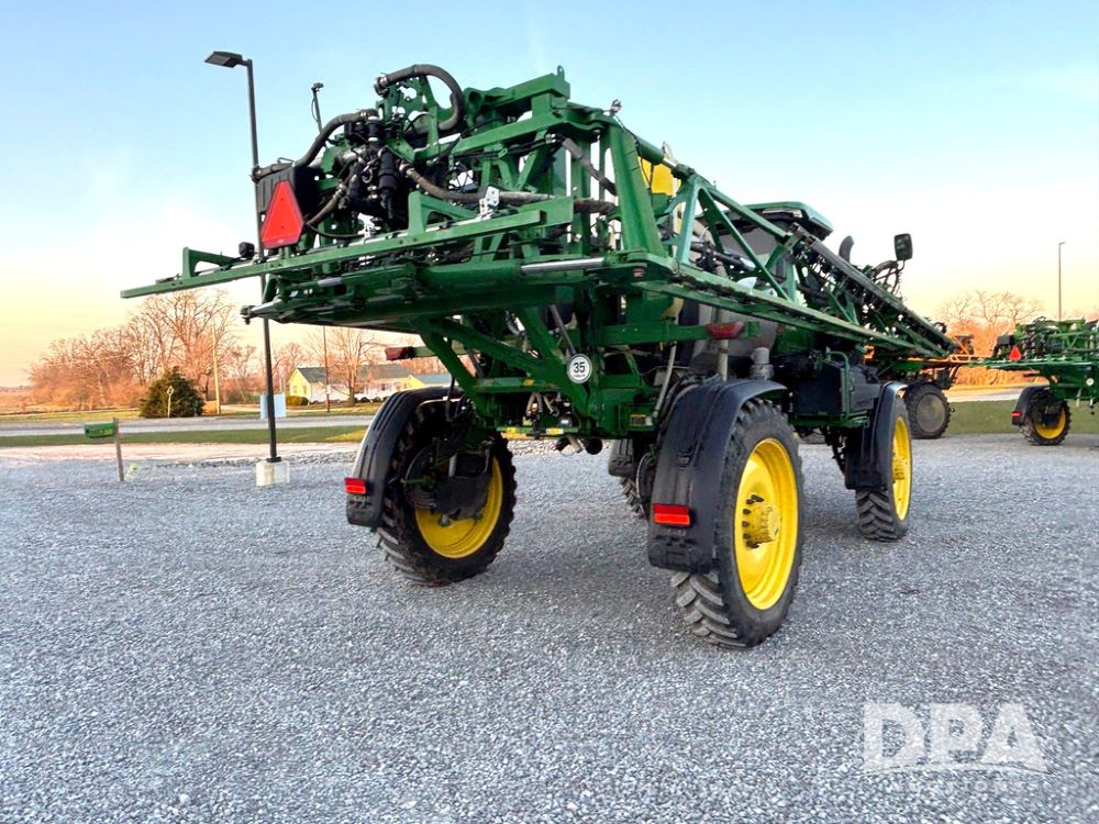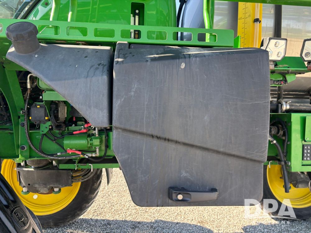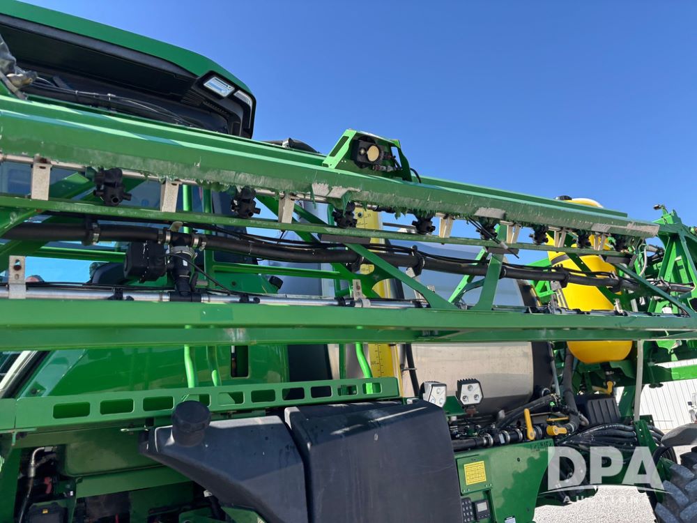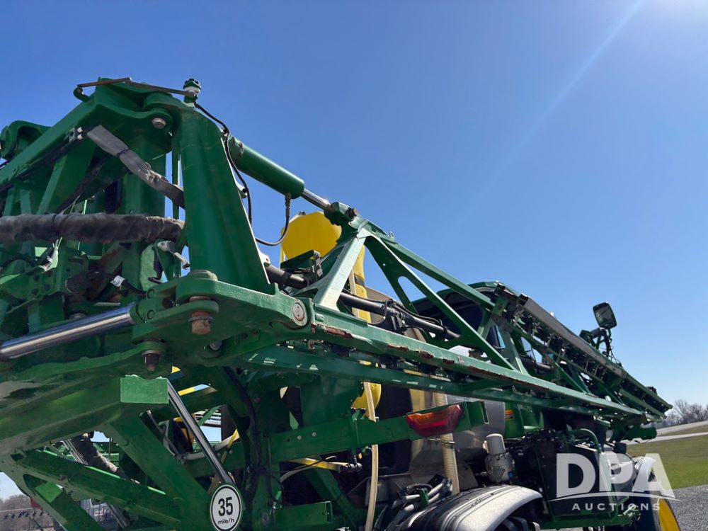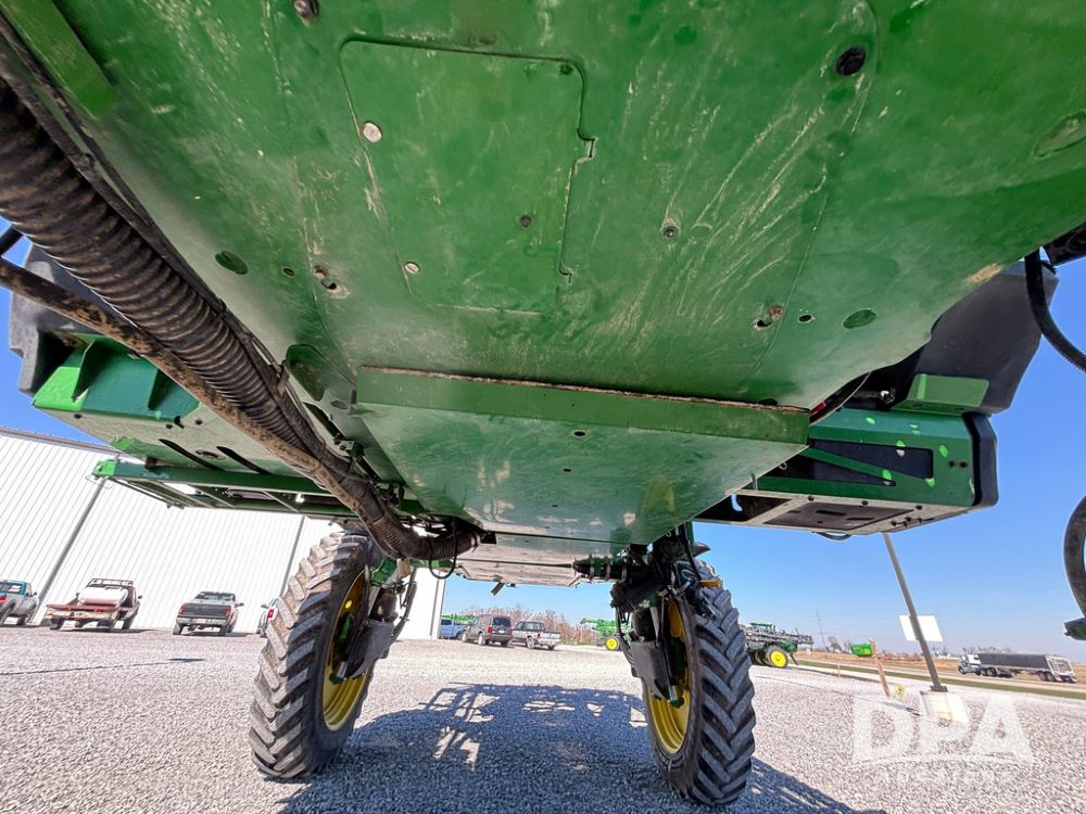 2023 John Deere 410R Sprayer (GP12953), full time 4 wheel drive with traction control, 9.0L - 6 cylinder turbo diesel engine - 310 HP (S/N RG6090U132442), dual range hydrostatic drive (25 MPH field, 35 MPH transport), JDLink MTG, CommandView 4 cab, HVAC, ultimate comfort and convenience package, auto temp control, Active II leather air suspension seat, leather buddy seat, premium touch screen Am/Fm radio, refrigerator, 1,000 gallon stainless steel liquid system, 3" left side quick fill and front fill, 120' steel boom, 1" stainless plumbing, 15" on-center spacing, (97) five position nozzle bodies, (11) section boom control valves, automatic solution control, fence row nozzles left & right, single drop foam markers, 3"x2" high flow solution pump (15 to 225 GPM), boom air purge, 5 sensor auto boom leveling, underframe crop shields, direct chemical injection system with (2) 50 gallon tanks & (1) high volume pump, hydraulic tread spacing adjustment (120-160"), auto air spring chassis leveling, on board air compressor, 380/90R46 tires, Cat 1 air filtration system, Gen 4, 4600 Command Center Gen4 GreenStar 10" color display and extended monitor, Command Center Premium 3.0 activation auto trac, section control, RowSense, Data Sync & Data Share, mechanical RowSense sensors and vision camera, premium visibility package, LED field lighting, LED beacon lights, rear view camera, Integrated SF7000 SF-1 global position receiver, shows 1,655 hours.