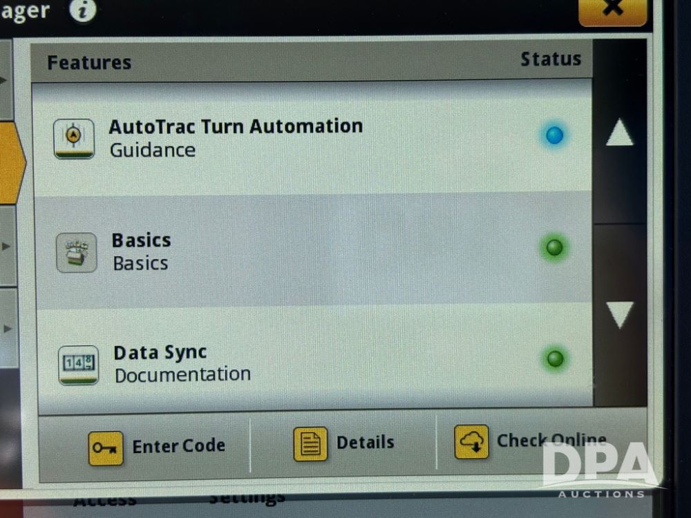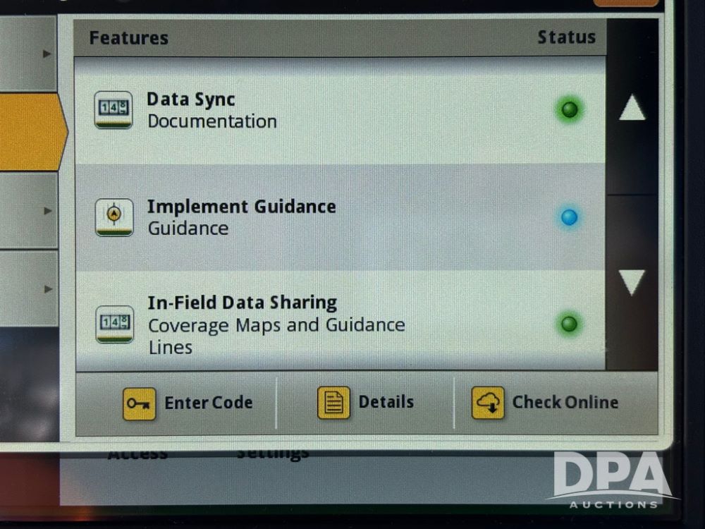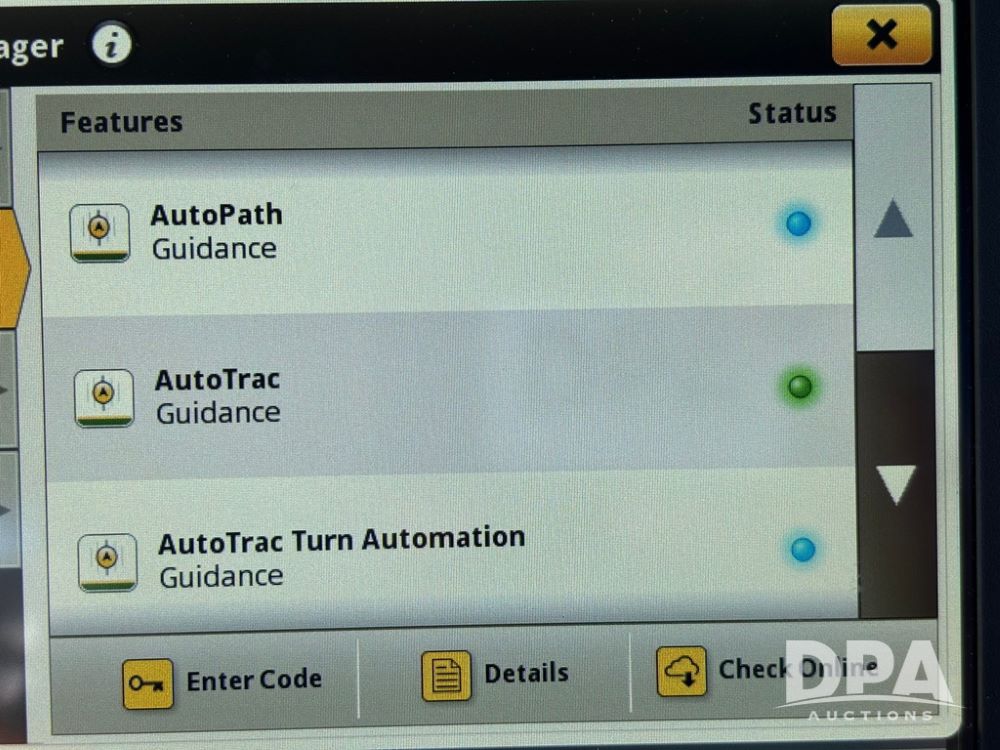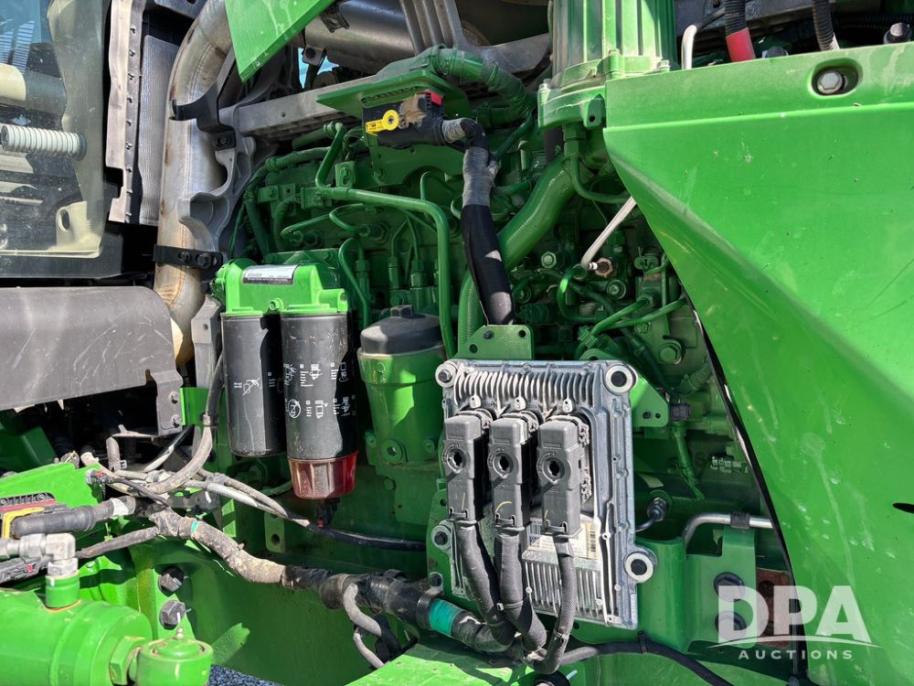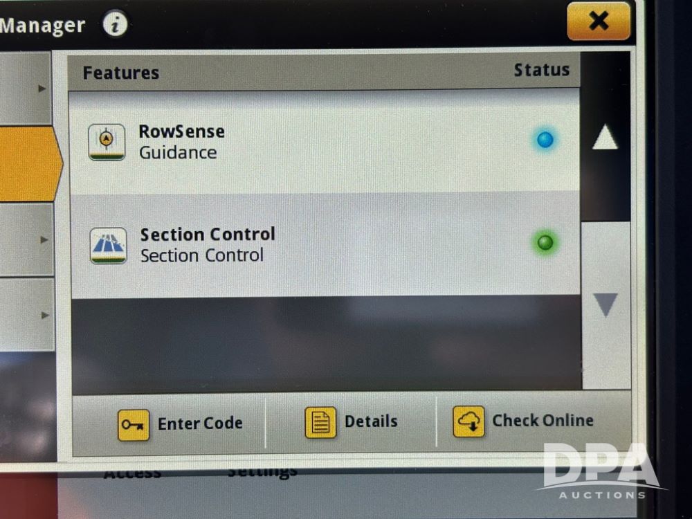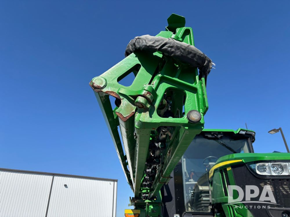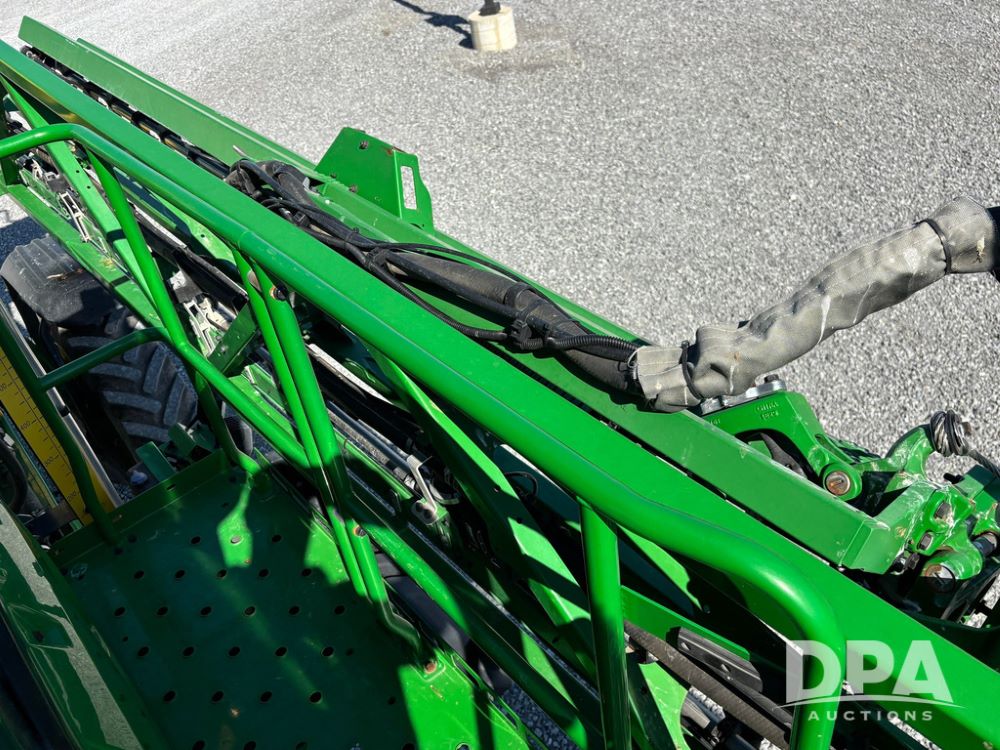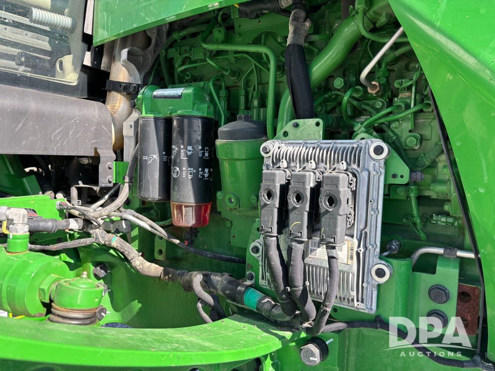 2023 John Deere 410R Sprayer (GP12953), full time 4 wheel drive with traction control, 9.0L - 6 cylinder turbo diesel engine - 310 HP (S/N RG6090U132442), dual range hydrostatic drive (25 MPH field, 35 MPH transport), JDLink MTG, CommandView 4 cab, HVAC, ultimate comfort and convenience package, auto temp control, Active II leather air suspension seat, leather buddy seat, premium touch screen Am/Fm radio, refrigerator, 1,000 gallon stainless steel liquid system, 3" left side quick fill and front fill, 120' steel boom, 1" stainless plumbing, 15" on-center spacing, (97) five position nozzle bodies, (11) section boom control valves, automatic solution control, fence row nozzles left & right, single drop foam markers, 3"x2" high flow solution pump (15 to 225 GPM), boom air purge, 5 sensor auto boom leveling, underframe crop shields, direct chemical injection system with (2) 50 gallon tanks & (1) high volume pump, hydraulic tread spacing adjustment (120-160"), auto air spring chassis leveling, on board air compressor, 380/90R46 tires, Cat 1 air filtration system, Gen 4, 4600 Command Center Gen4 GreenStar 10" color display and extended monitor, Command Center Premium 3.0 activation auto trac, section control, RowSense, Data Sync & Data Share, mechanical RowSense sensors and vision camera, premium visibility package, LED field lighting, LED beacon lights, rear view camera, Integrated SF7000 SF-1 global position receiver, shows 1,655 hours.