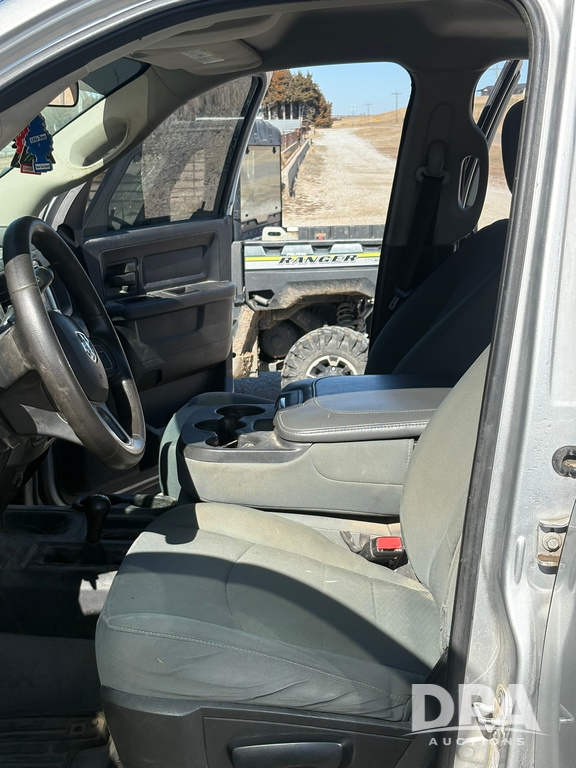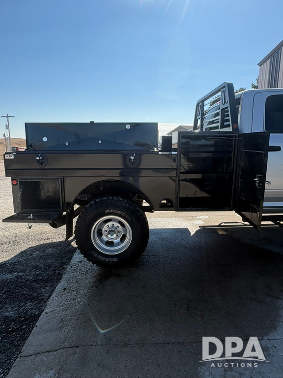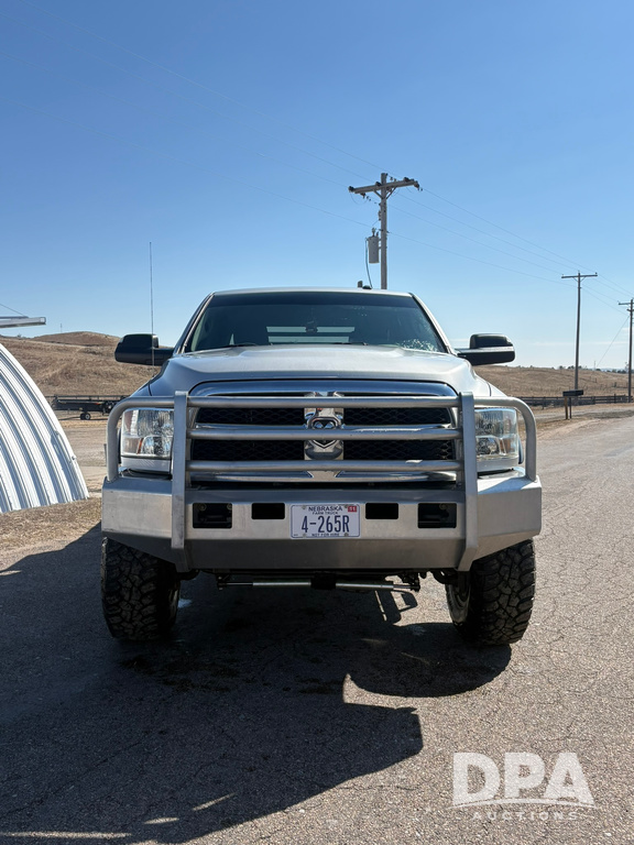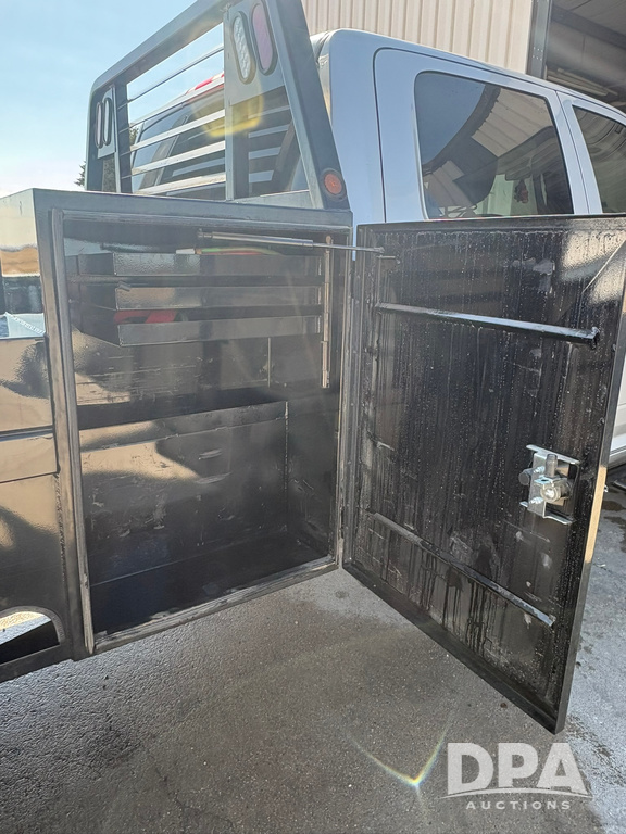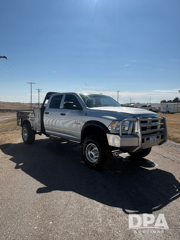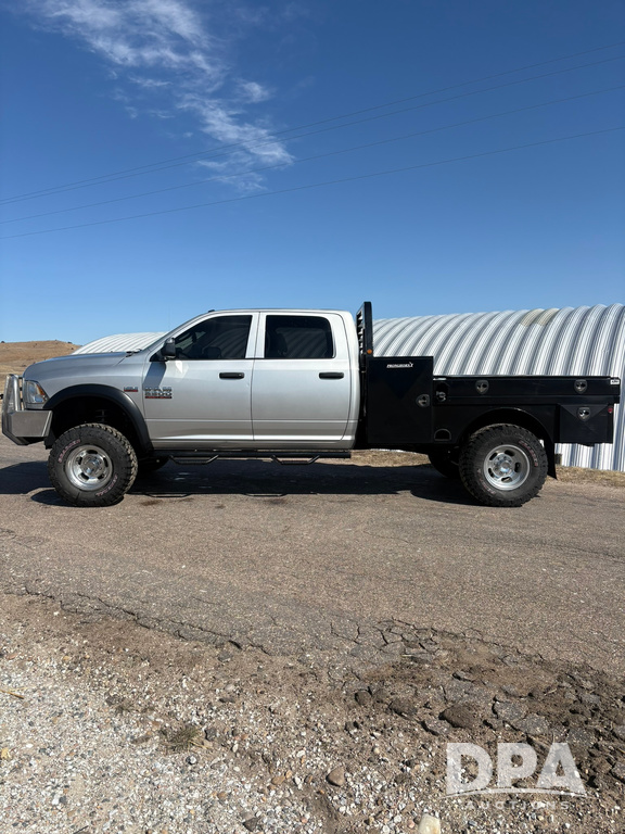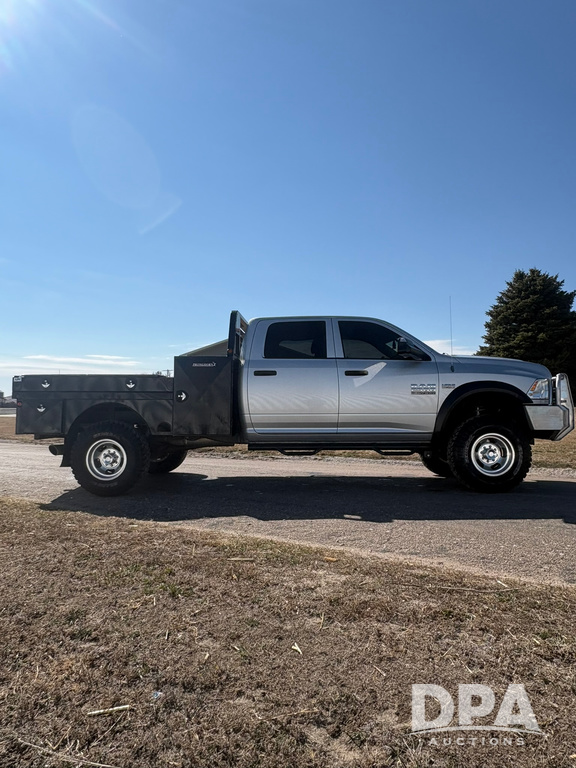 2013 Dodge Ram 2500 Flatbed Pickup (LT1541), V8 5.7 Hemi, automatic transmission, 4WD, heat, AC, auto windows, auto door locks, manual seats, Am/FM radio, 8ft Pronghorn service box, Truck Defender aluminum grill guard, rough country 5 inch lift, Borla exhaust system, after market rims and tires, after market running boards, 35-12.5-R17 tires, shows 93,391 miles.