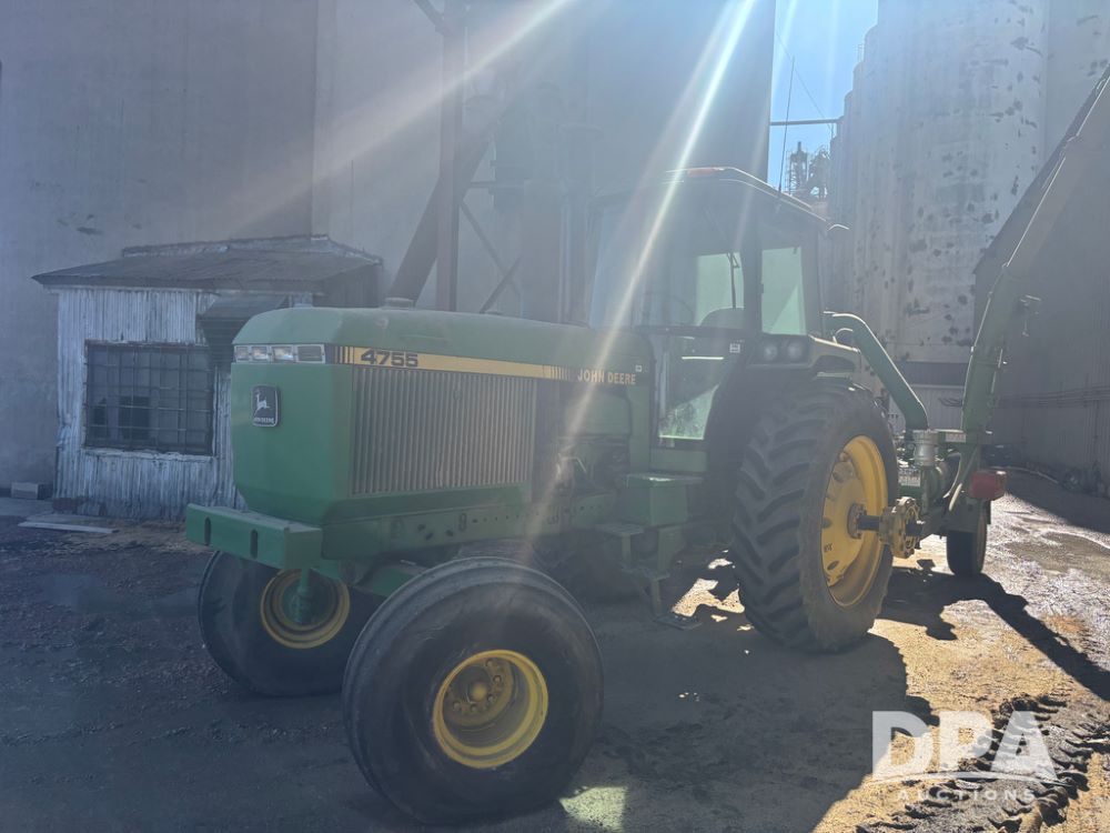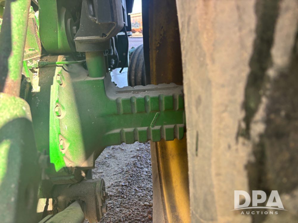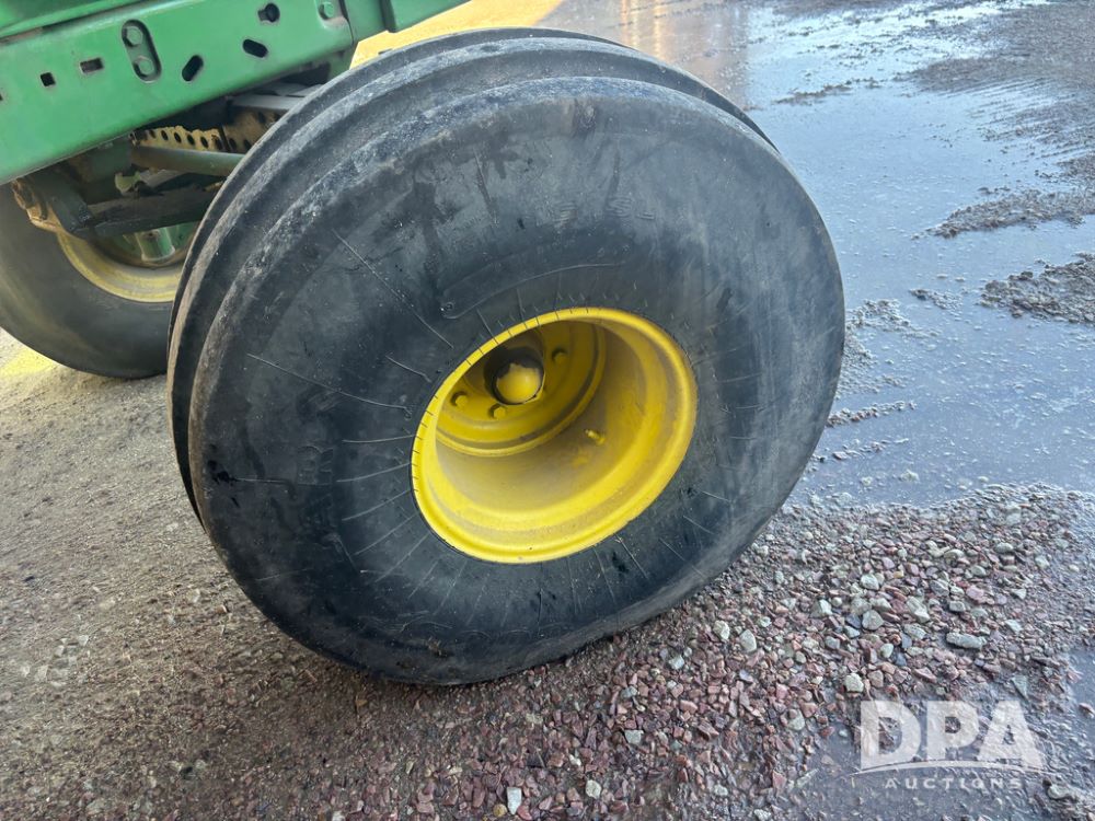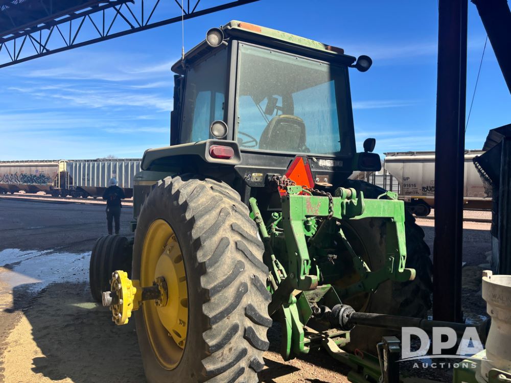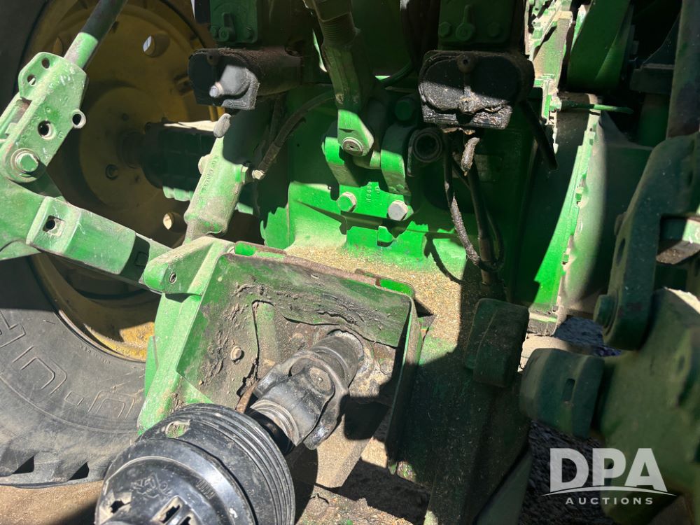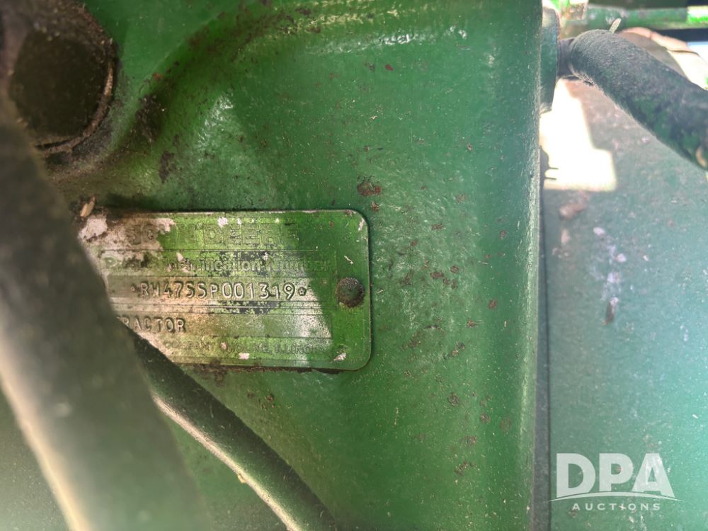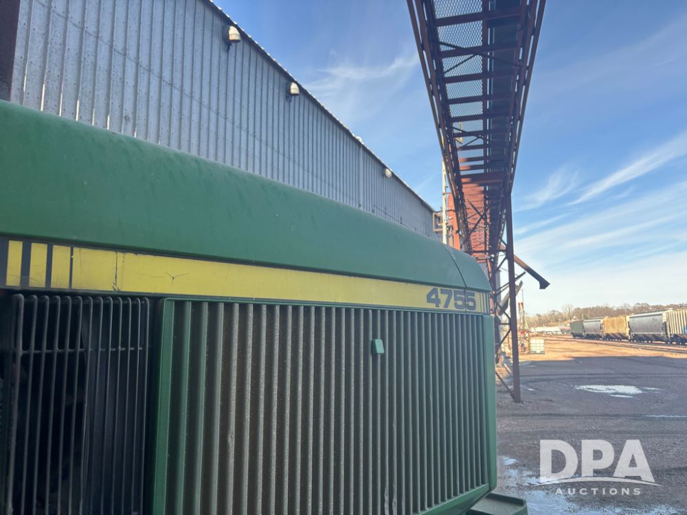 John Deere 4755 Tractor (DR13569), John Deere diesel engine, power shift transmission, rear 3 point quick hitch, auxiliary hydraulic outlets, 1,000 PTO, wide front has 16.5L-16.1 tires, 18.4R42 rear tires, and dual hubs.