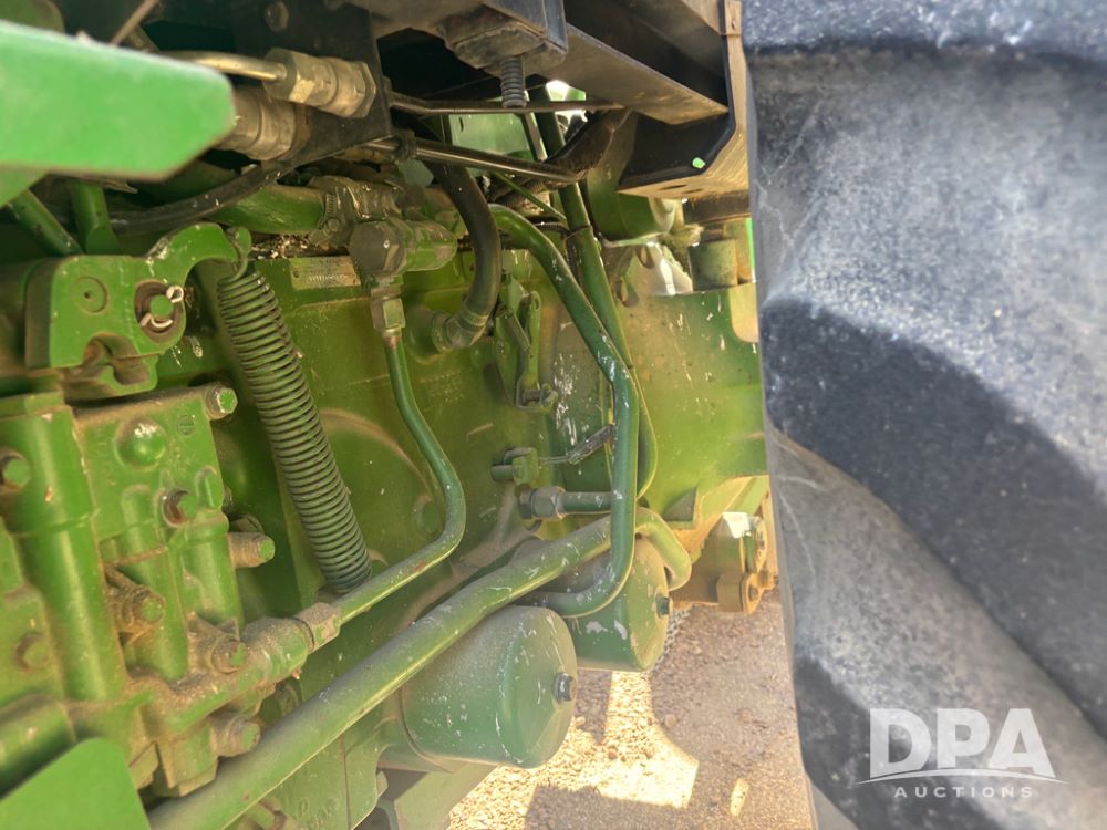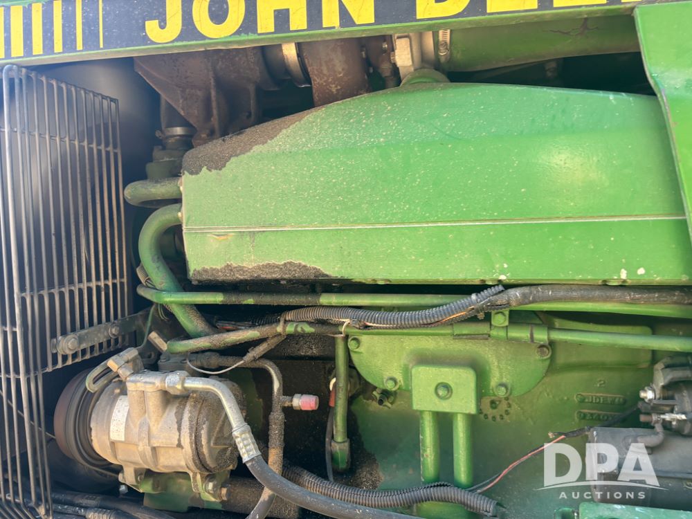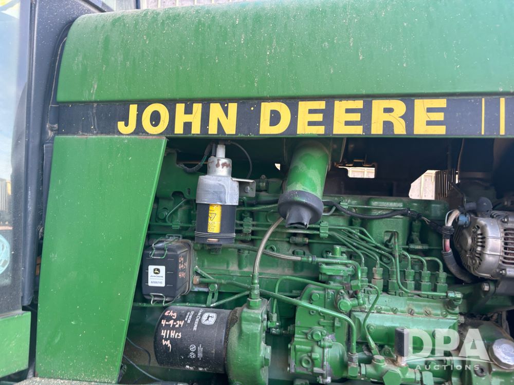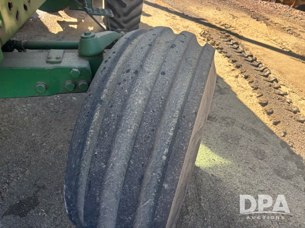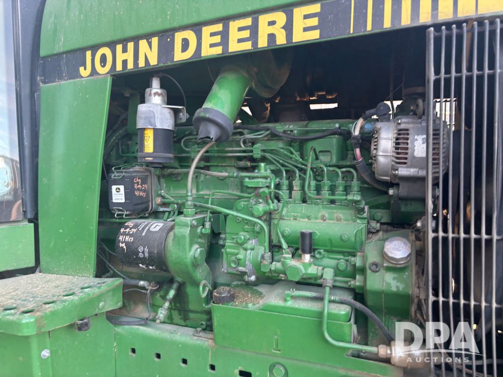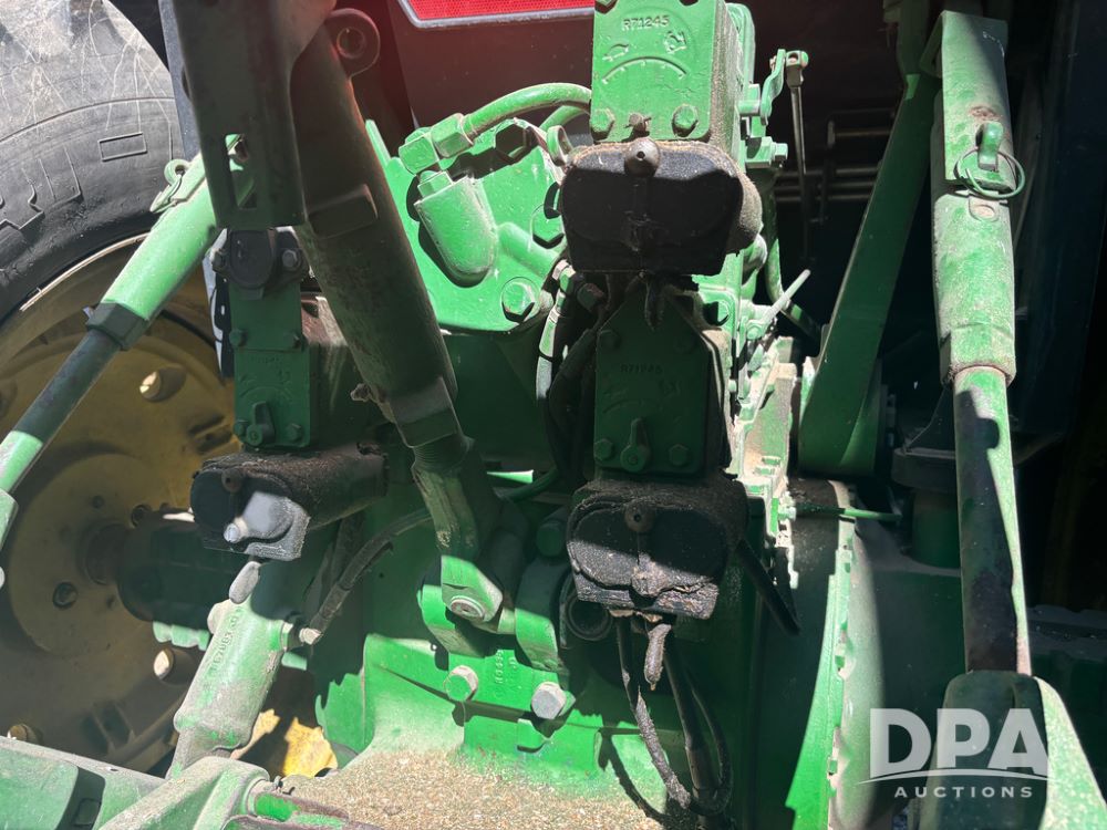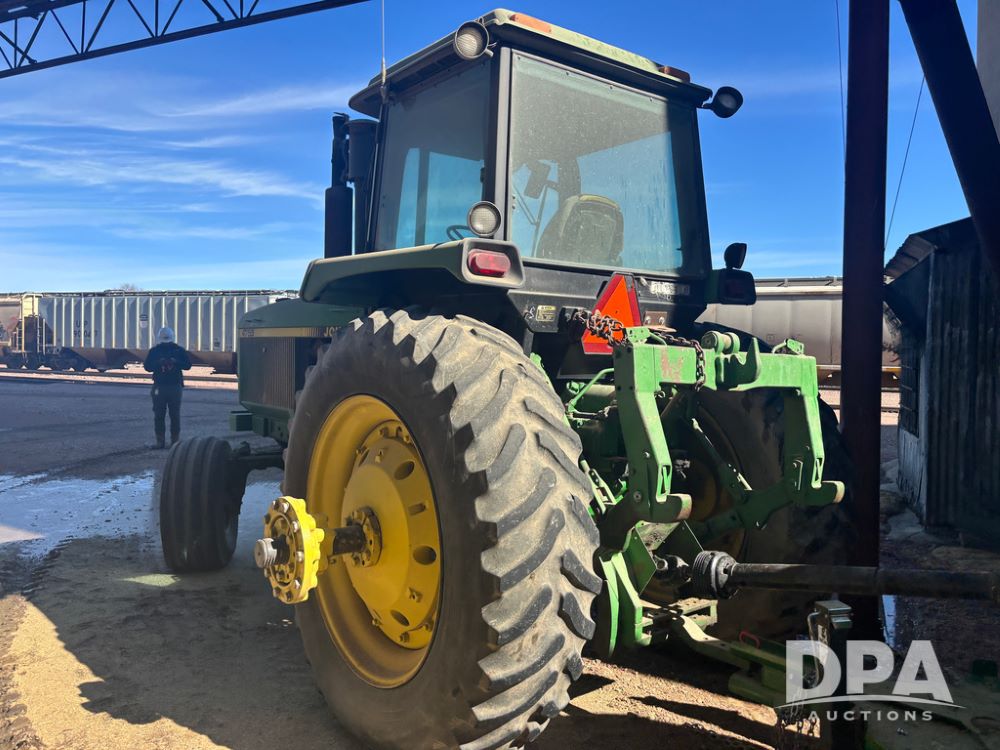 John Deere 4755 Tractor (DR13569), John Deere diesel engine, power shift transmission, rear 3 point quick hitch, auxiliary hydraulic outlets, 1,000 PTO, wide front has 16.5L-16.1 tires, 18.4R42 rear tires, and dual hubs.