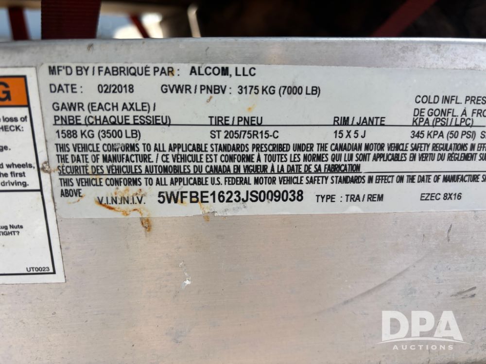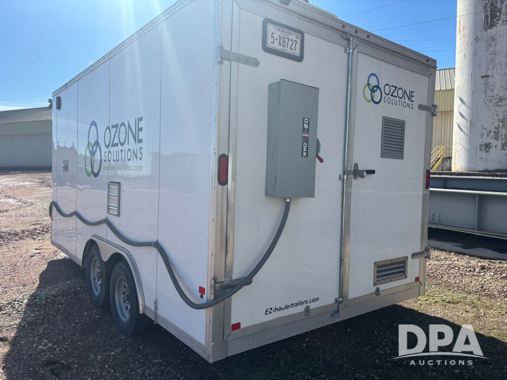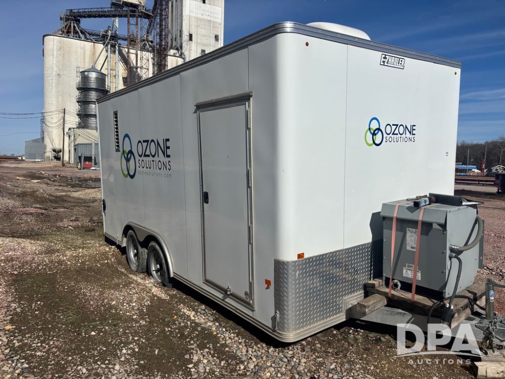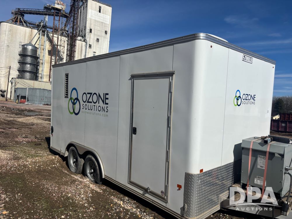 2018 Ozone Solutions Trailer (DR13570), 16' enclosed trailer, air quality controls are interior Ingersol/Atlas Capco compressor, control panel, outside Hammond 480V transformer, curb side door, rear cargo doors, tandem axle, 205/75R15 tires, 2 are low on air.