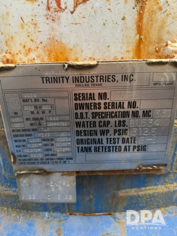 1961 Trinity Tanker Trailer (NJP539), 38ft length, water capacity 81,634 Ibs, design working pressure 312.5 PSIG.