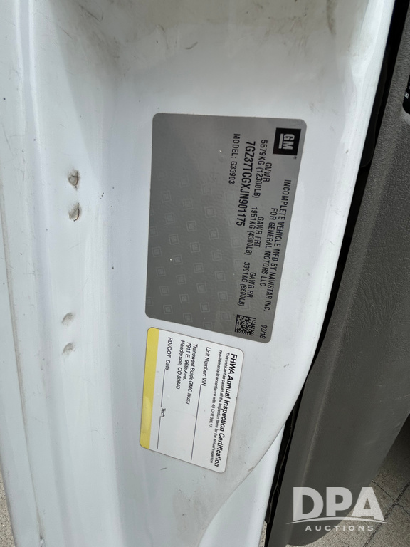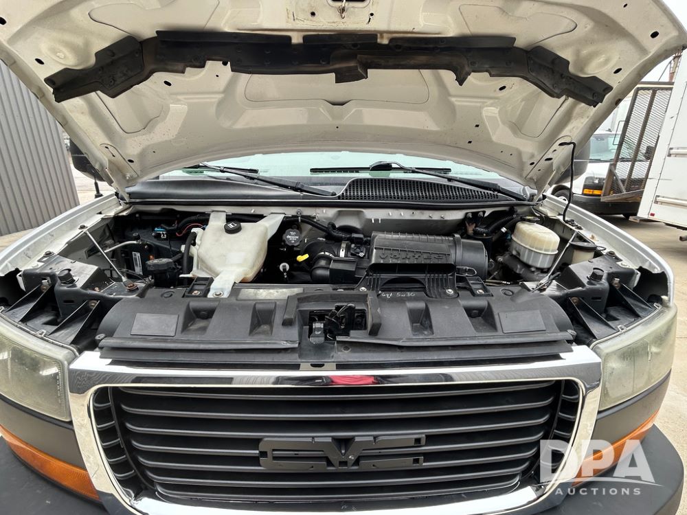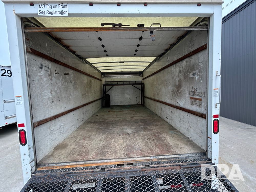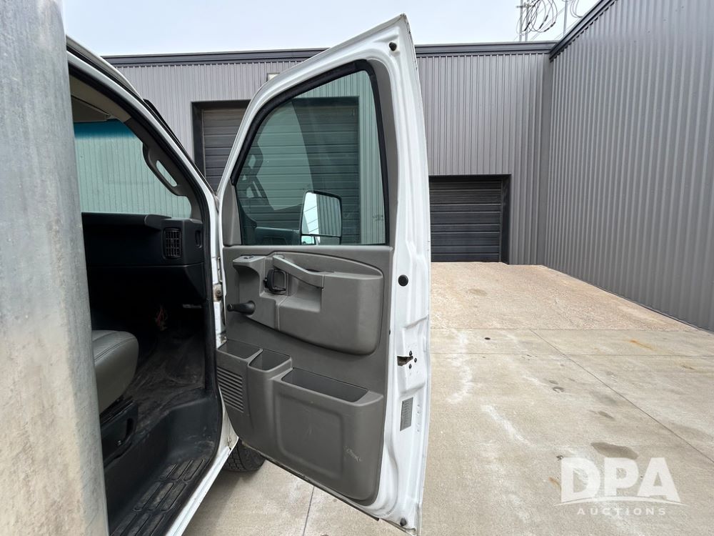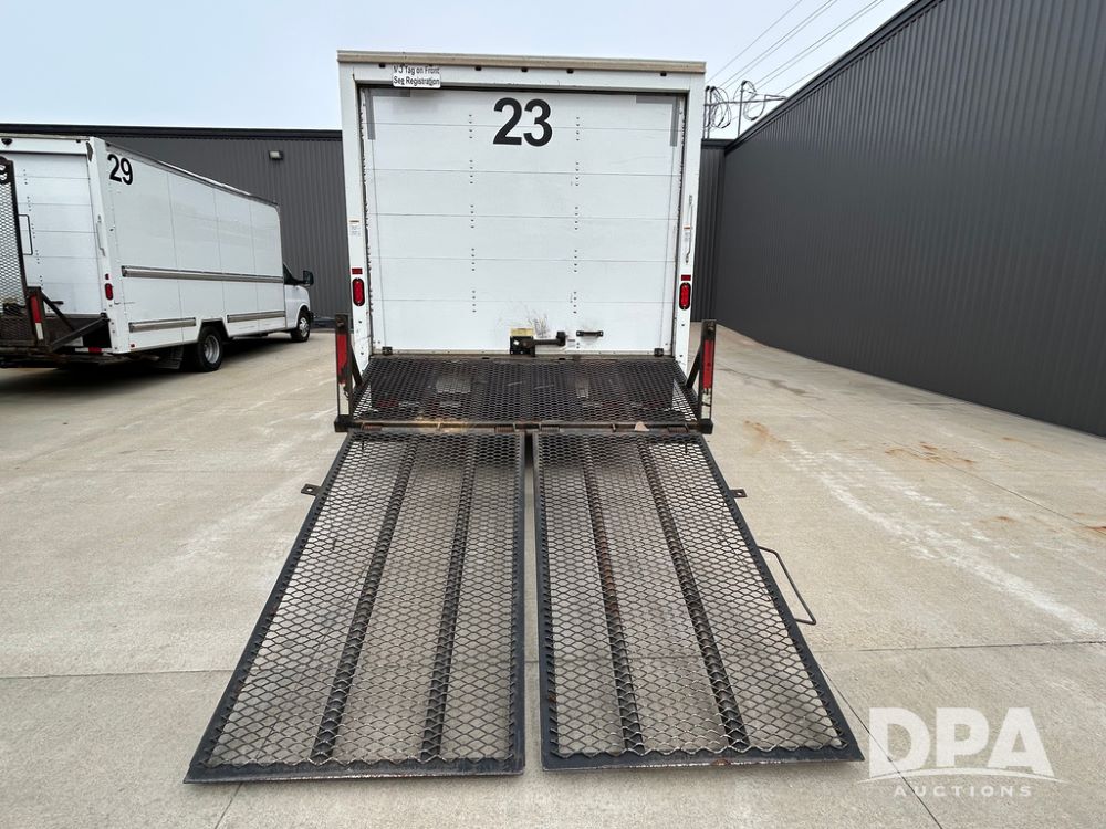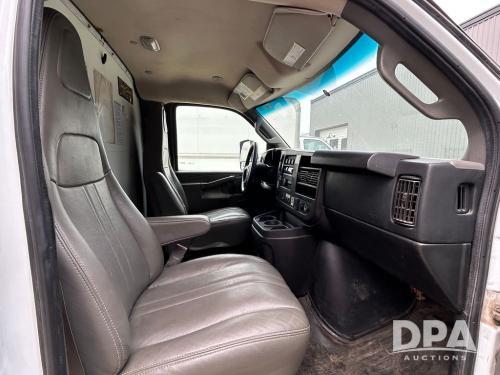 2018 GMC Savana 3500 Box Truck (LLD1713, Unit #23), 6.0 gas engine, RWD, 16 foot box, power locks, cruise control, heat, air conditioning, radio, dove tail/ramp (can be removed with 2 bolts & 1 pin), 1 spare tire included, shows 212,665.