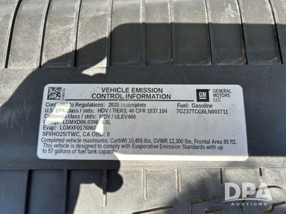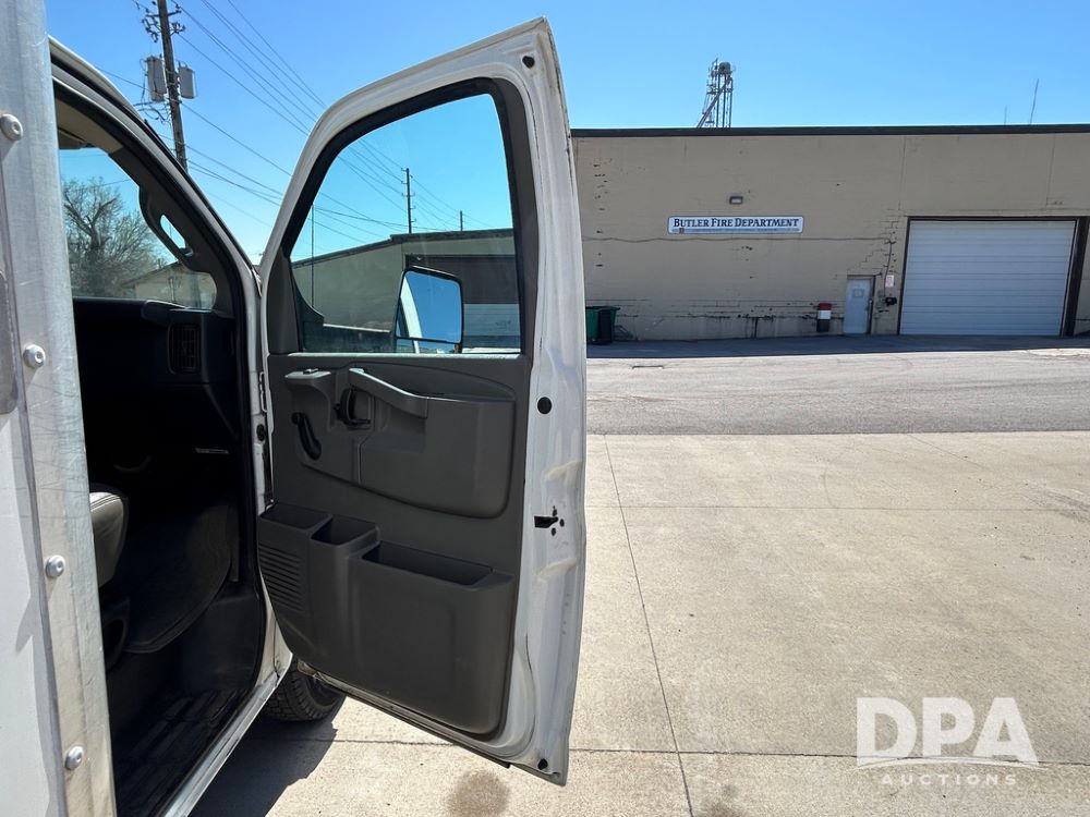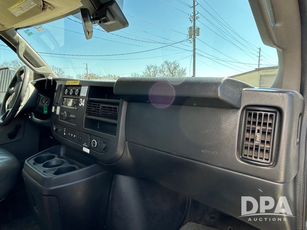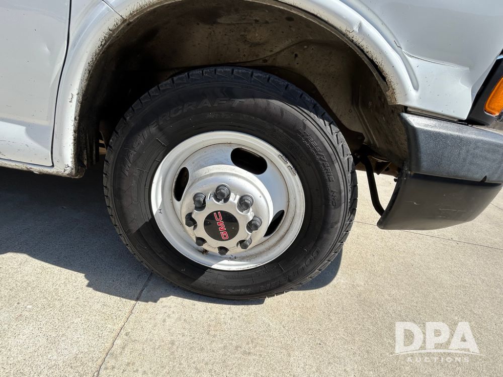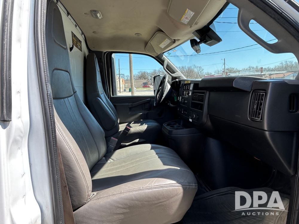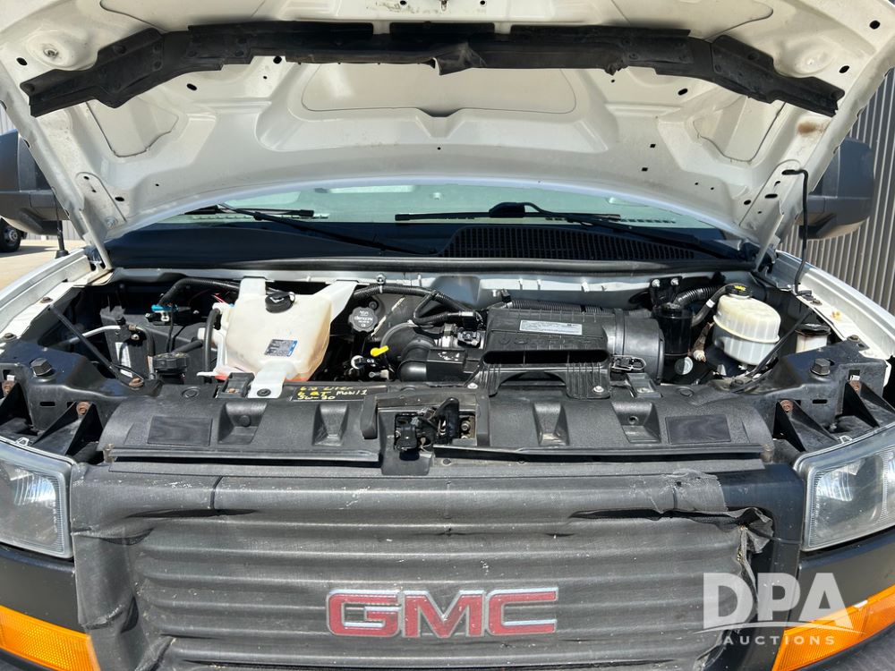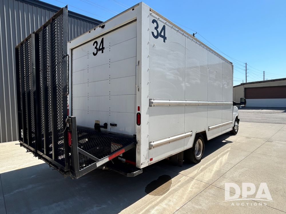 2020 GMC Savana 3500 Box Truck (LLD1719, Unit #34), 6.0 gas engine, RWD, 16 foot box, power locks, cruise control, back up camera, heat, air conditioning, radio, dove tail/ramp (can be removed with 2 bolts & 1 pin), underbody aluminum pull out ramp, 1 spare tire included, shows 176,777 miles.