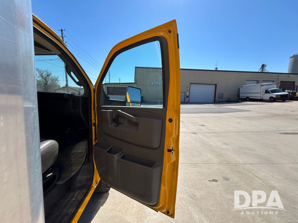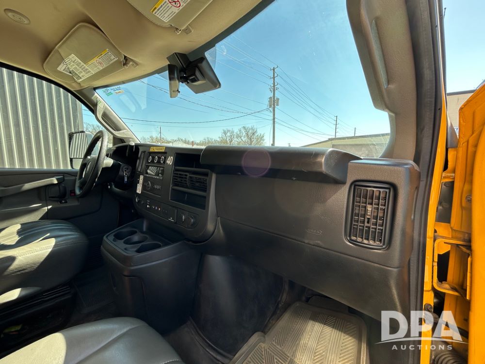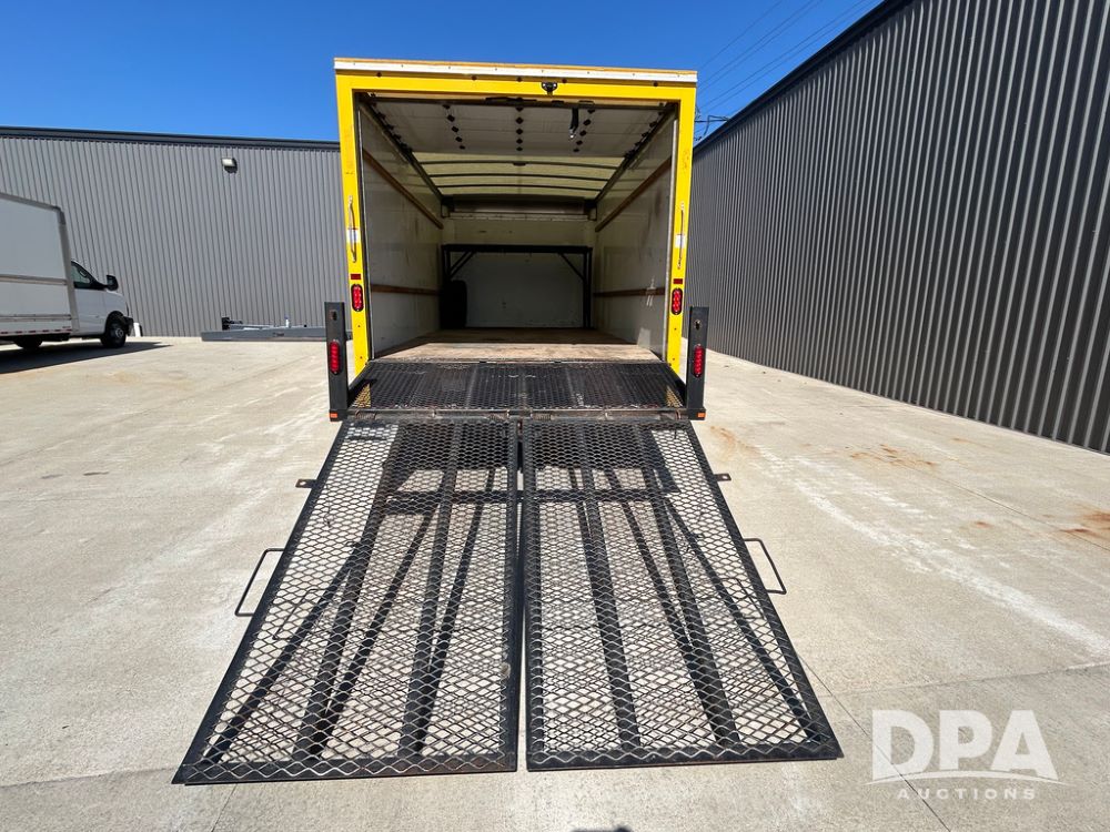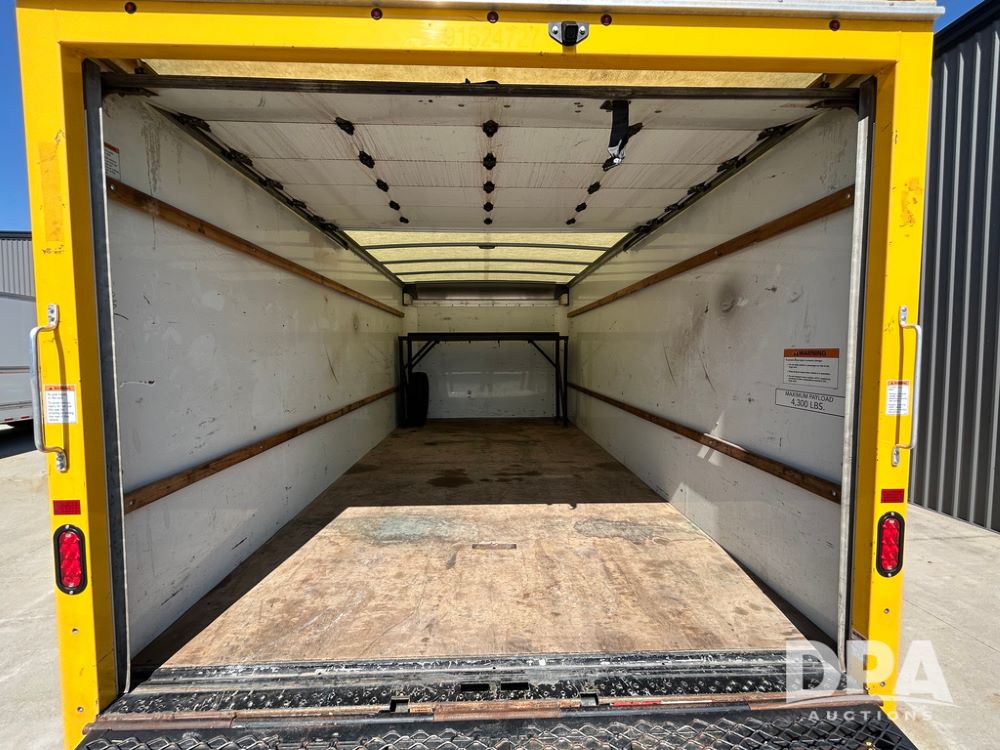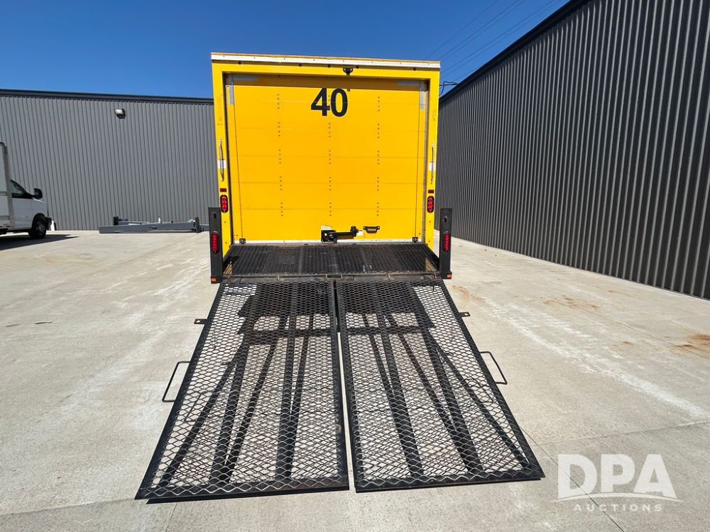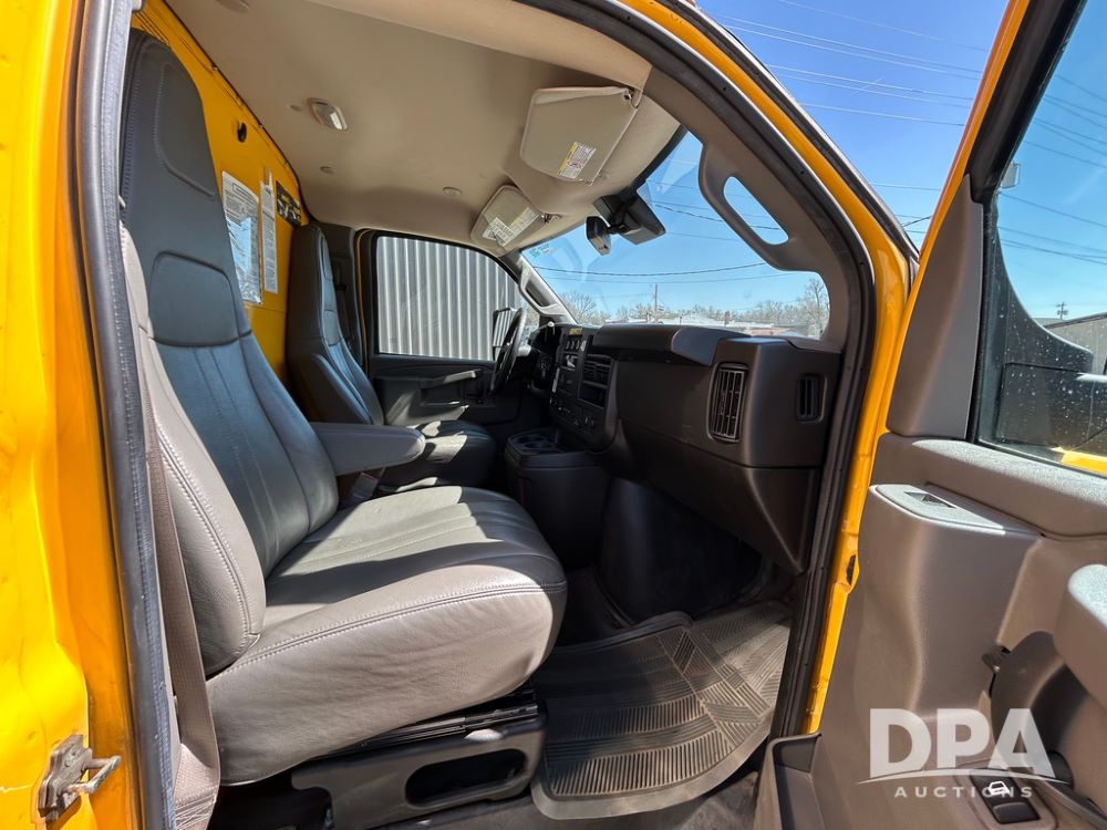 2022 GMC Savana 3500 Box Truck (LLD1720, Unit #40), 6.0 gas engine, RWD, 16 foot box, power locks, cruise control, back up camera, heat, air conditioning, radio, dove tail/ramp (can be removed with 2 bolts & 1 pin), underbody aluminum pull out ramp, 1 spare tire included, shows 82,257 miles.
