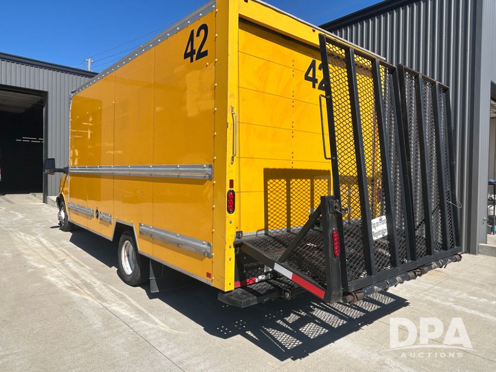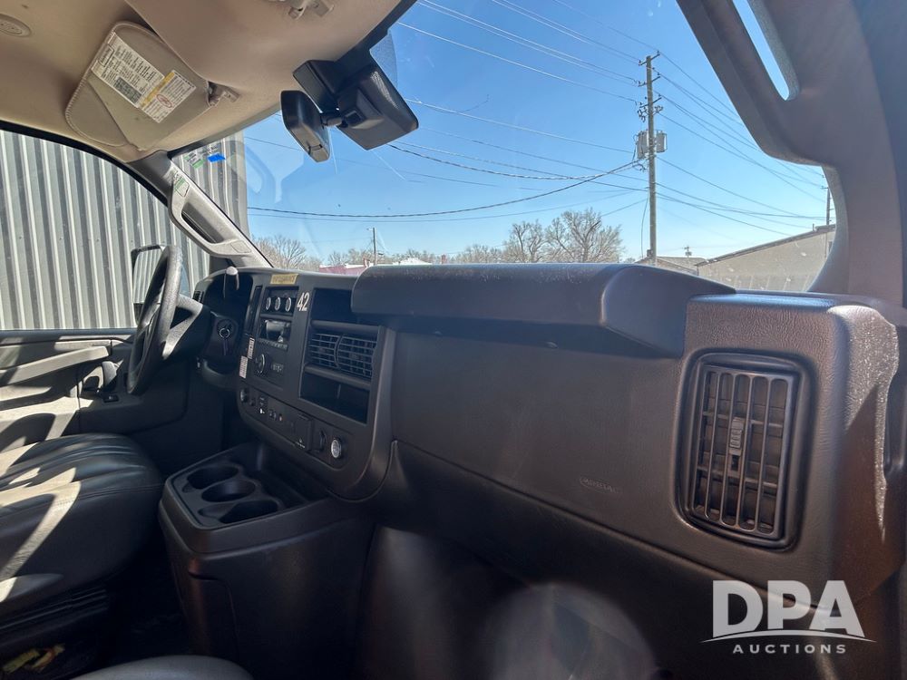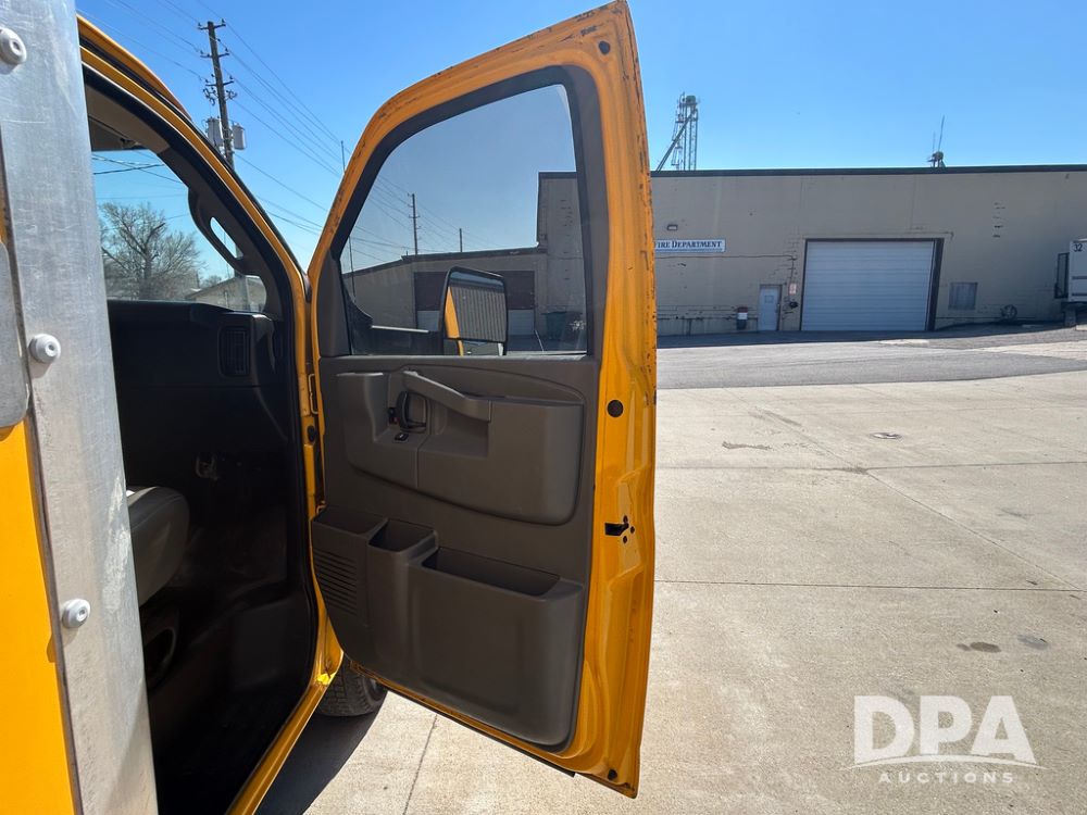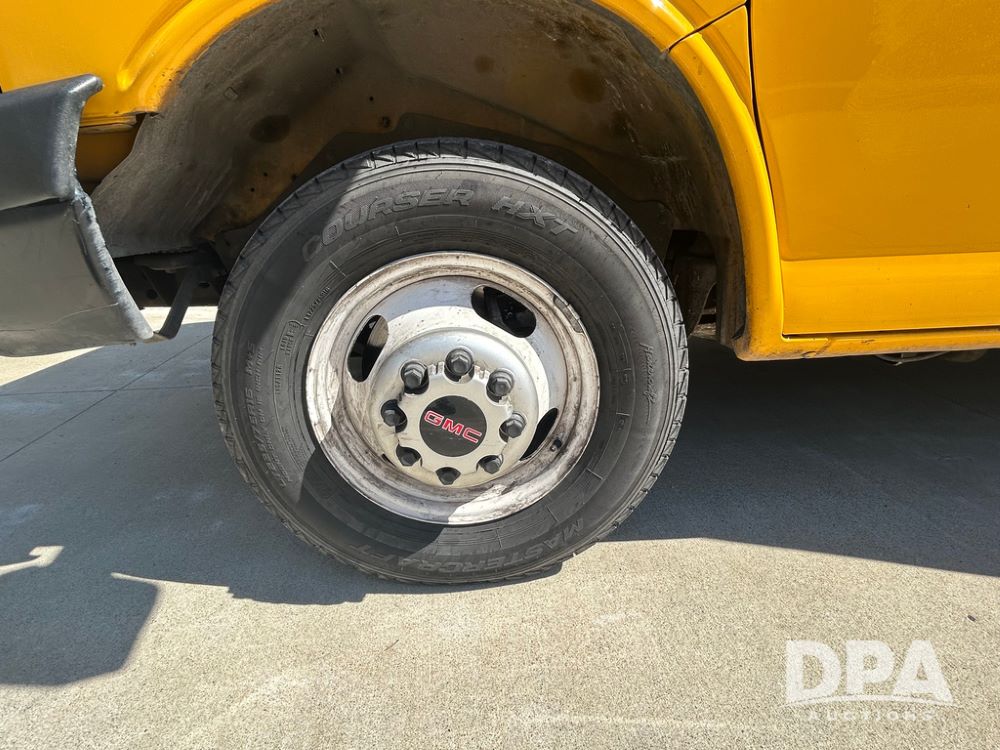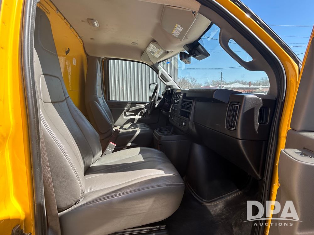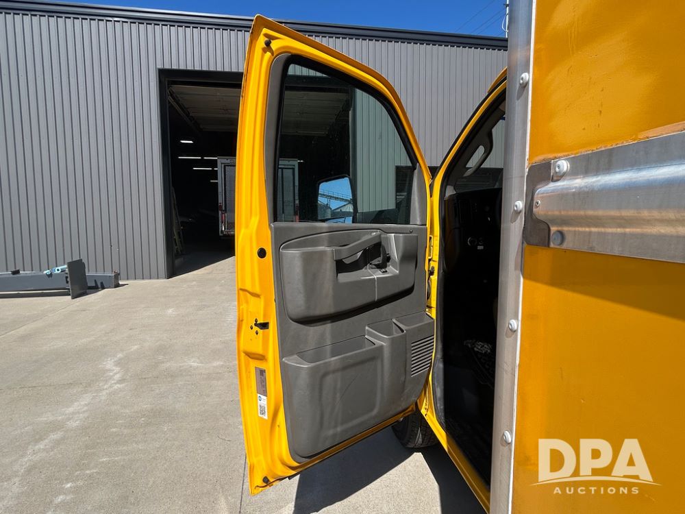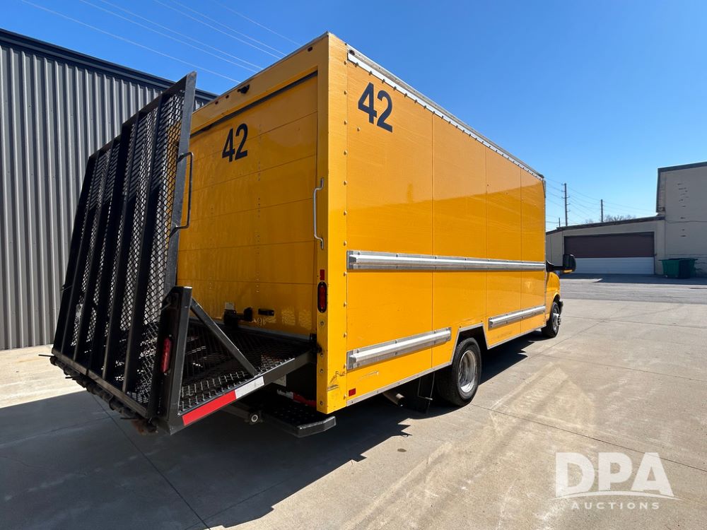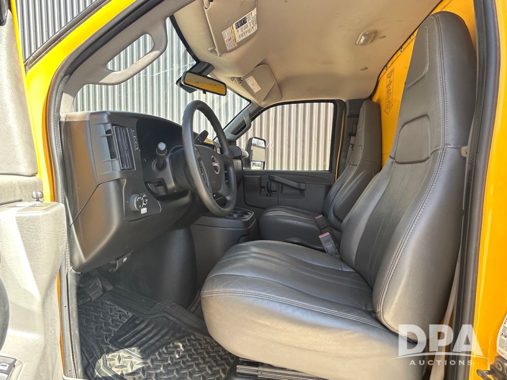 2022 GMC Savana 3500 Box Truck (LLD1721, Unit #42), 6.6 gas engine, RWD, 16 foot box, power locks, power windows, cruise control, back up camera, heat, air conditioning, radio, dove tail/ramp (can be removed with 2 bolts & 1 pin), underbody aluminum pull out ramp, 1 spare tire included, shows 106,713 miles.