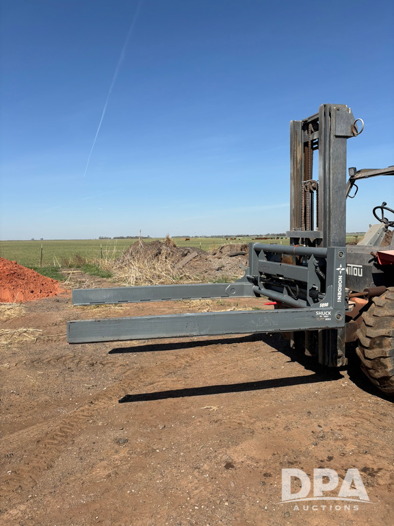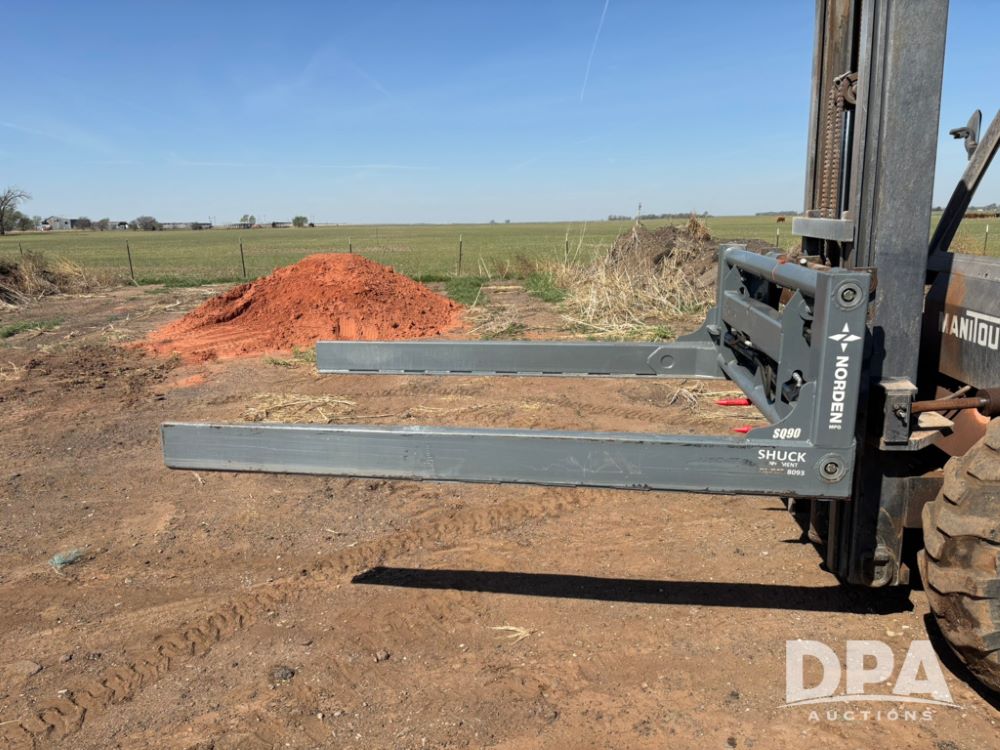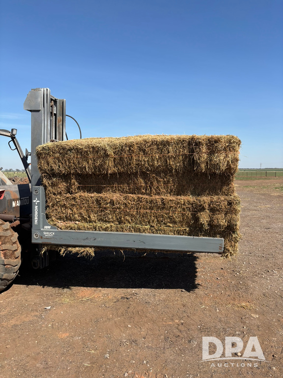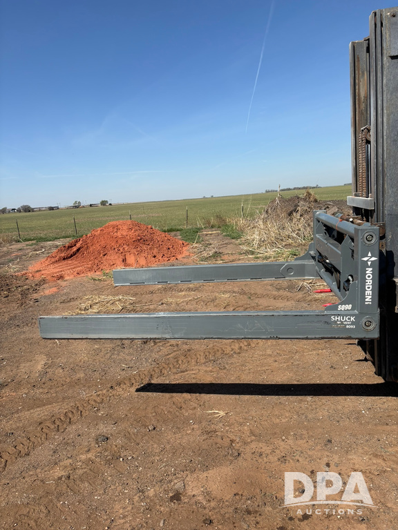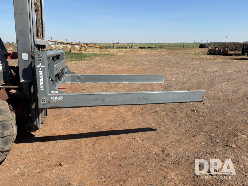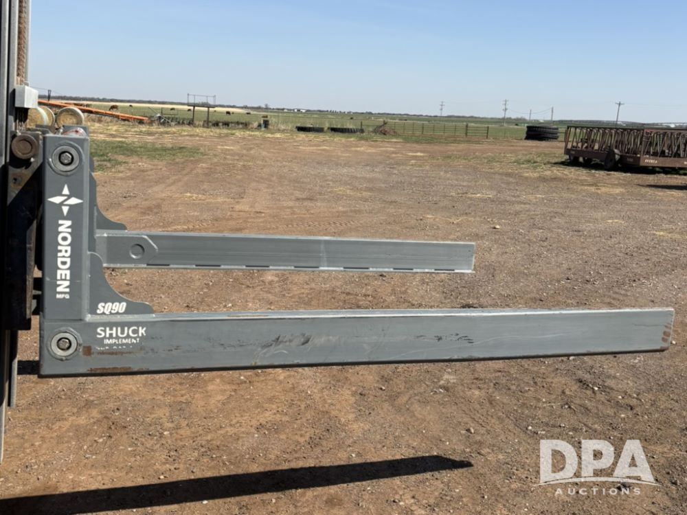 Norden SQ90 Bale Squeeze (JM790), 10 bale, 4000 lb capacity, skid steer style hookup, flat face hydraulic connectors, 90" squeeze bars, open width - 100", closed width - 67", stabilizer spears in middle of frame.