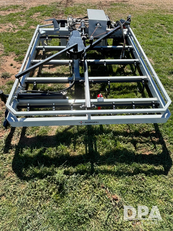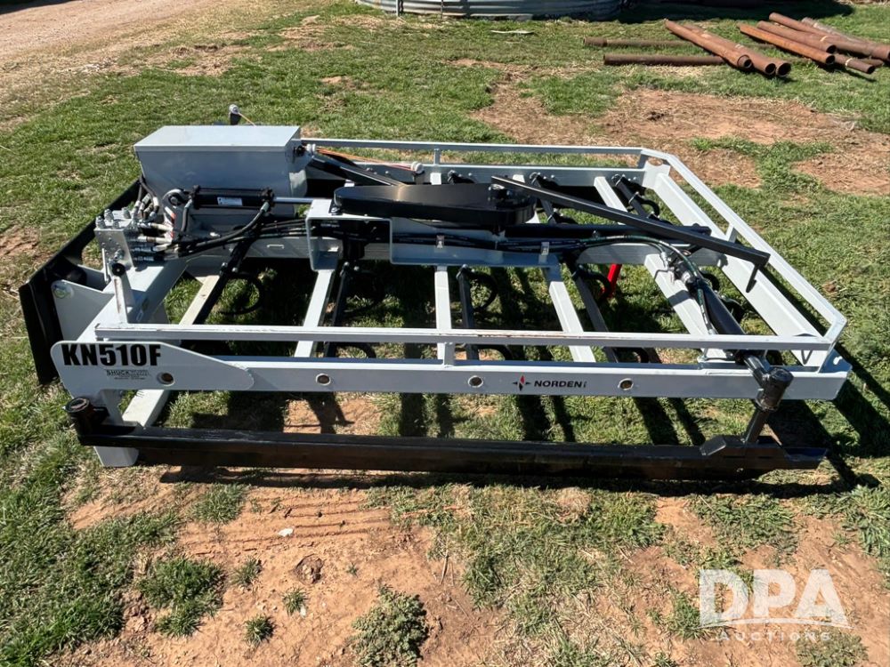 Norden 510F Bale Grapple (JM792), skid steer style hookup, 10 bale capacity, adjustable bale fence, adjustable guide bar.