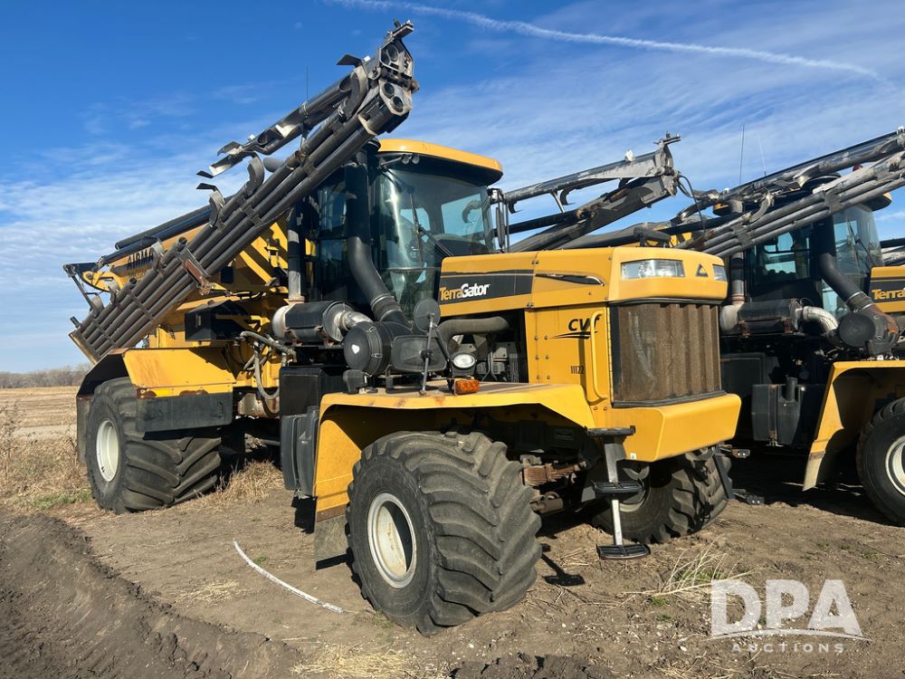 2014 Terragator TG8400 Dry Floater Machine (CP1815), diesel engine, CVT transmission, heat, AM/FM radio, air ride cab, leather seat, stainless steel tank, Airmax Precision Dry Air Flow System, 70 foot stainless steel boom, roll tarp, Goodyear VF 1000/50R25 Flotation Tires, Raven GPS, Raven Viper Pro monitor, hours.