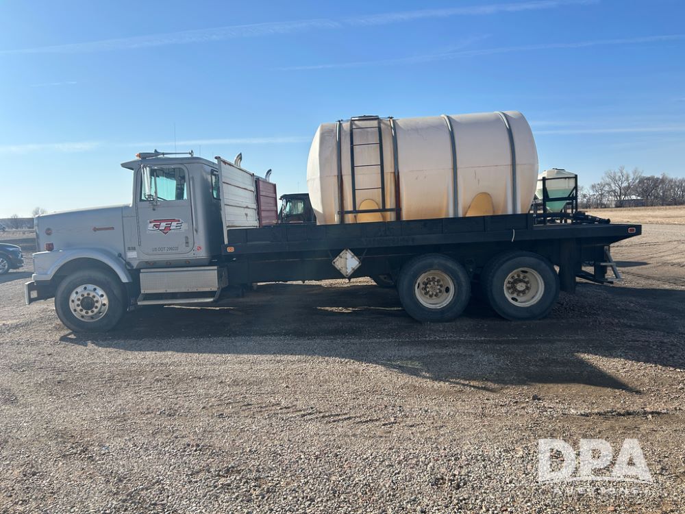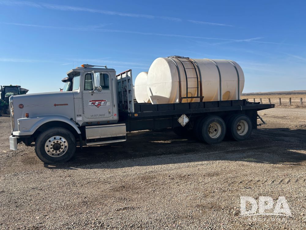 1988 International Day Cab With Liquid Tank (CP1817), Cummins diesel engine, 9 speed, air ride suspension, tandem axle, 3000 gallon poly tank, rinse tank, plumbing included, 12R22.5 tires, 703,427 miles.