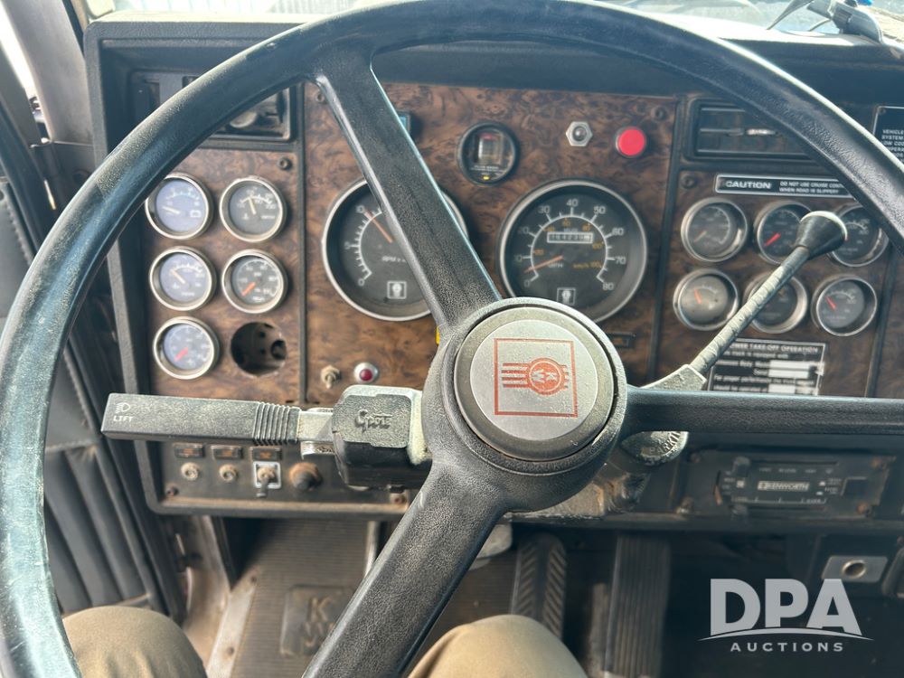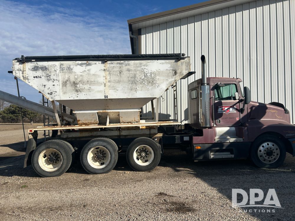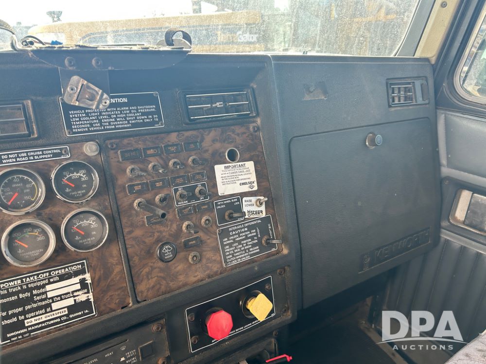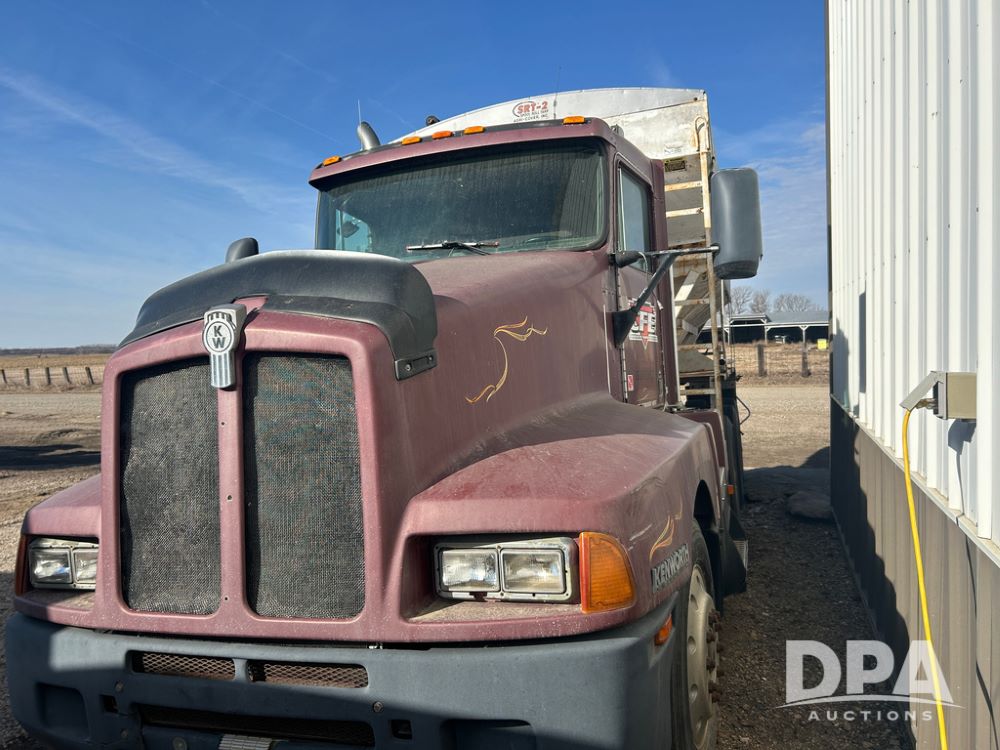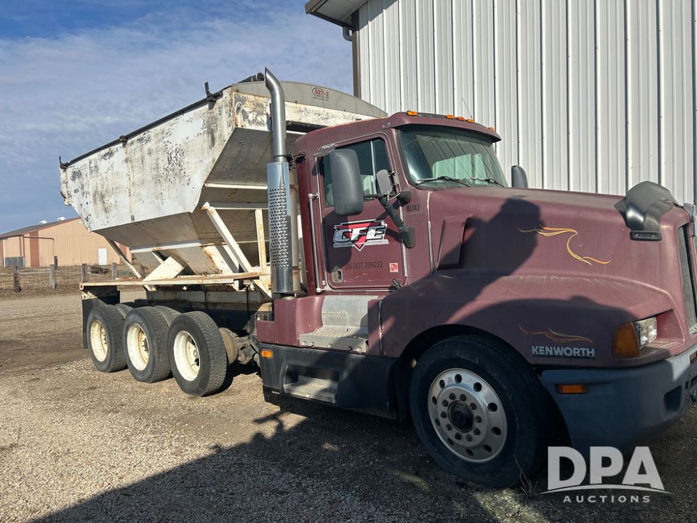 1993 Kenworth Day Cab With Dry Tender Box (CP1818),Detroit 60 diesel engine, 9 speed transmission, H Steer Air suspension, PTO, 2 compartment, 16 ton, tandem axle, 5th wheel slide, rear discharge, low profile 295/75R22.5 tires, 964,239 miles.