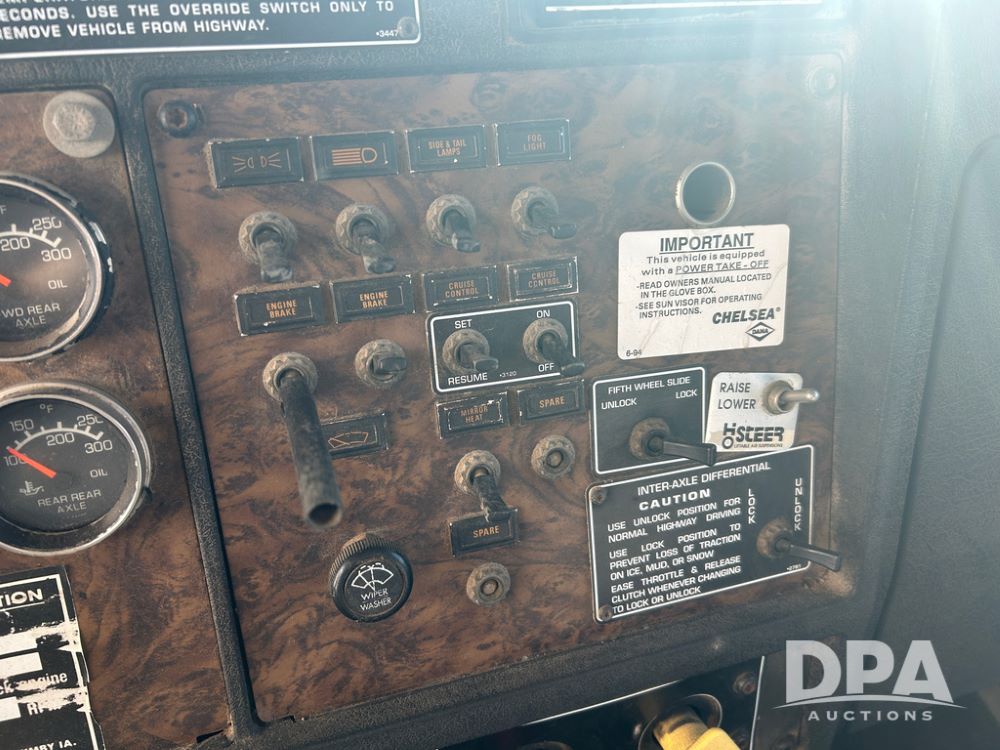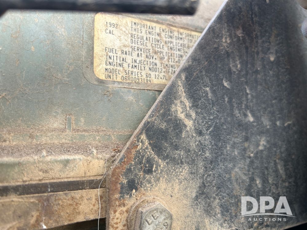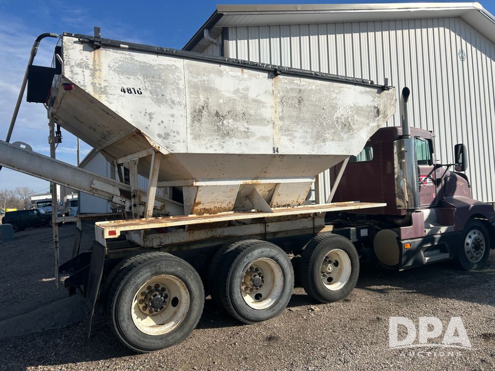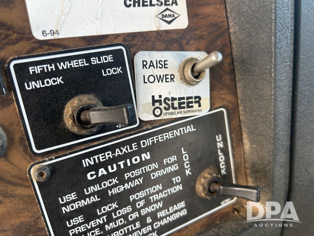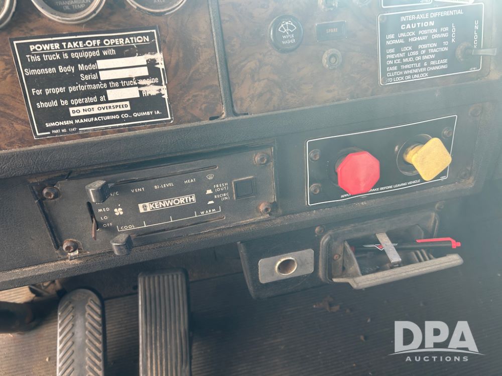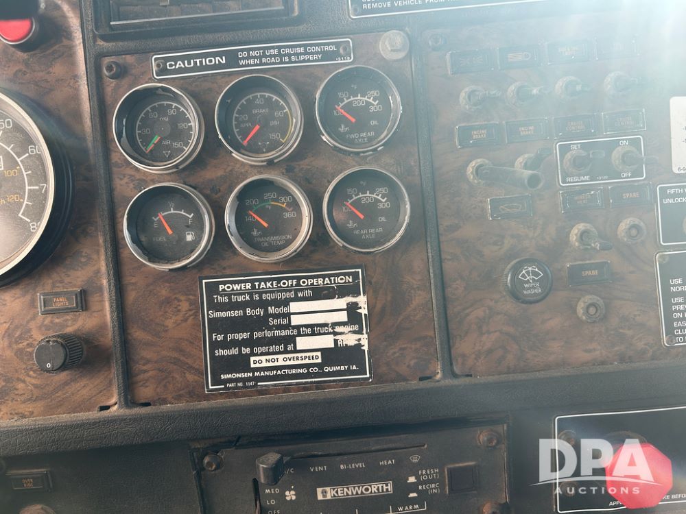 1993 Kenworth Day Cab With Dry Tender Box (CP1818),Detroit 60 diesel engine, 9 speed transmission, H Steer Air suspension, PTO, 2 compartment, 16 ton, tandem axle, 5th wheel slide, rear discharge, low profile 295/75R22.5 tires, 964,239 miles.